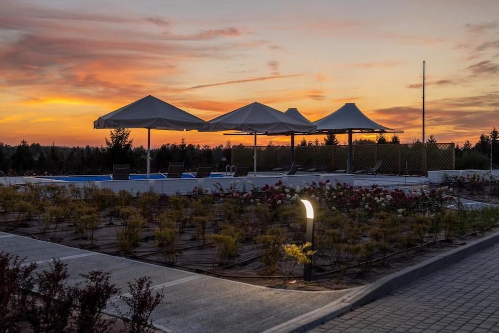 Un complesso bellissimo ....una vera oasi di pace.....bungalow molto confortevoli ...ristorante eccezionale ...staff più che ottimo...bella la piscina...a mezz'ora circa da Danzica ...Sopot...si può sempre con la macchina raggiungere anche Leba...