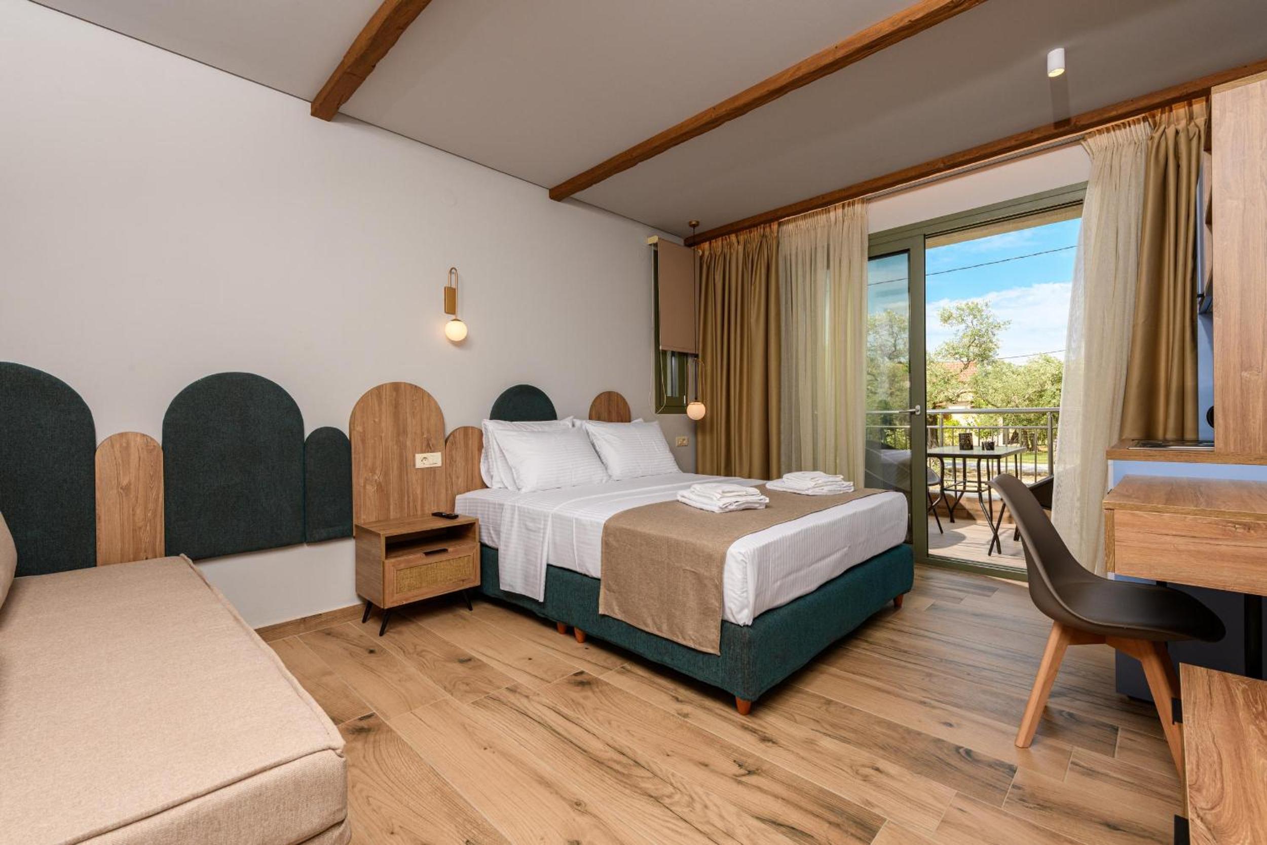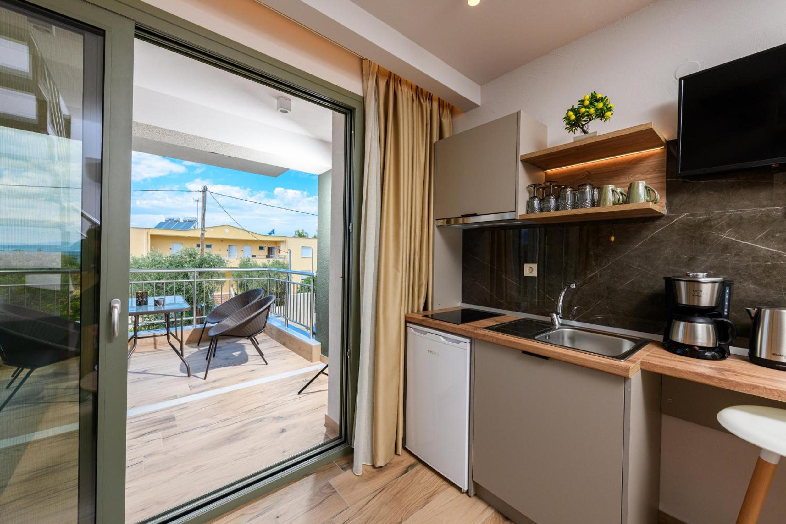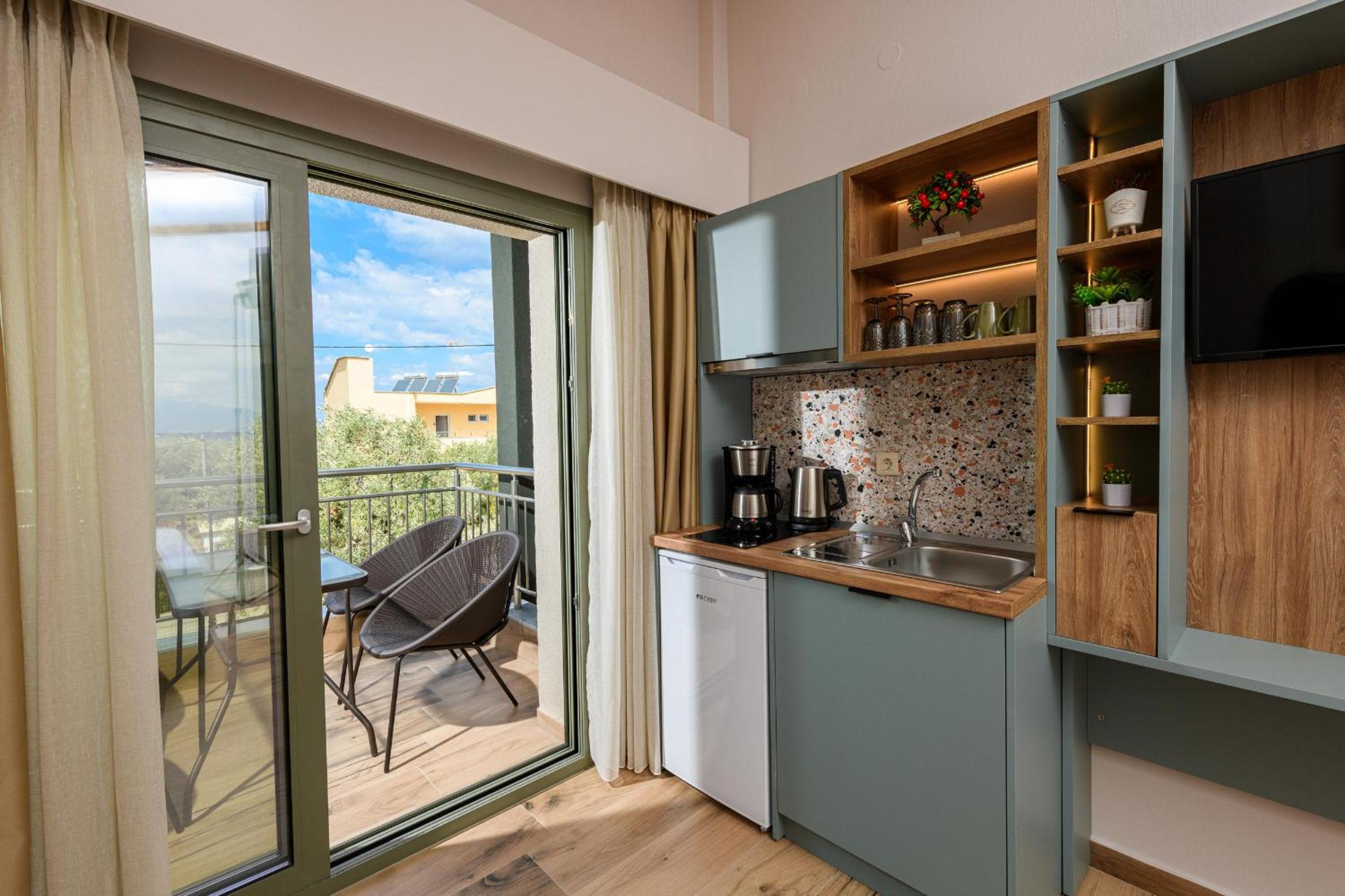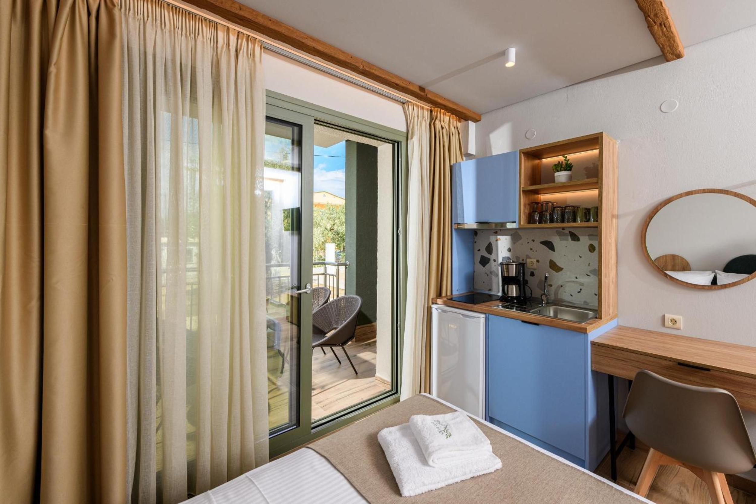 Hotel is new, bed is fantastic, cleaning is daily (!), staff are great, garden is relaxing and watered daily calmly, location is walking distance to beach (really relaxing and affordable beach, authentic greek, location is quietand resting.