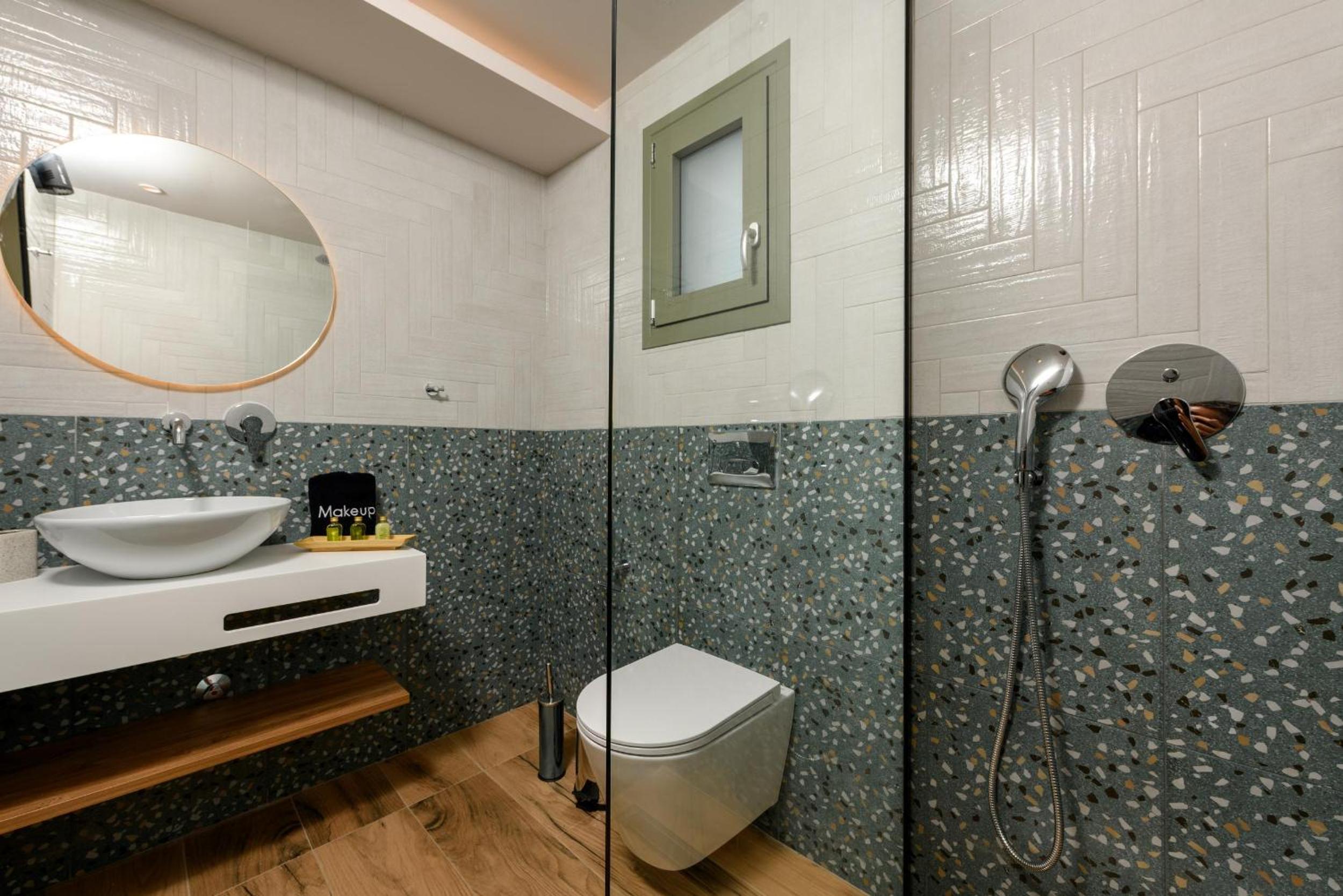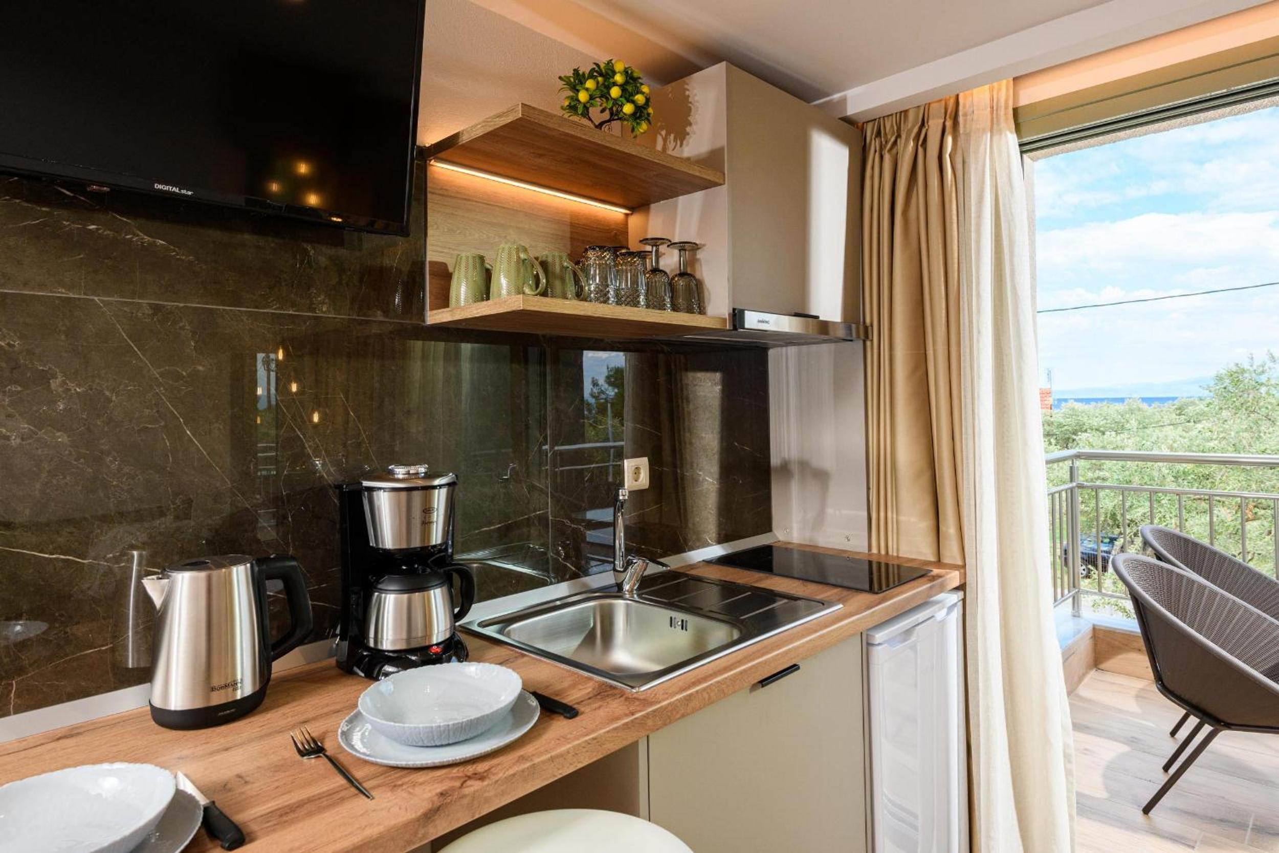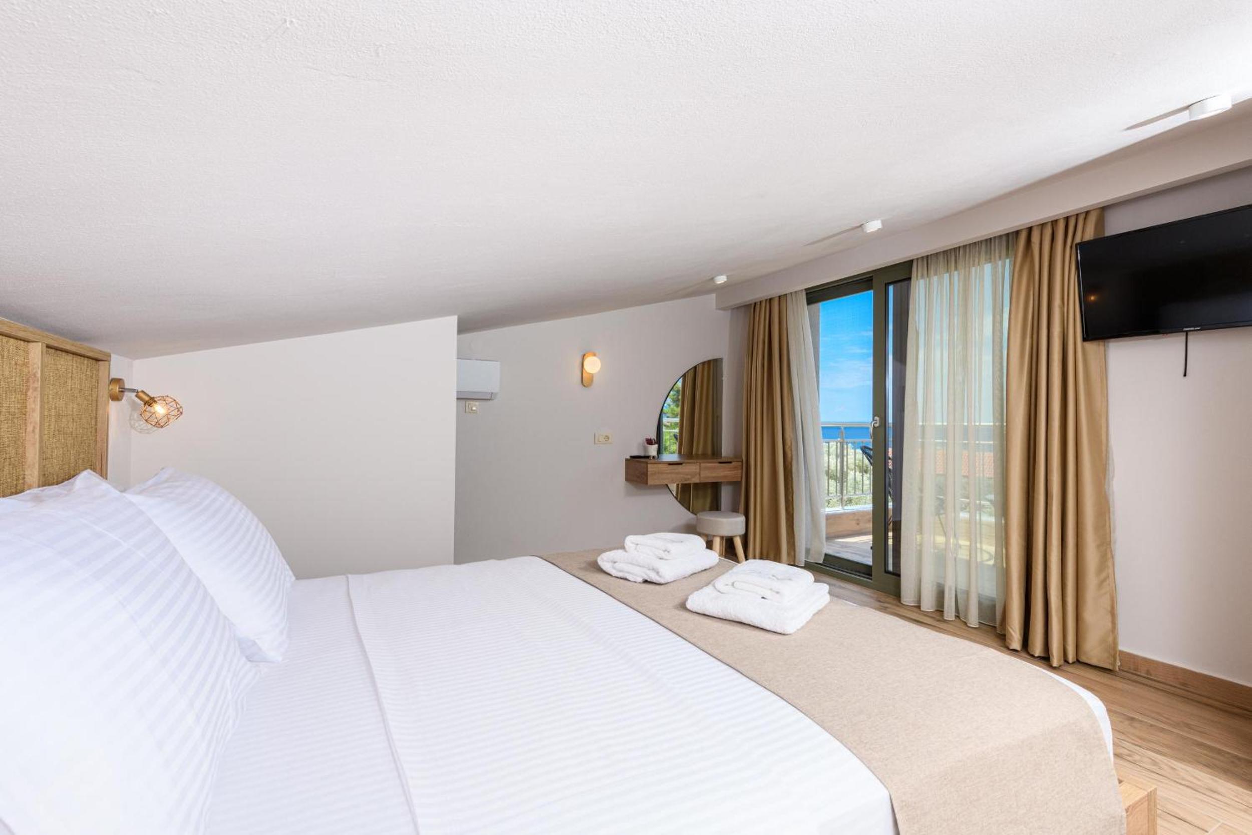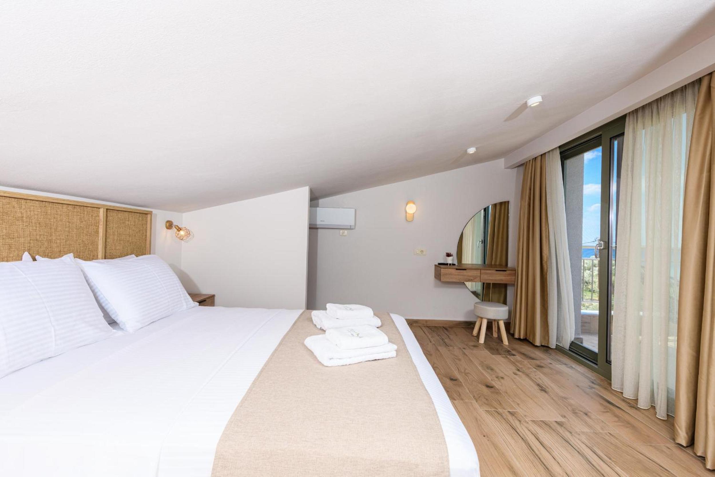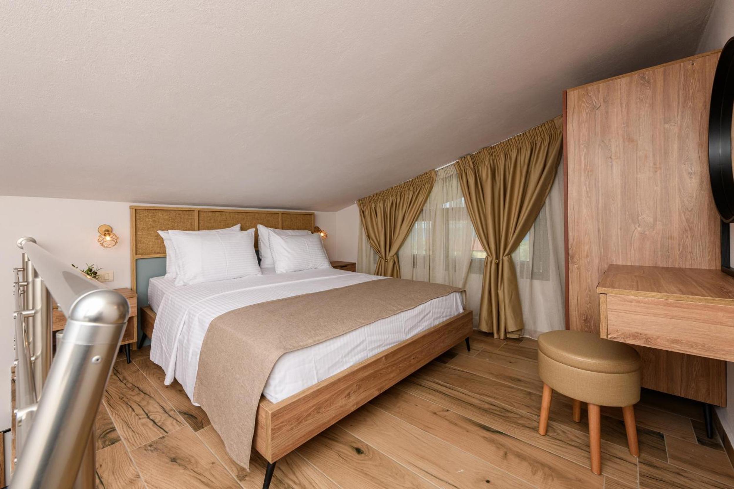 Hotel is new, bed is fantastic, cleaning is daily (!), staff are great, garden is relaxing and watered daily calmly, location is walking distance to beach (really relaxing and affordable beach, authentic greek, location is quietand resting.