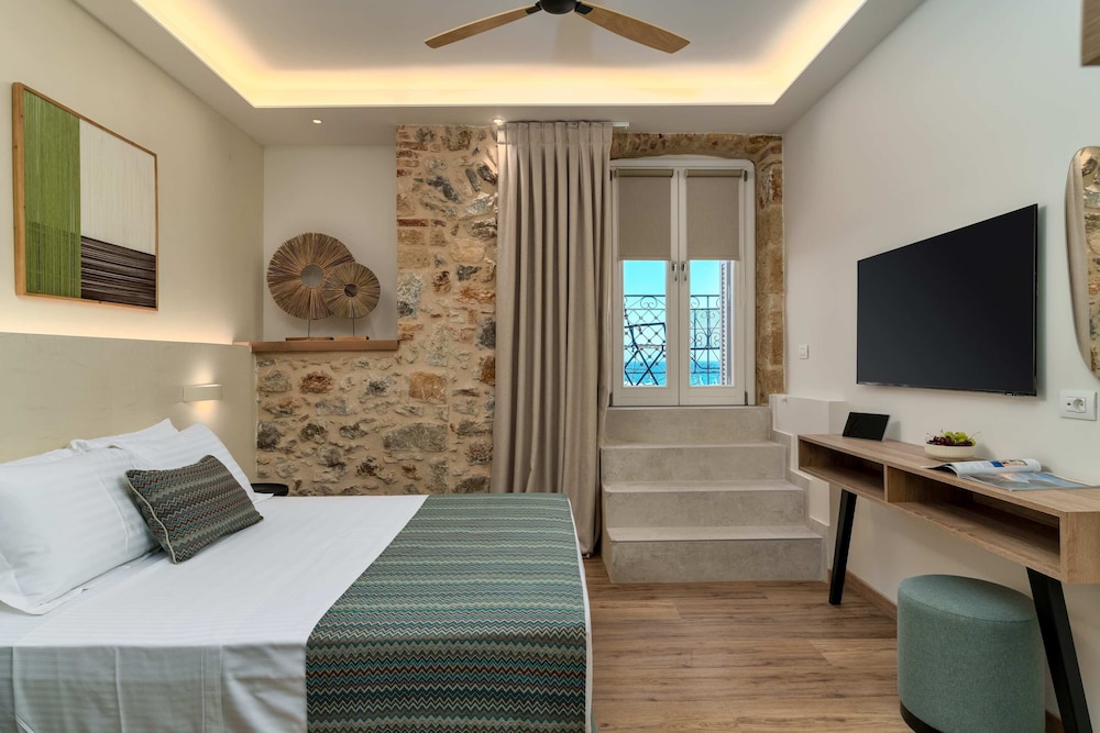 A very nice hotel with views of the harbor, and within walking distance of great seafood tavernas.