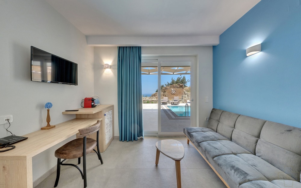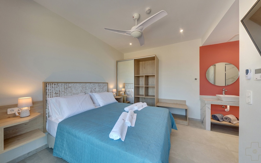 Wir waren im Juli 9 Tage da und hatten Suite Ethrio gebucht. Das Zimmer war sauber und wir hatten von der Terrasse einen traumhaften Blick auf das Meer und auf den privaten Pool. Das Frühstücks Buffet war auch super und das Essen im Hotel eigenen Restaurant war sehr gut. Ausserdem hatte das Hotel einen Mini Markt wo man alles nötige bekommen hat. Das Personal war ebenfalls sehr freundlich und Hilfsbereit zu uns. Danke an die Familie Mavrakis..