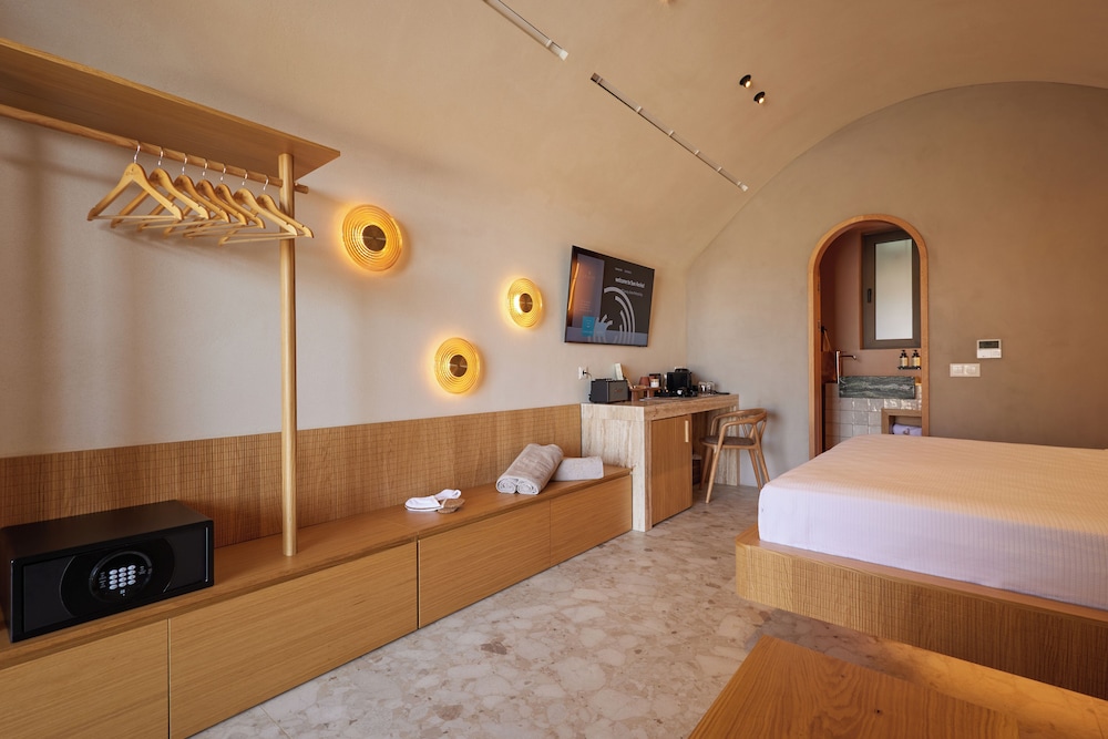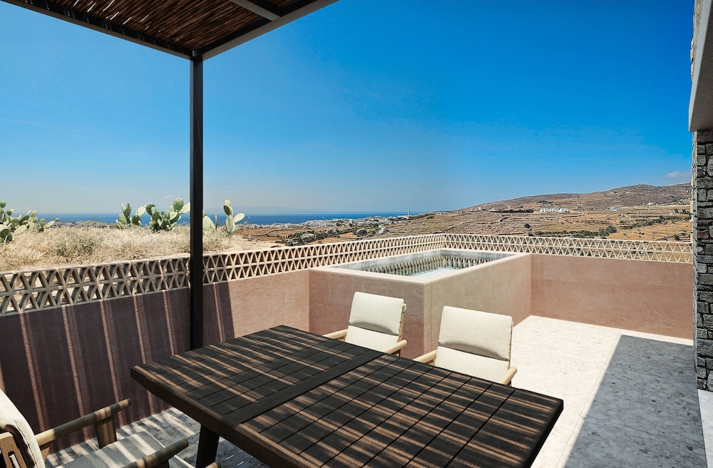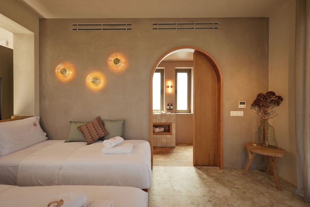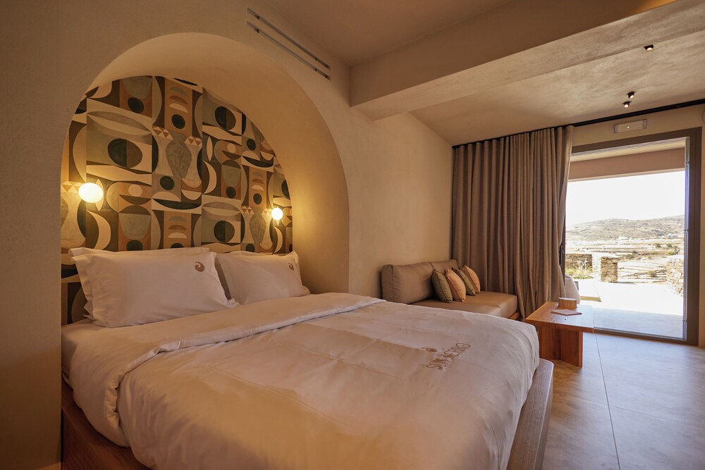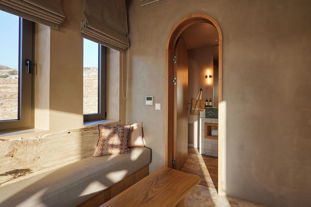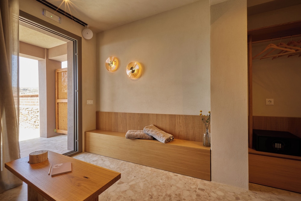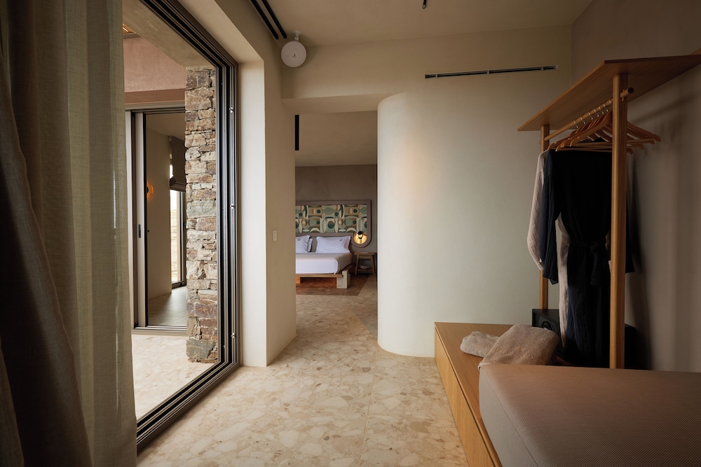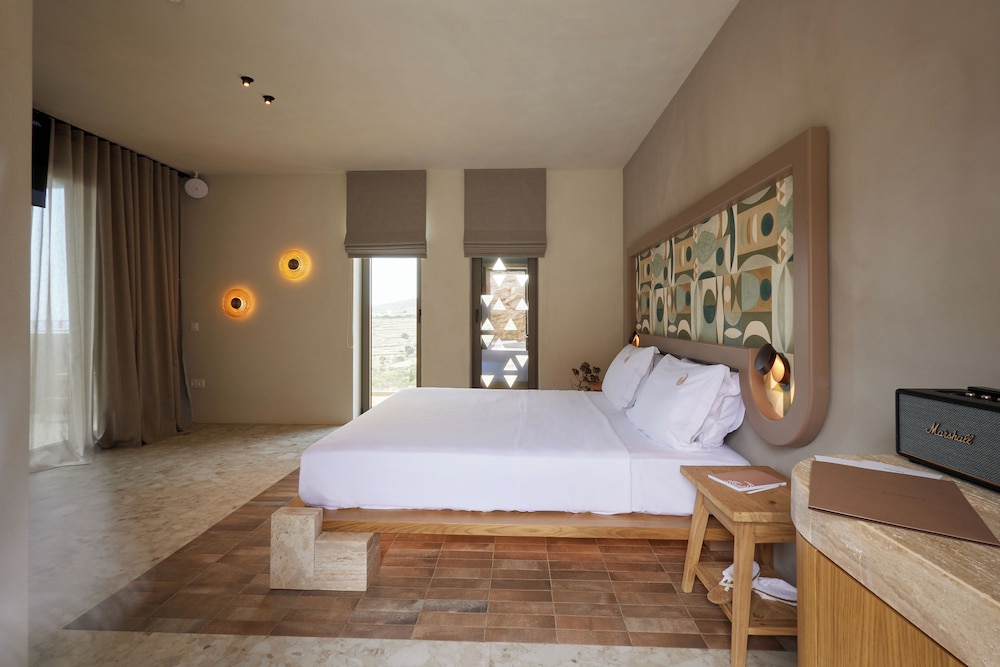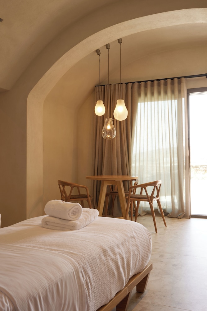 Ένα από τα καλύτερα ξενοδοχεία που έχουμε επισκεφθεί! Όμορφοι χώροι, σχεδιασμένοι με σεβασμό στο περιβάλλον του νησιού, υπέροχη θέα και ηρεμία. Το δωμάτιο πολύ μεγάλο, με όλες τις ανέσεις, ηχομόνωση και φανταστική θέα. Ιδανικό σημείο για το ηλιοβασίλεμα. Τέλειο πρόγευμα με άριστες πρώτες ύλες, στον όμορφο χώρο του εστιατορίου. Φιλοξενία και ευγένεια από όλο το προσωπικό. Χαιρόμαστε πολύ που δέχονται και οικογένειες με παιδιά και μπορέσαμε να μείνουμε με το μωρό μας. Το προτείνουμε και εννοείται θα μείνουμε ξανά την επόμενη φορά!