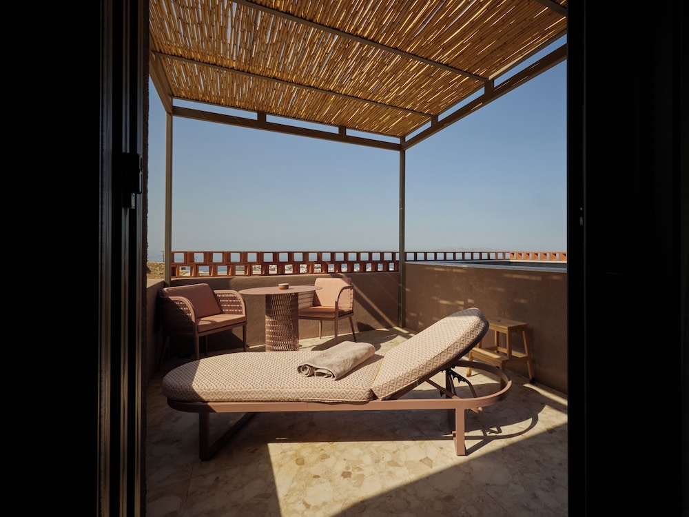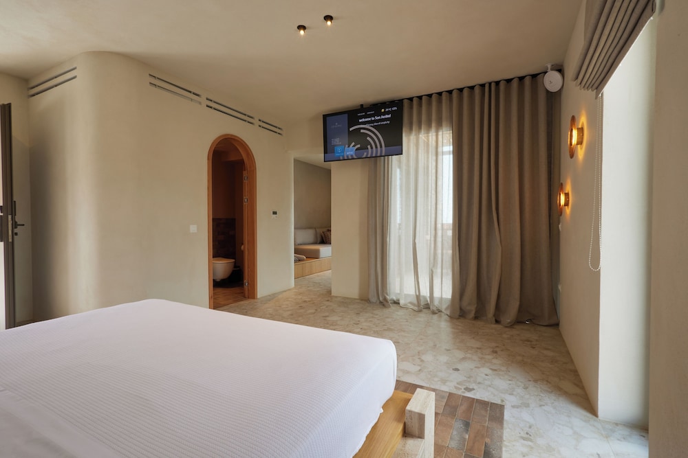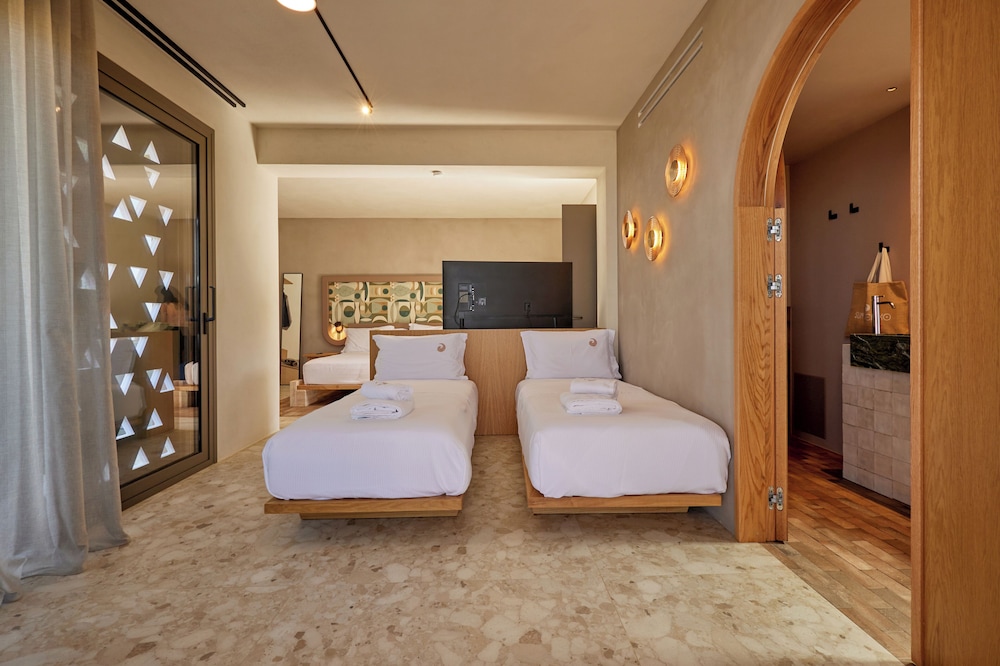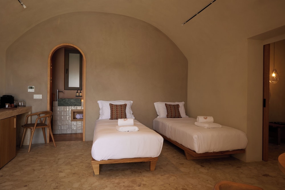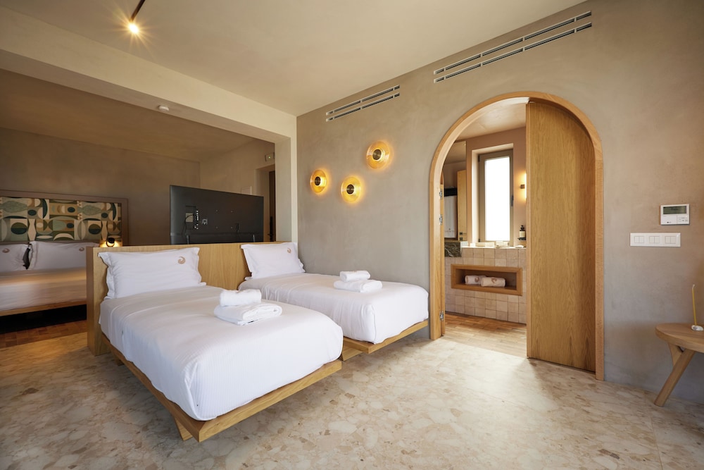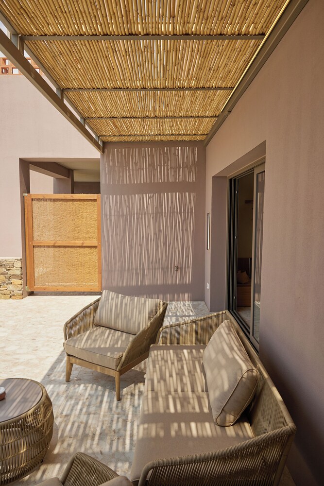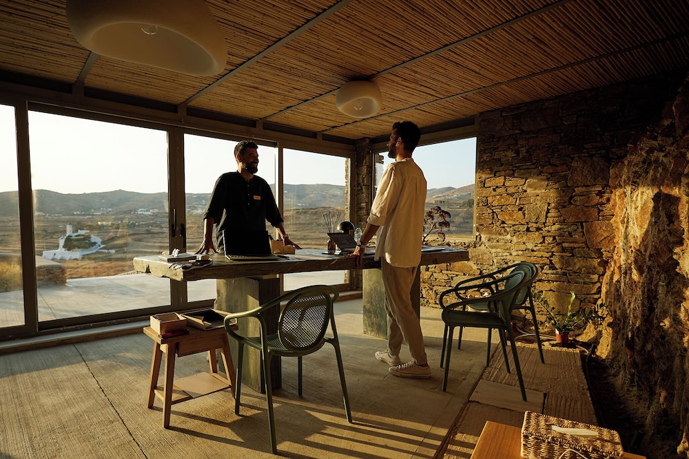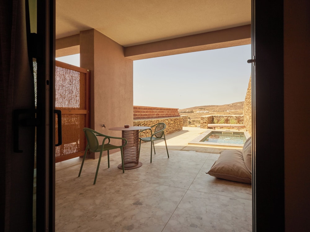 Ένα από τα καλύτερα ξενοδοχεία που έχουμε επισκεφθεί! Όμορφοι χώροι, σχεδιασμένοι με σεβασμό στο περιβάλλον του νησιού, υπέροχη θέα και ηρεμία. Το δωμάτιο πολύ μεγάλο, με όλες τις ανέσεις, ηχομόνωση και φανταστική θέα. Ιδανικό σημείο για το ηλιοβασίλεμα. Τέλειο πρόγευμα με άριστες πρώτες ύλες, στον όμορφο χώρο του εστιατορίου. Φιλοξενία και ευγένεια από όλο το προσωπικό. Χαιρόμαστε πολύ που δέχονται και οικογένειες με παιδιά και μπορέσαμε να μείνουμε με το μωρό μας. Το προτείνουμε και εννοείται θα μείνουμε ξανά την επόμενη φορά!