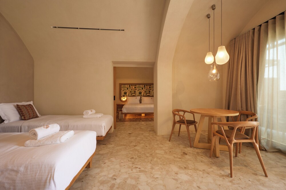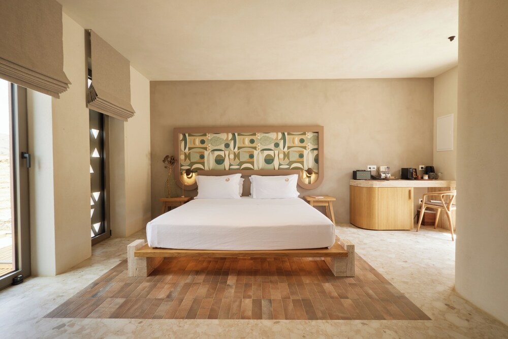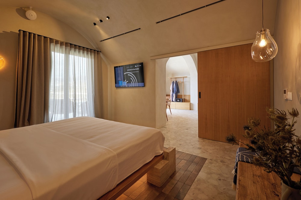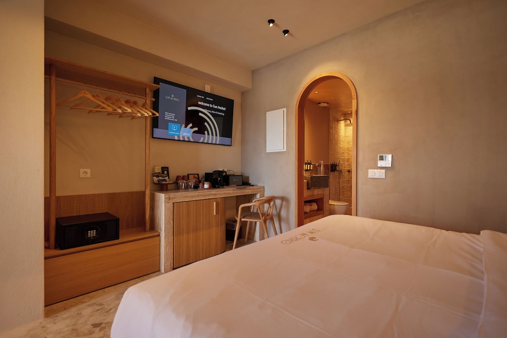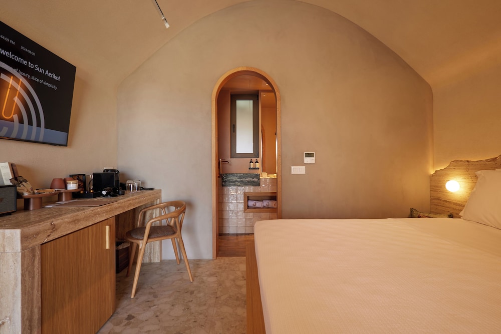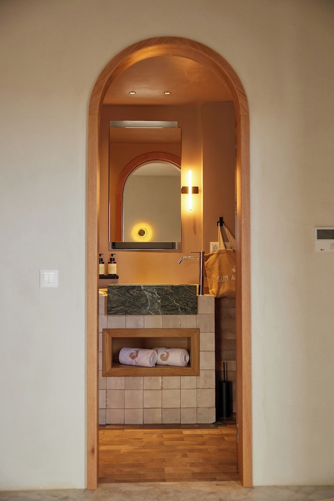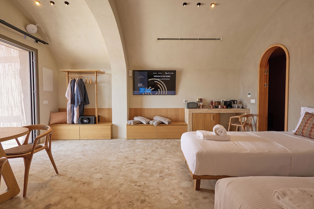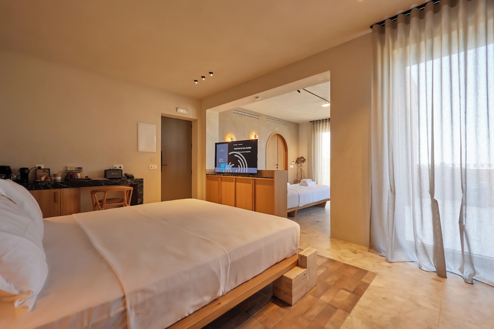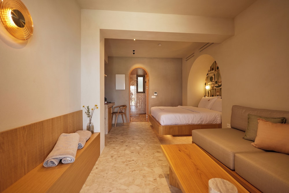 Ένα από τα καλύτερα ξενοδοχεία που έχουμε επισκεφθεί! Όμορφοι χώροι, σχεδιασμένοι με σεβασμό στο περιβάλλον του νησιού, υπέροχη θέα και ηρεμία. Το δωμάτιο πολύ μεγάλο, με όλες τις ανέσεις, ηχομόνωση και φανταστική θέα. Ιδανικό σημείο για το ηλιοβασίλεμα. Τέλειο πρόγευμα με άριστες πρώτες ύλες, στον όμορφο χώρο του εστιατορίου. Φιλοξενία και ευγένεια από όλο το προσωπικό. Χαιρόμαστε πολύ που δέχονται και οικογένειες με παιδιά και μπορέσαμε να μείνουμε με το μωρό μας. Το προτείνουμε και εννοείται θα μείνουμε ξανά την επόμενη φορά!