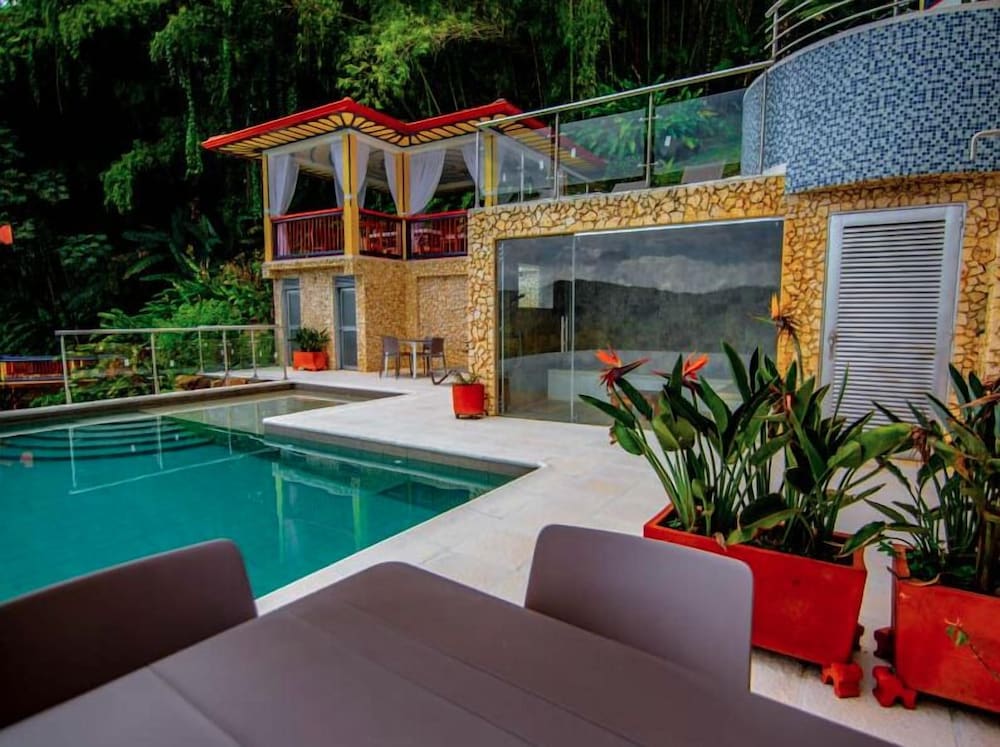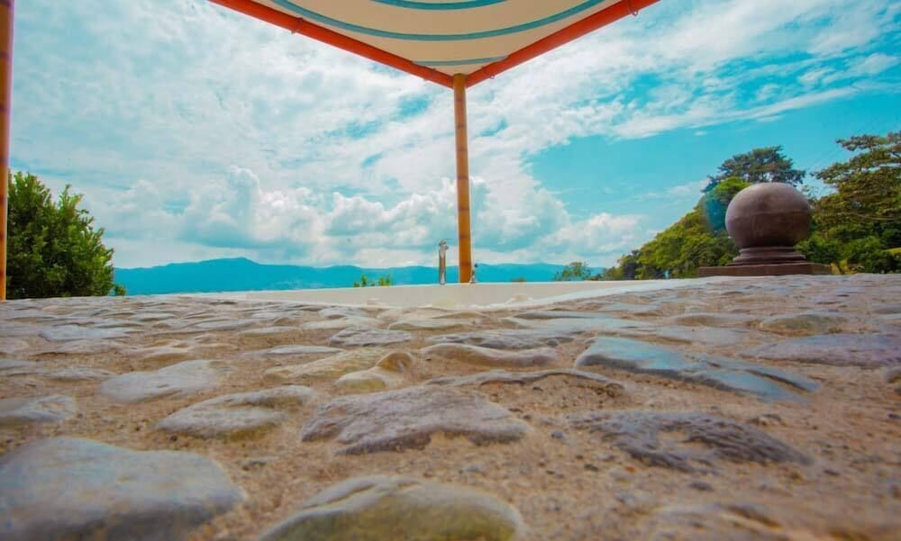We (group of 4) were delighted by this beautiful hotel. It is set on a mountainside surrounded with fruit and coffee plantation. Our rooms were clean and bright, with modern ensuite bathrooms. We enjoyed our meals in the dining area, with fabulous view over the valley and distant hills. The swimming pool and hot tub were clean and lovely. Best of all - the staff are wonderful, helpful, cheerful, friendly and so patient with us travellers. Only one challenge: the road up to the hotel is in poor condition, and needs a truck, Jeep or similar high-clearance vehicle. But it's worth it! Our only recommendation is to fix the road, and our profuse thanks are to the staff for helping us with travel arrangements!