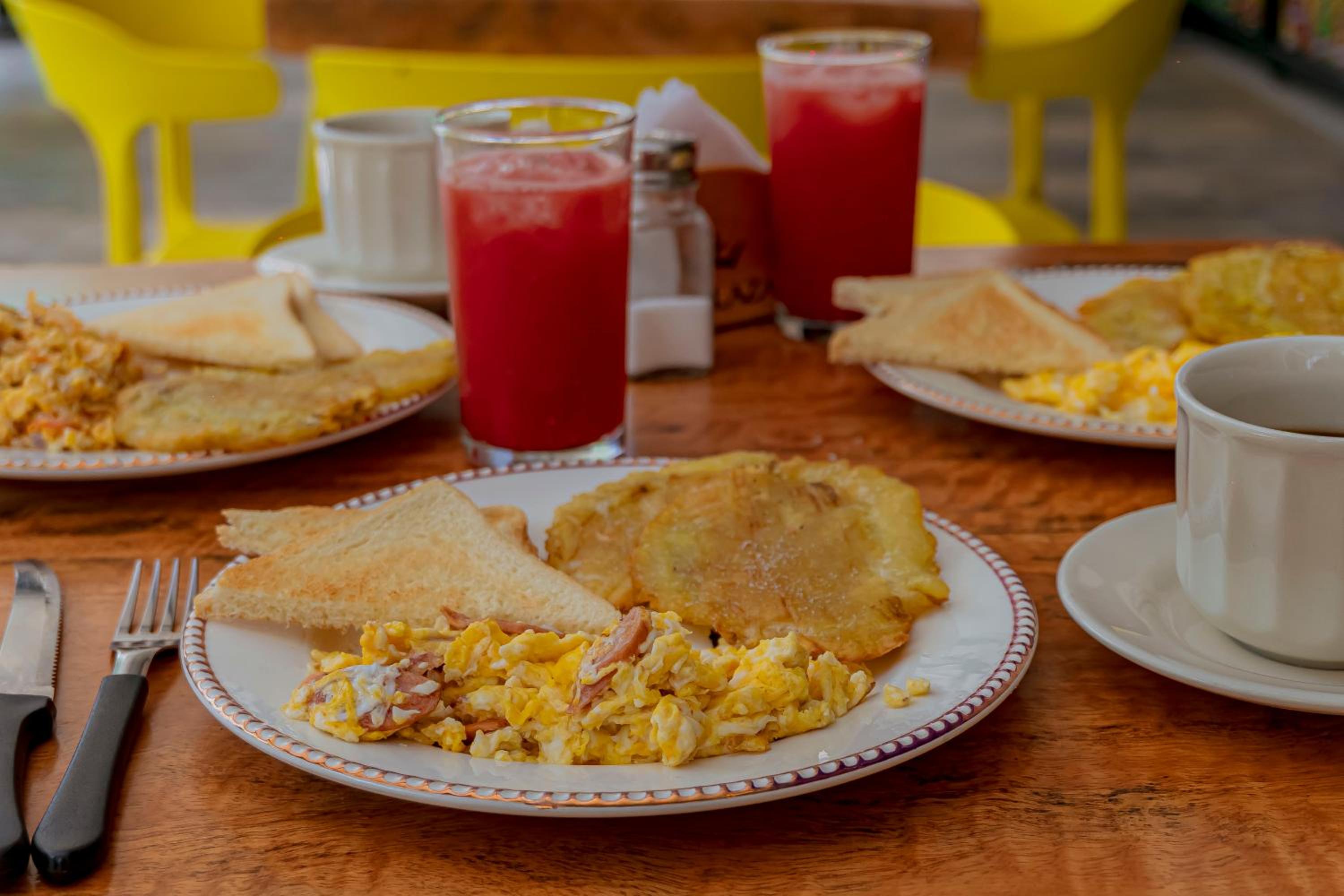 Desayuno variado y oportuna atención.