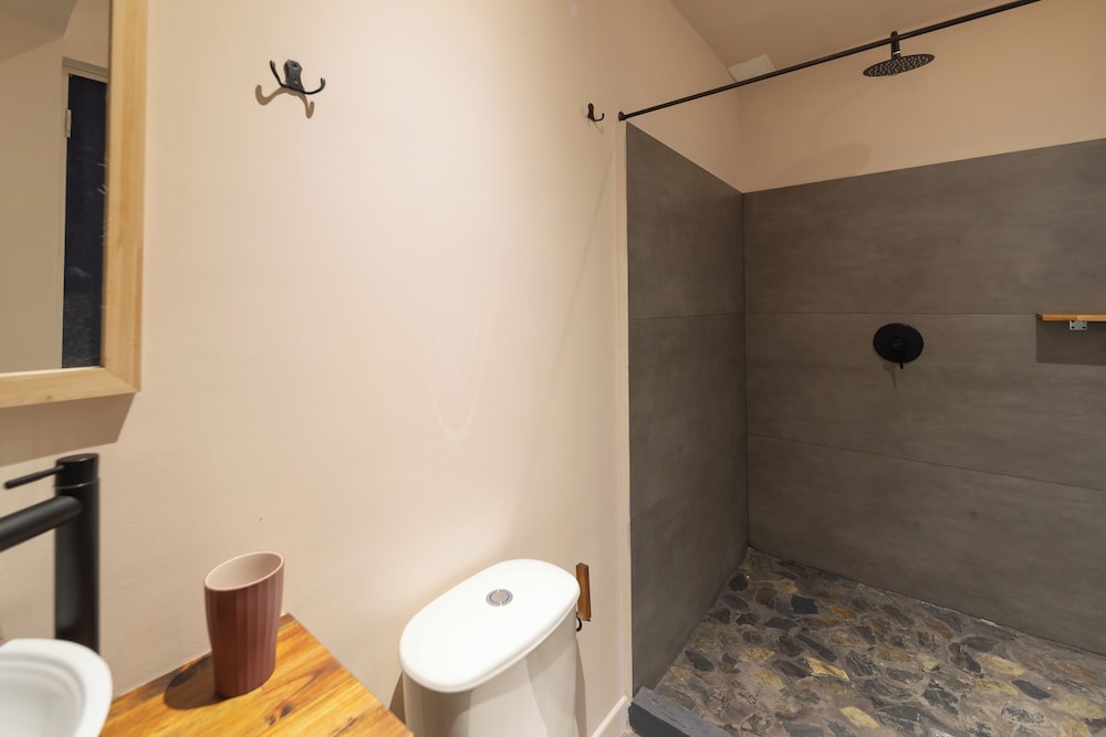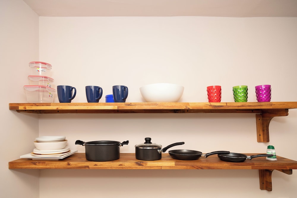 Tiene agua caliente en las duchas, el aseo del lugar es bueno, tienen estacion de café, opción para guardar el equipaje
