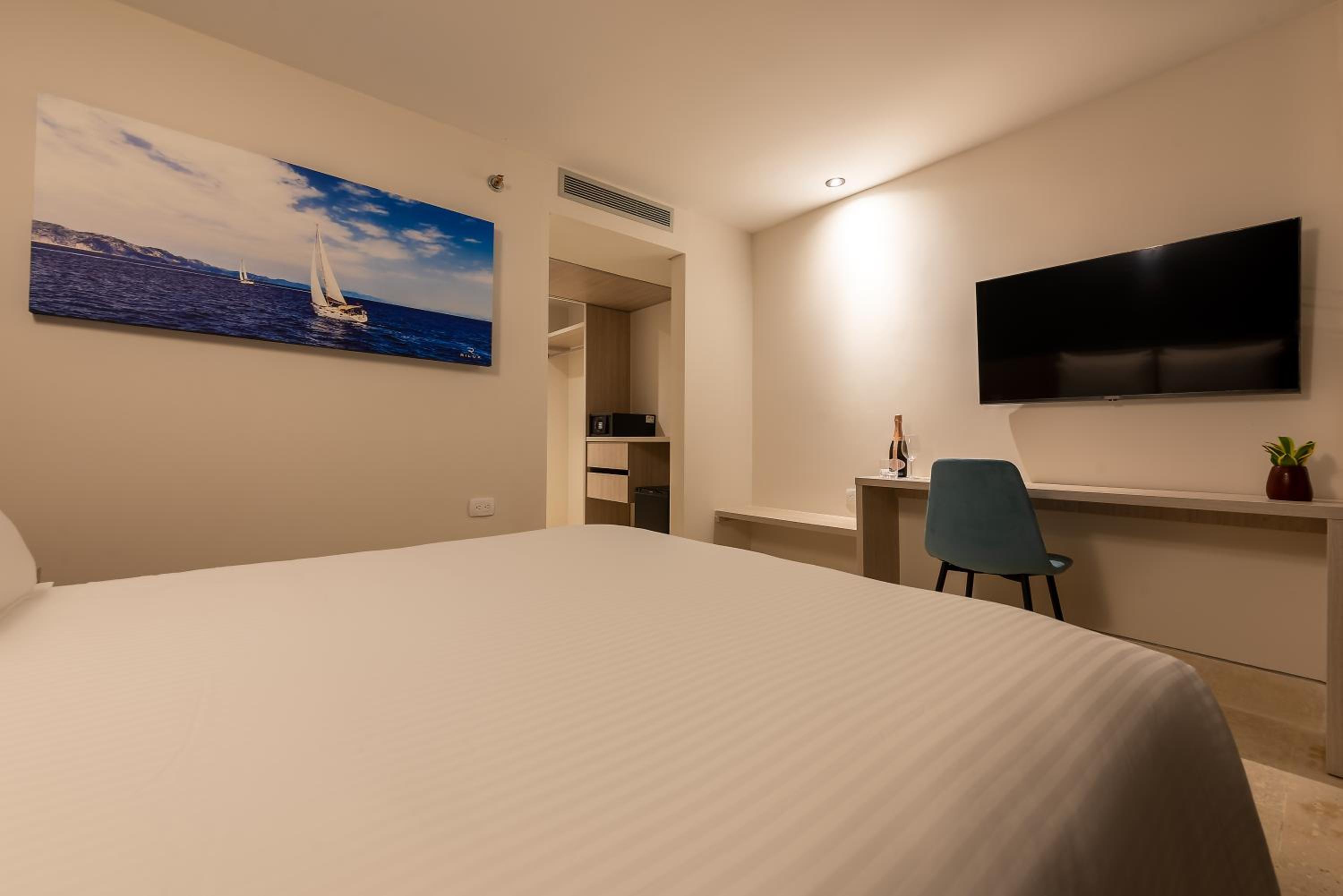 Experience comfort and style at HOTEL RILUX CARTAGENA, offering air-conditioned rooms with modern amenities like a flat-screen TV and a safety deposit box. Relax in a private bathroom with a refreshing shower and enjoy the convenience of room service.