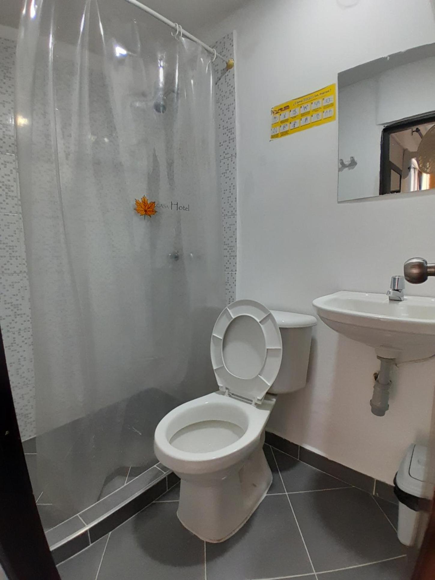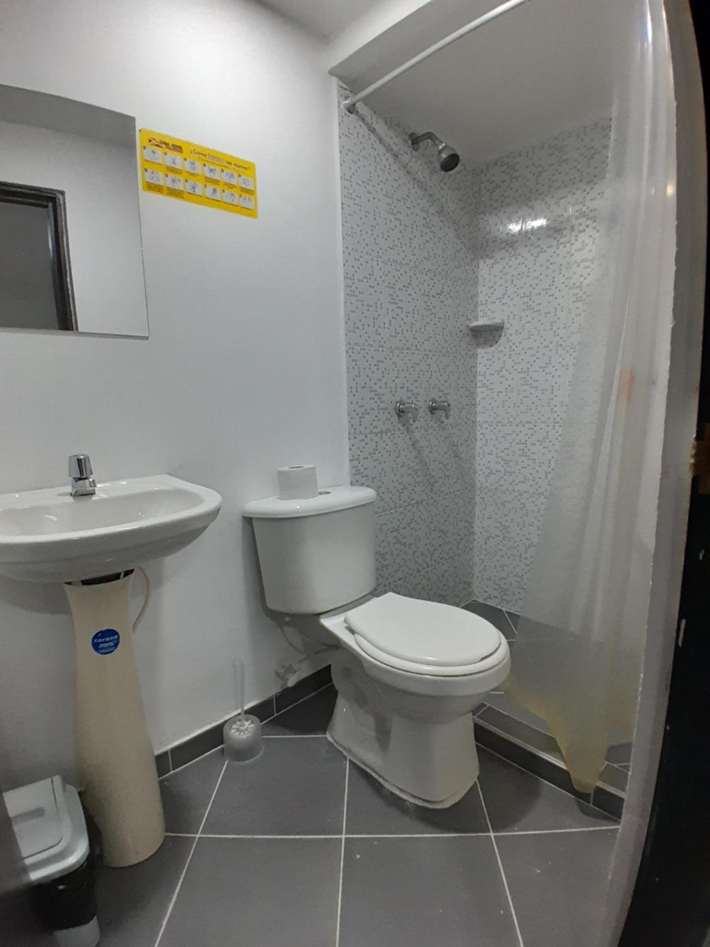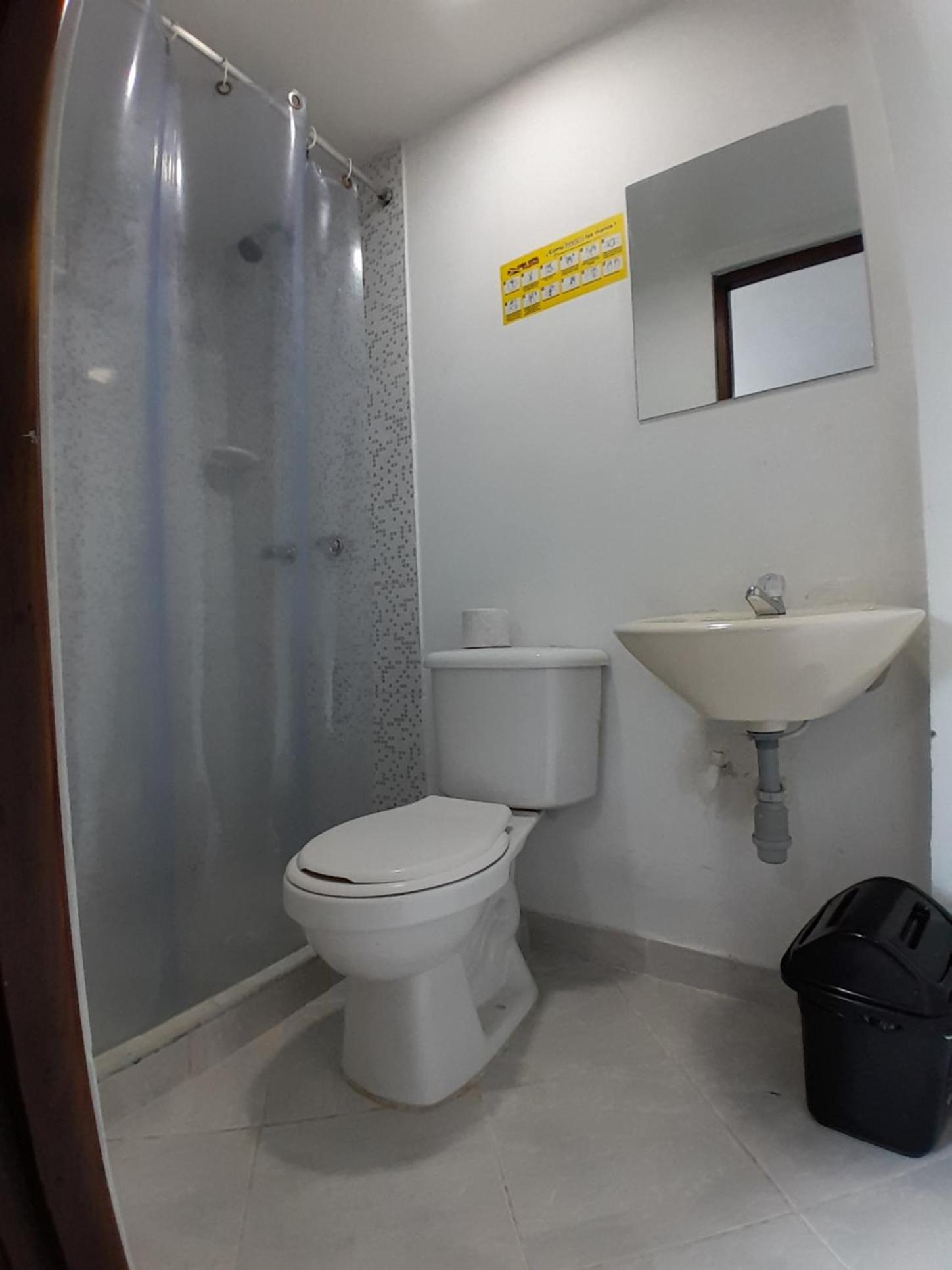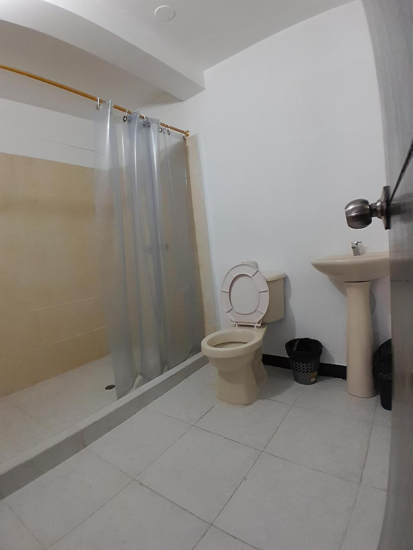 Habitación con olor a cigarro, cortina de baño vieja y brecha del baño con moho y ducha oxidada