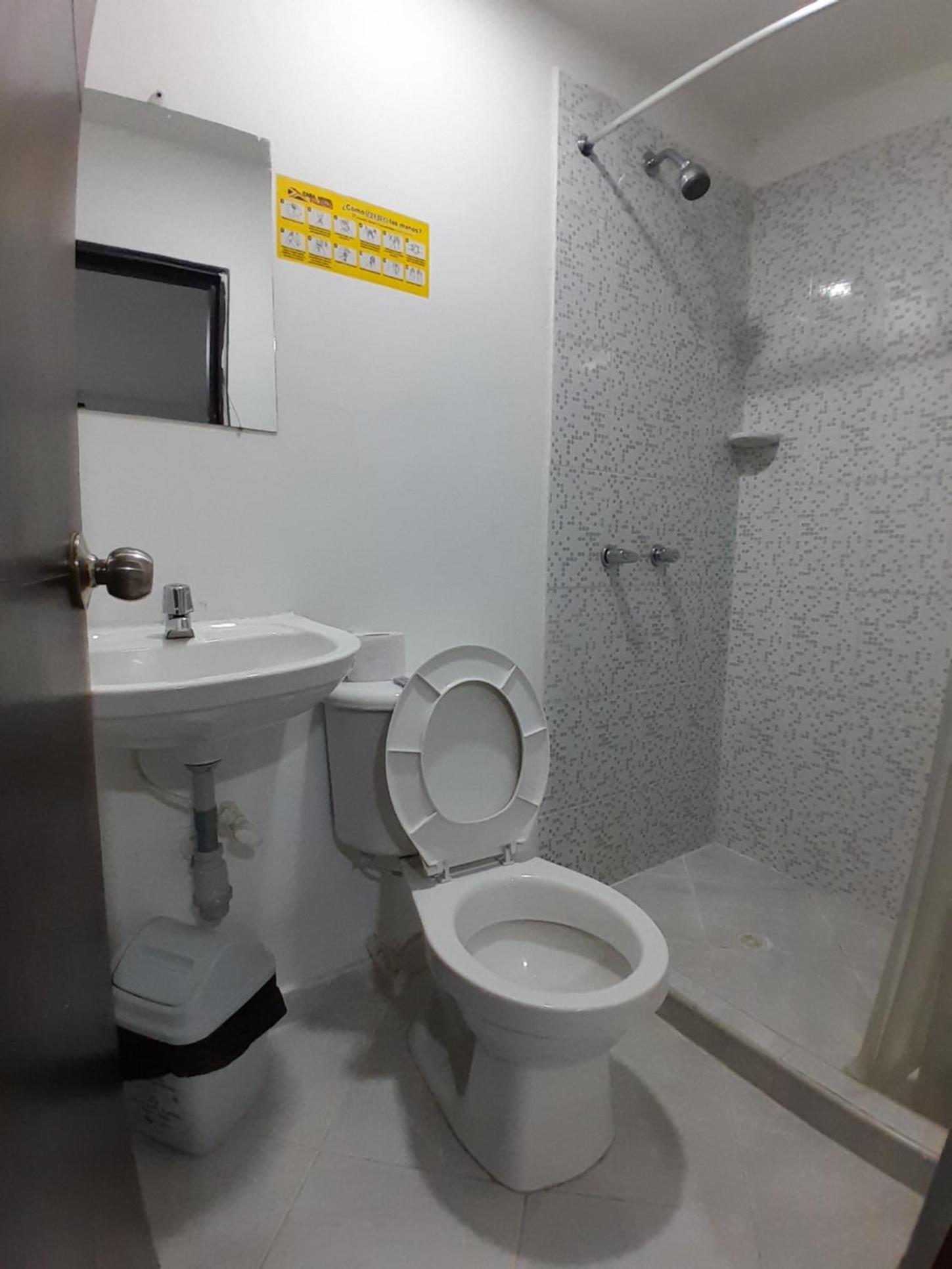 Manque un peu de nettoyage (porte de salle de bain, sol), espace assez petit mais correct pour le prix.
