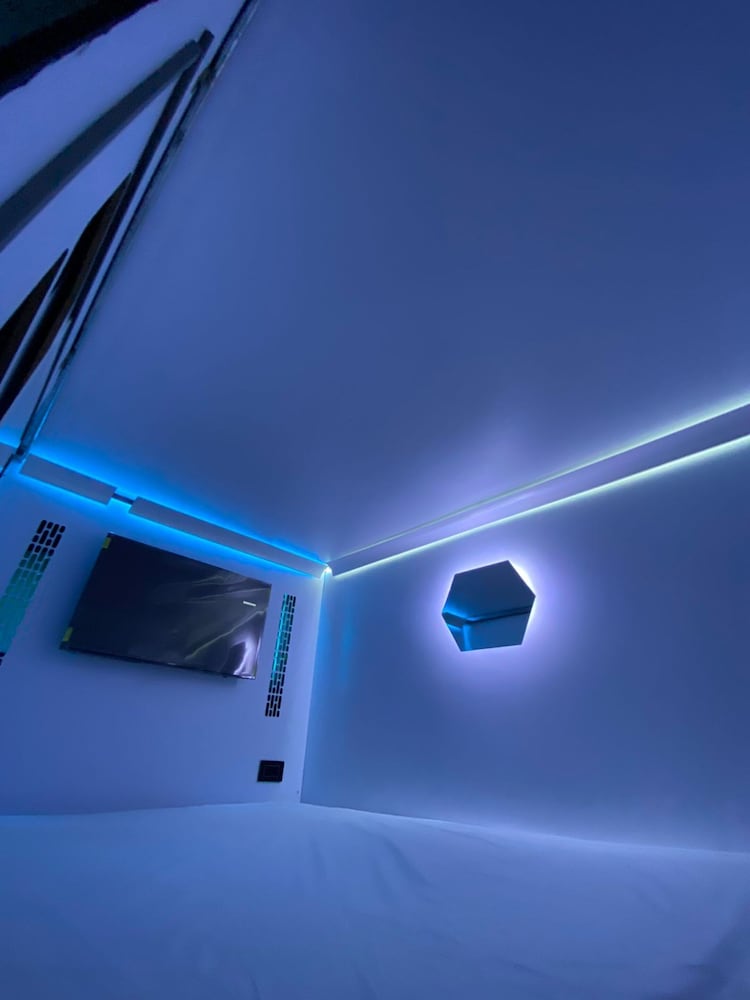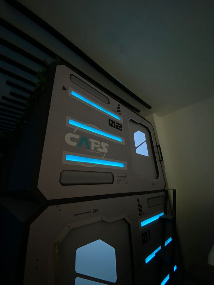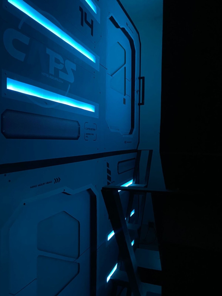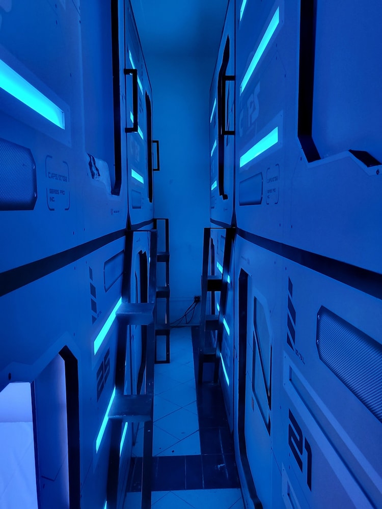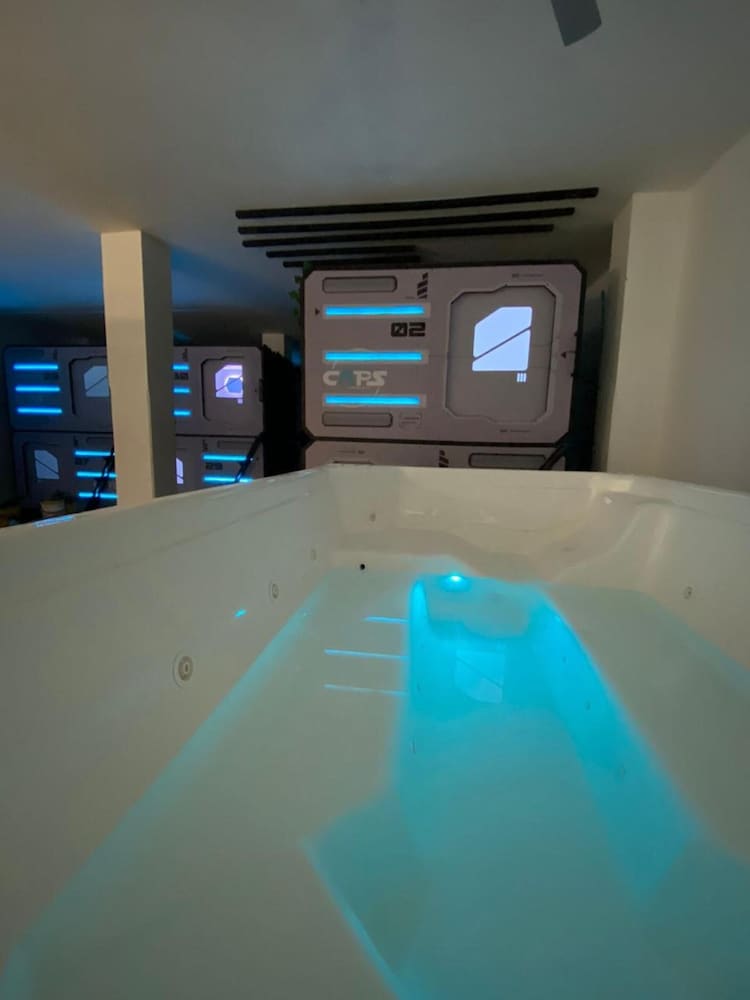 Very hot in the pods, only 1 toilet which has no lock, showers barely had water (only cold), stairs to top pod were tiny and ours was broken, no lockers so we had to keep our luggage in our pod, spa advertised in pictures had no water.