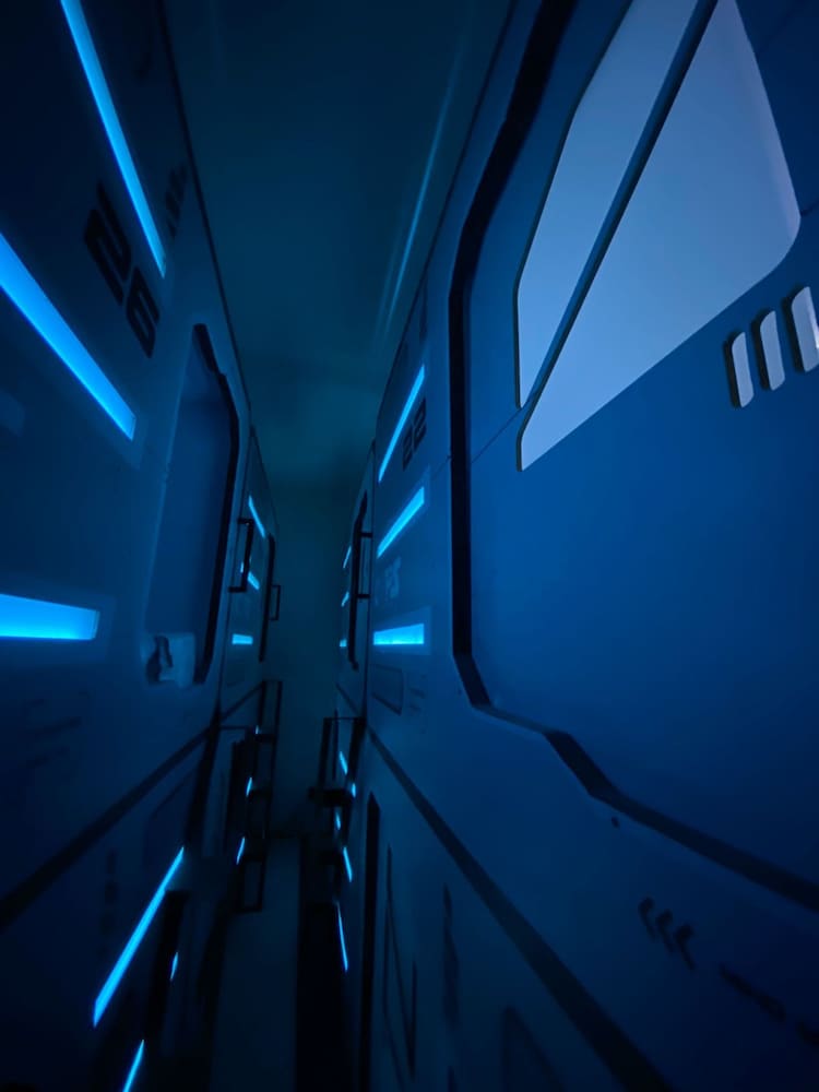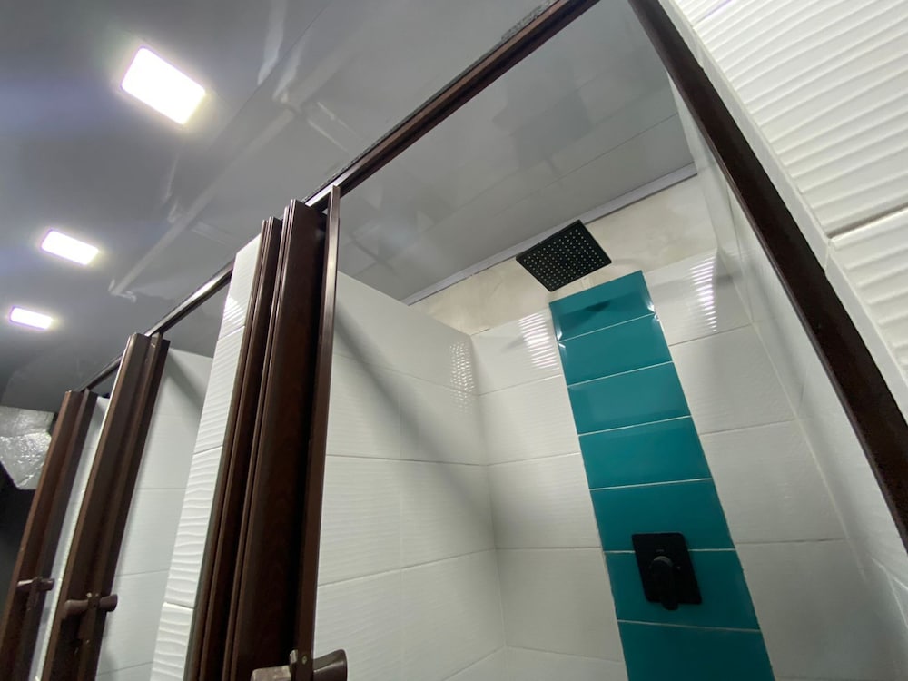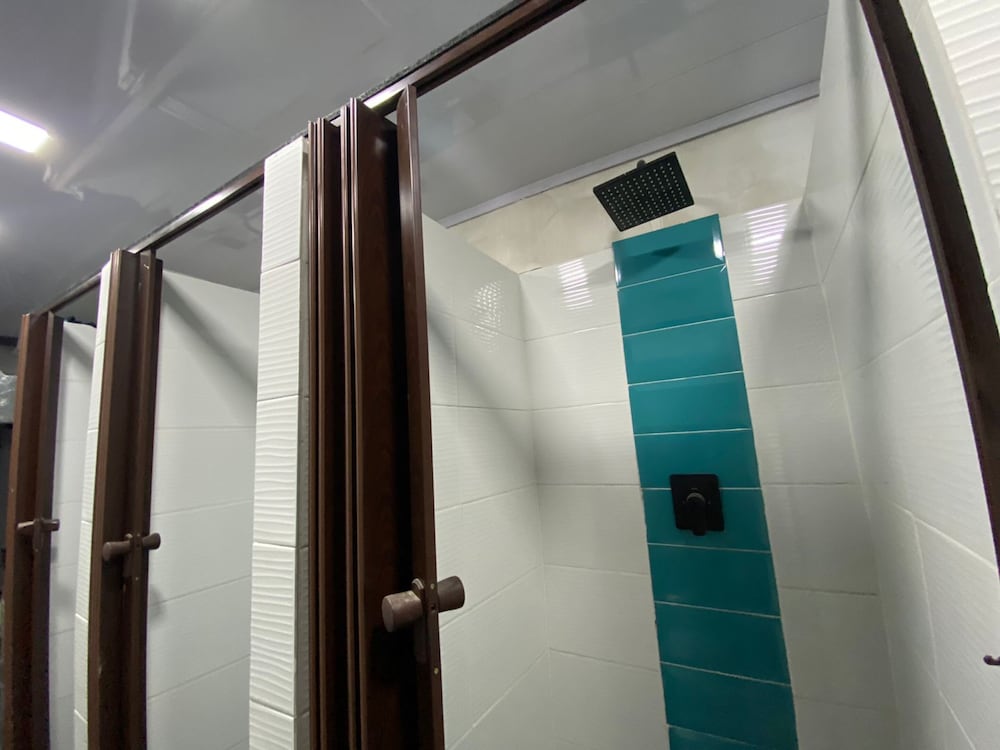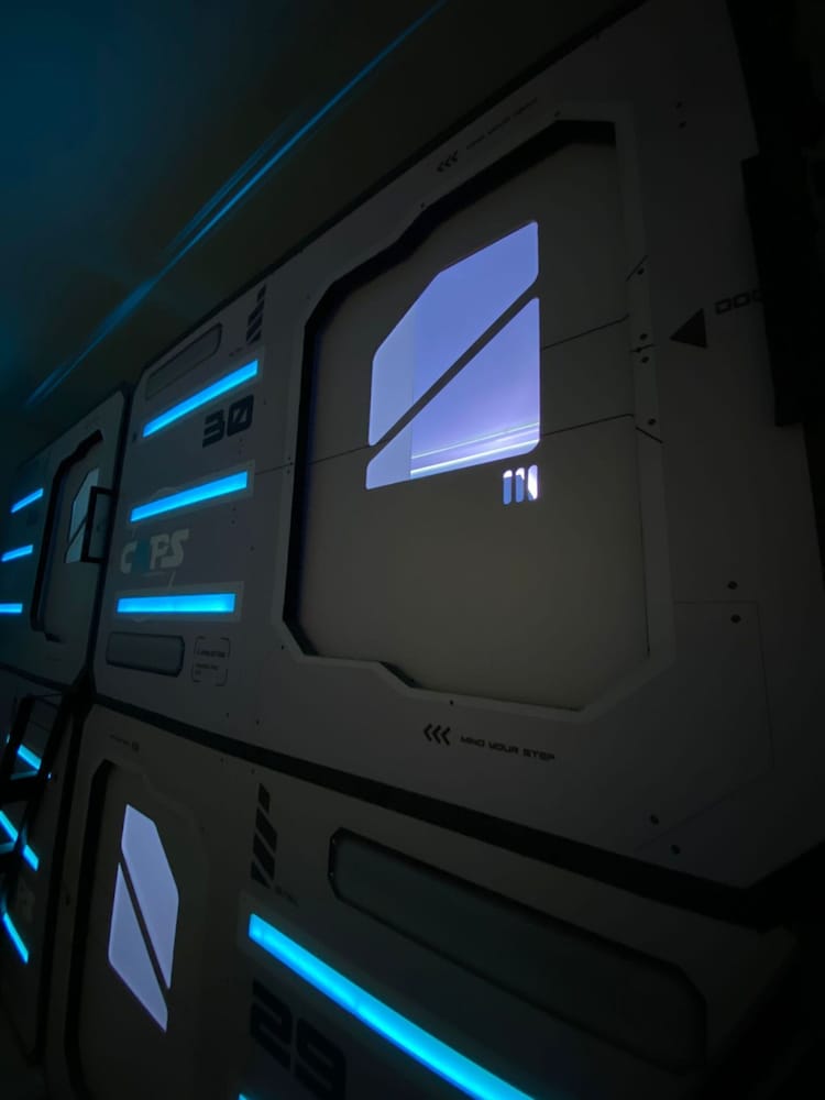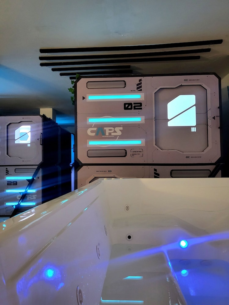 Very hot in the pods, only 1 toilet which has no lock, showers barely had water (only cold), stairs to top pod were tiny and ours was broken, no lockers so we had to keep our luggage in our pod, spa advertised in pictures had no water.