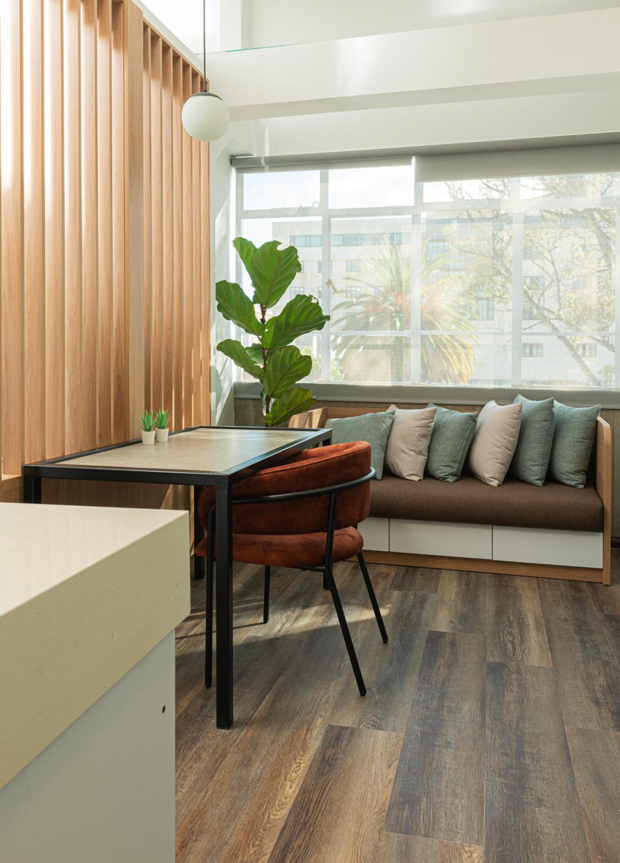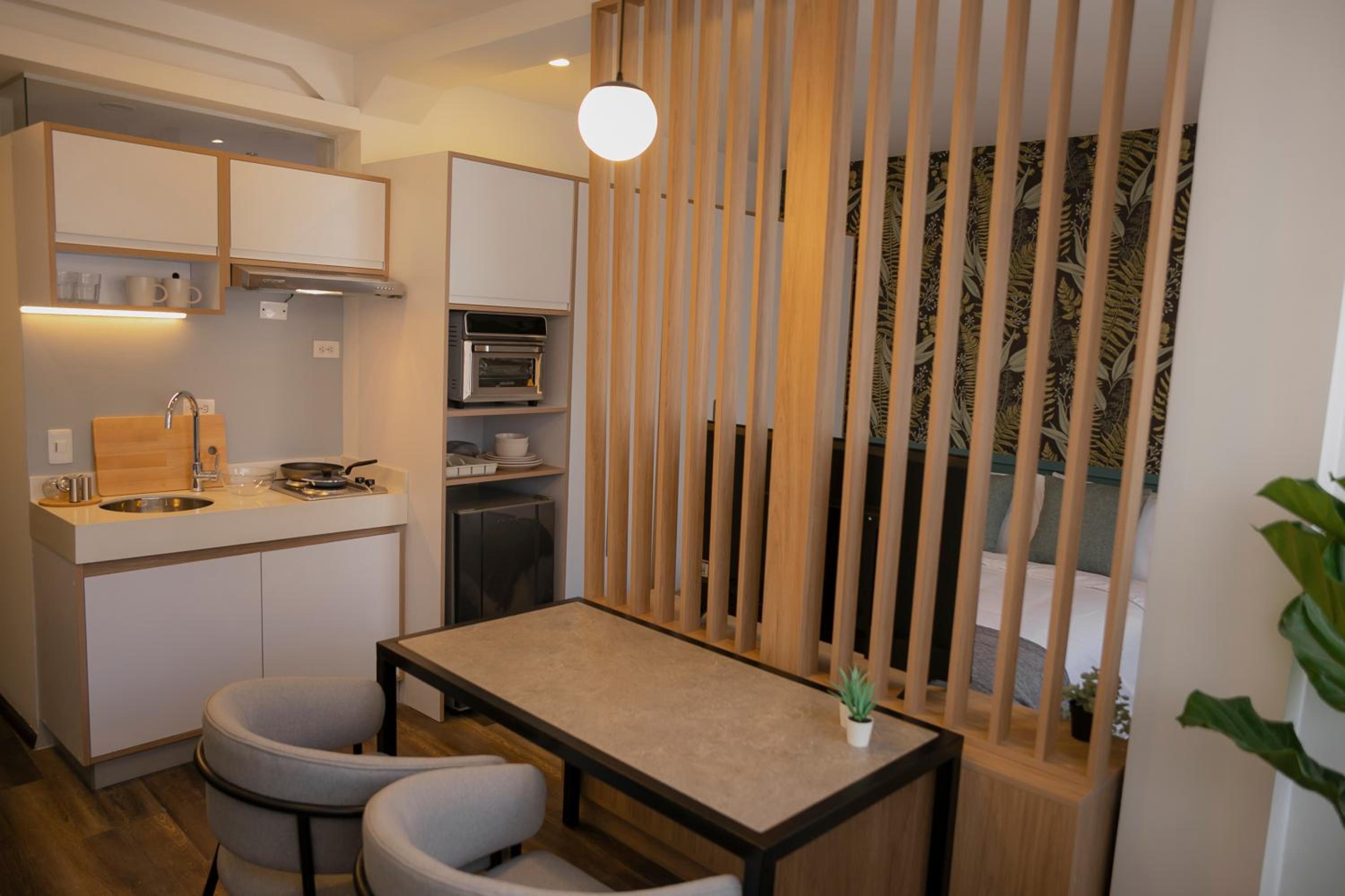 Acomodações confortáveis e com aquele toque de estar em casa, pois os quartos contam com uma cozinha e sala integrada. Um detalhe que gostei demais dos quartos é o fato de haver plantas naturais dentro da acomodação.