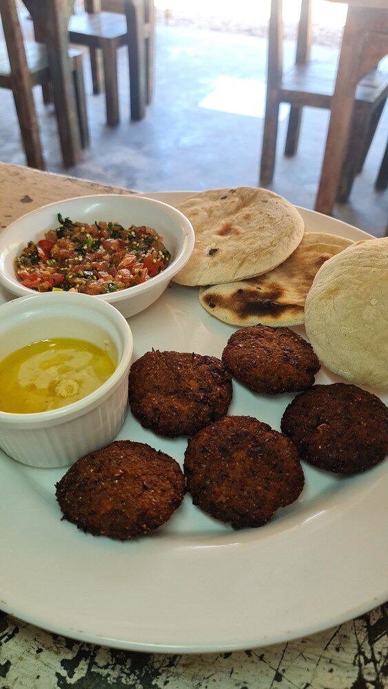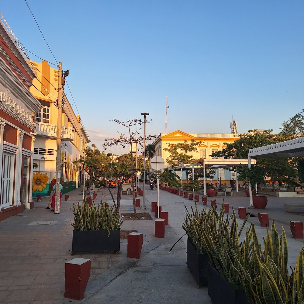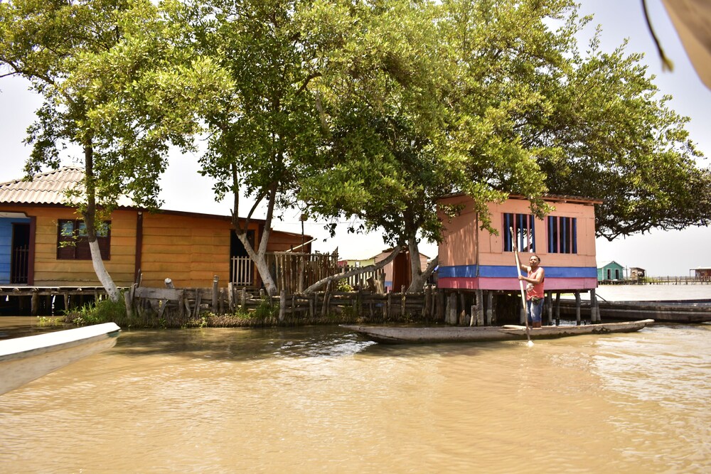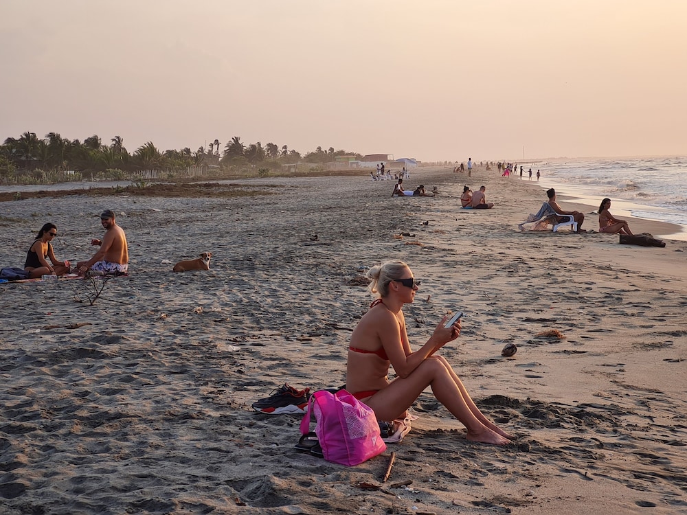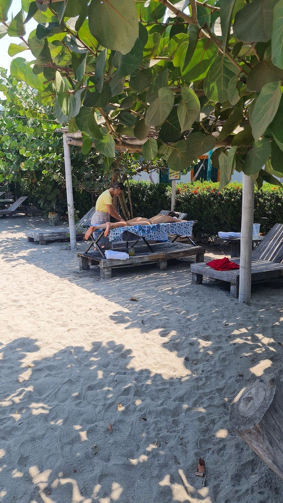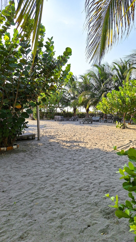 First, this resort is an hour from Barranquilla..just be aware. Second, no A/C (but fans in the room). Third, TONS of mosquitos at night time. The entrance to the ocean cannot be better! Fabulous. Incredibly peaceful! Owner is beyond kind and gracious. Food was delicious (although the most expensive on our entire trip in,Colombia).