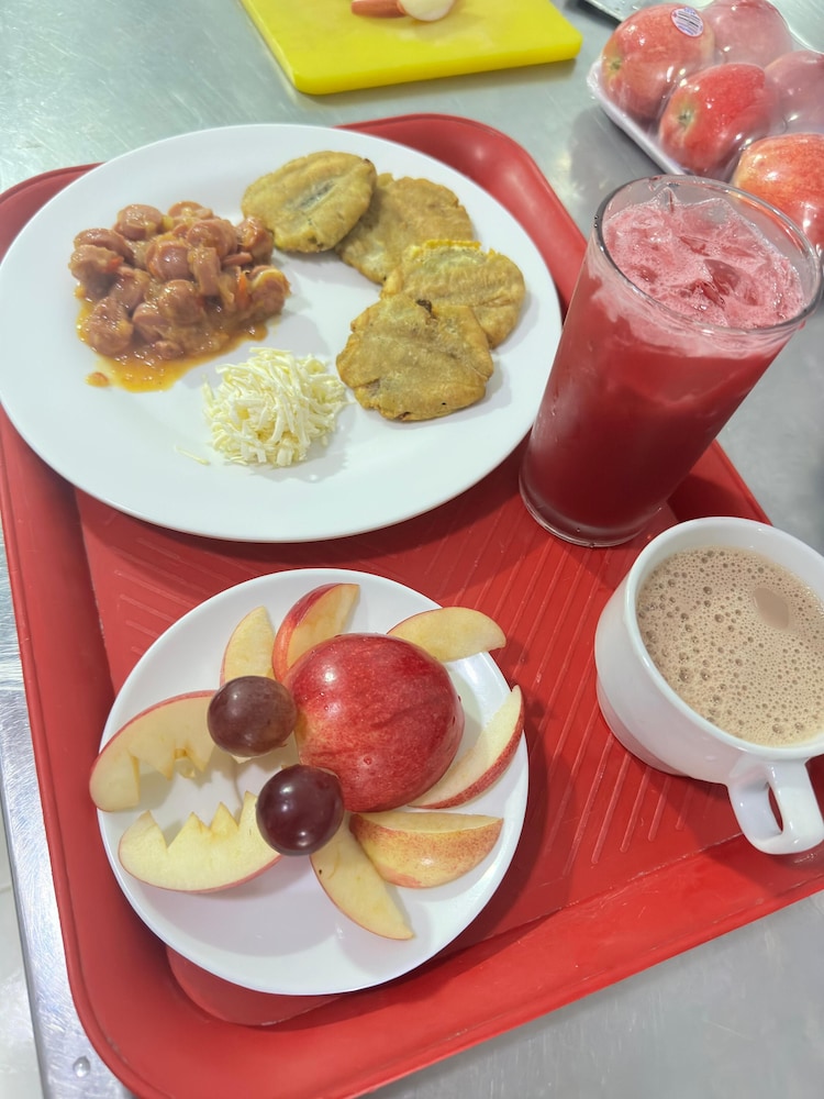 Excelente alojamiento, muy bien ubicado y la atención de las personas de recepción muy buena. La comida estaba rica y era variada. Lo recomiendo