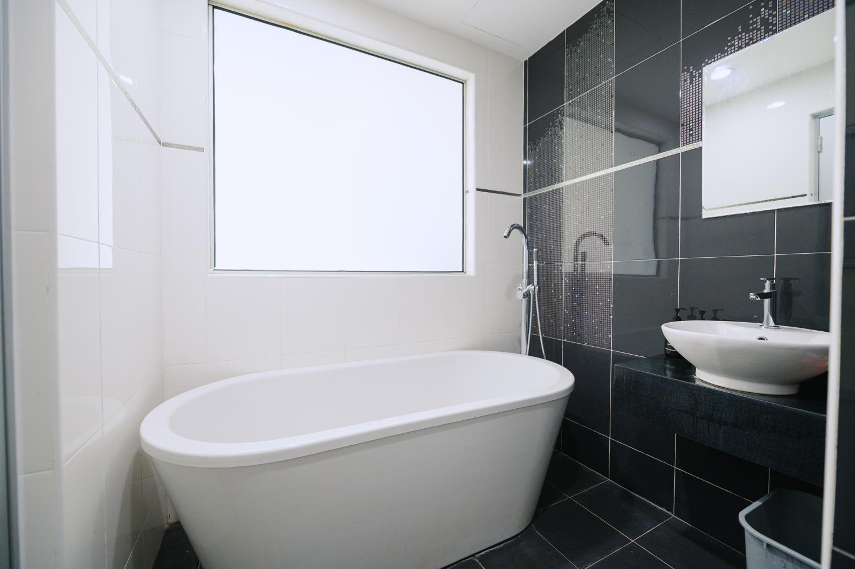 The bathtub is bigggg. Bigger than regular ones.