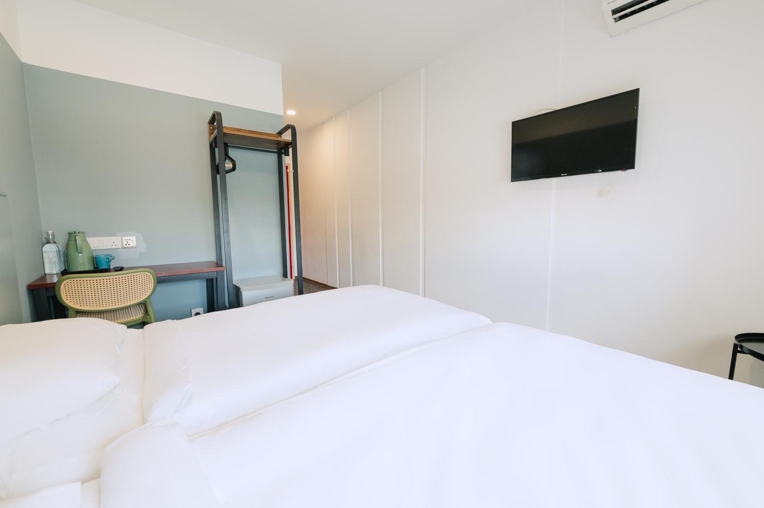 TV doesn't work. Room was okay. Aircon took sometime.to cool. No kettle, but there is hot water outside the room and flask provided.