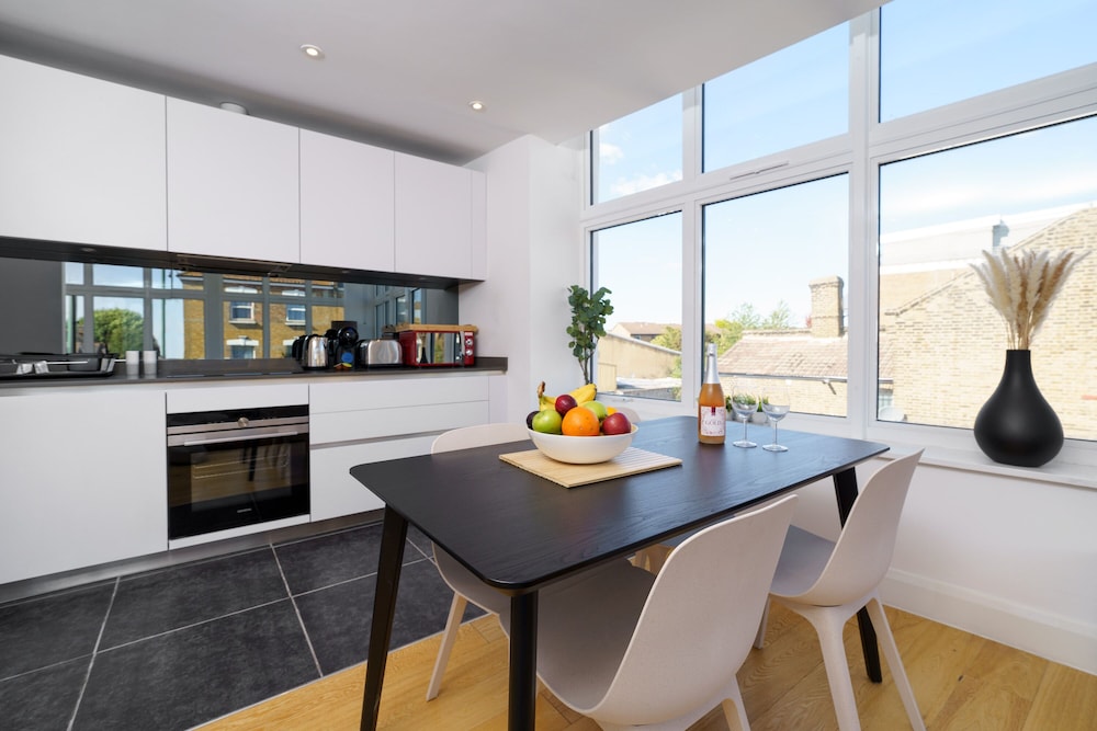 Individually Decorated Rooms: Treat yourself to a unique experience in one of our 8 guestrooms, each individually decorated for a special touch. Enjoy amenities like heated floors and Smart televisions. Fully Equipped Kitchens: Feel at home with kitchens that include refrigerators, stovetops, and microwaves for your convenience. Convenient Location: Centrally located in London, with key attractions like Queen Elizabeth Olympic Park and ExCeL Exhibition Centre just a short drive away. Experience the best of London during your stay at Panther House by Oval!