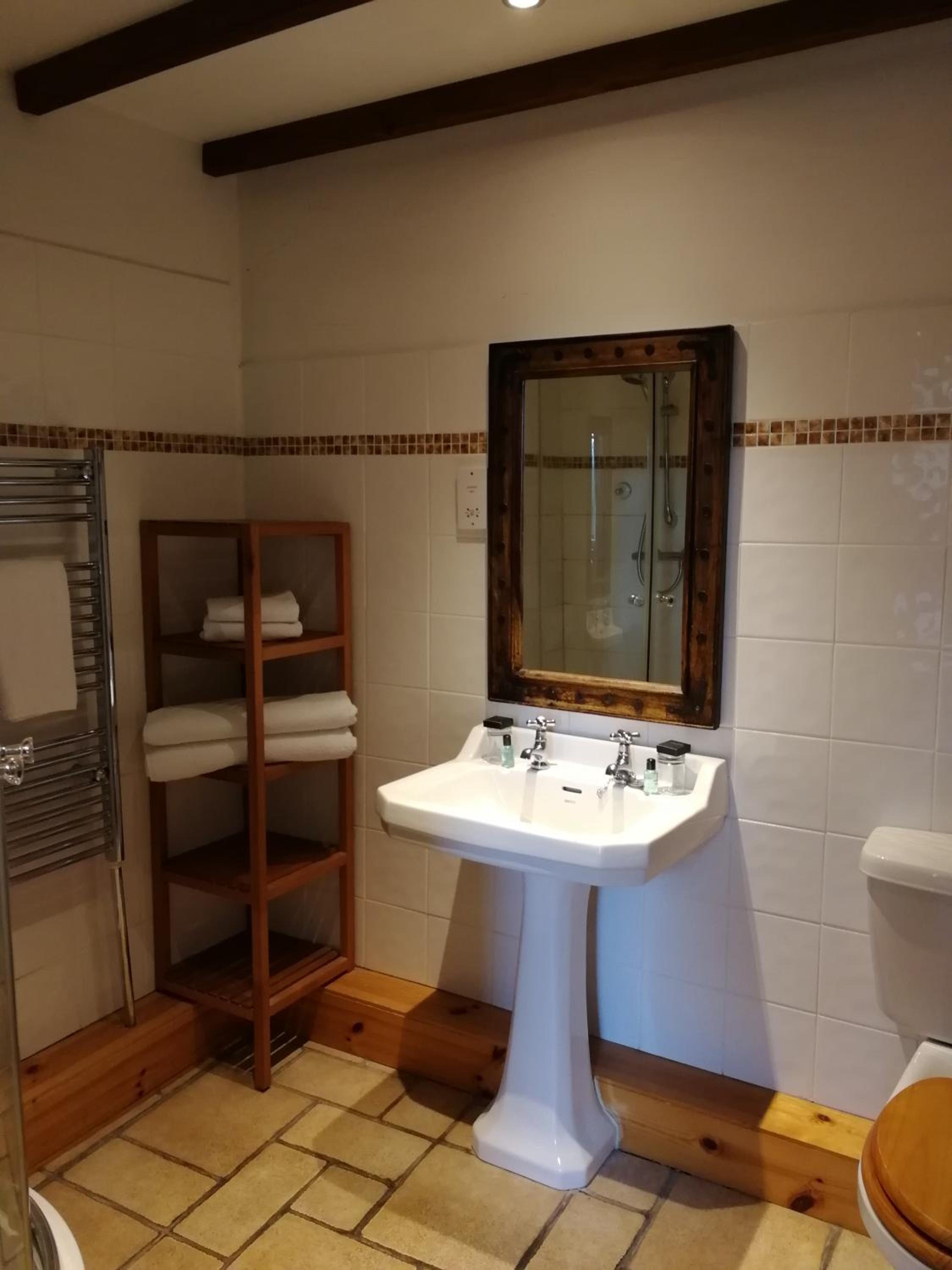 The grandeur of the outside, unfortunately didn’t continue inside, whilst everywhere was clean, it was very tired and had seen better days. The whole place could have done with a fresh coat of paint and new carpets. The shower screen leaked, whilst not an issue for us, I would imagine after a while the room downstairs might not have been happy. Also it left the floor very wet and was soaking the wall. We couldn’t open the windows either, they were old sash type, and it was far too warm. The water from the sink taps was a dribble, even when opened up. We didn’t use the restaurant, but ate in the conservatory type place…. Again with a bit of thought it could have been nice, but was more like a canteen. It was old fashioned, but not in a retro or stylish antique way. It wasn’t awful and for one night it was ok, but we wouldn’t have wanted to stay longer.