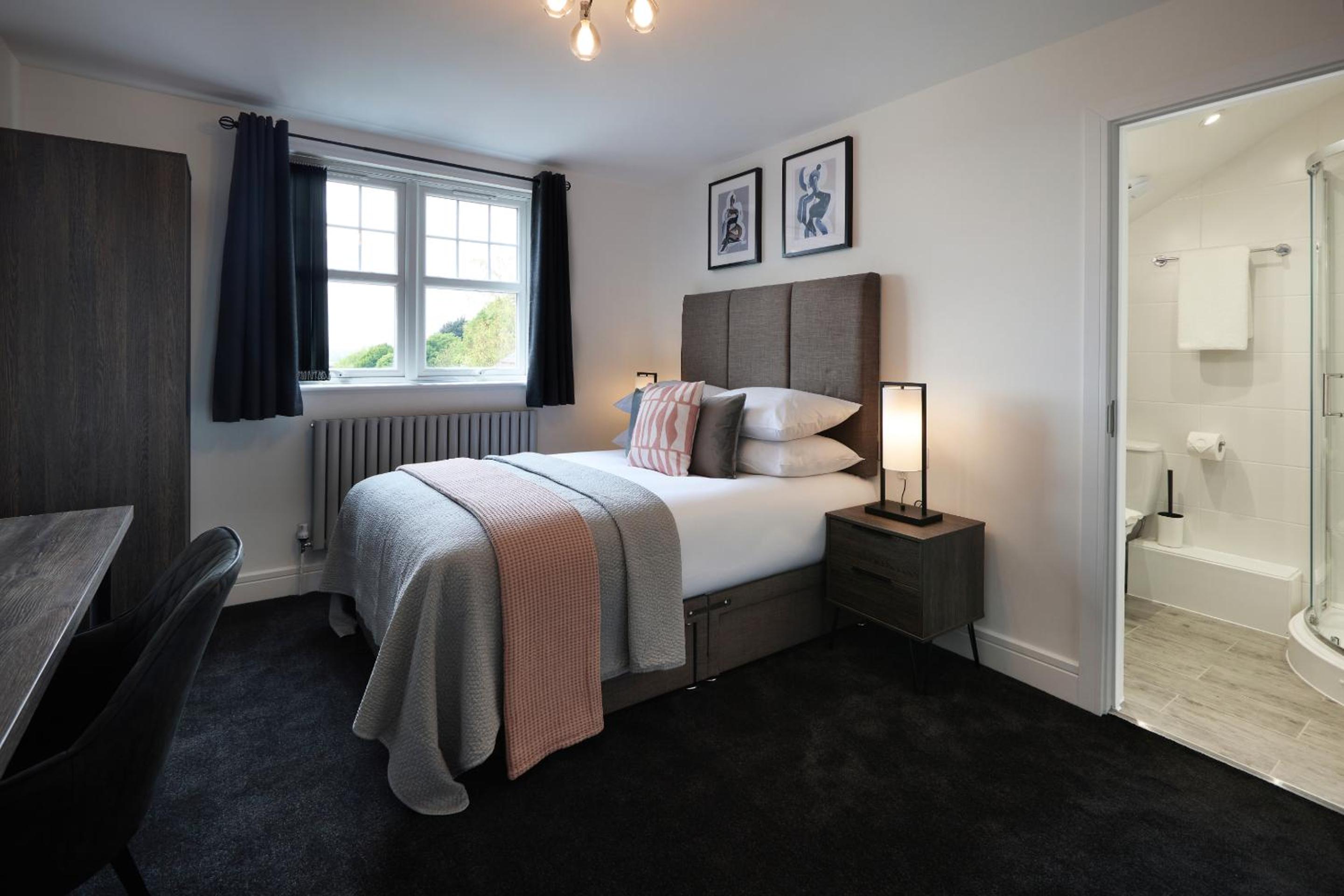 Experience luxury at The Woden Boutique Hotel Walsall M6 J9, offering beautifully designed rooms with modern amenities including flat-screen TVs, fridges, and comfortable bedding.