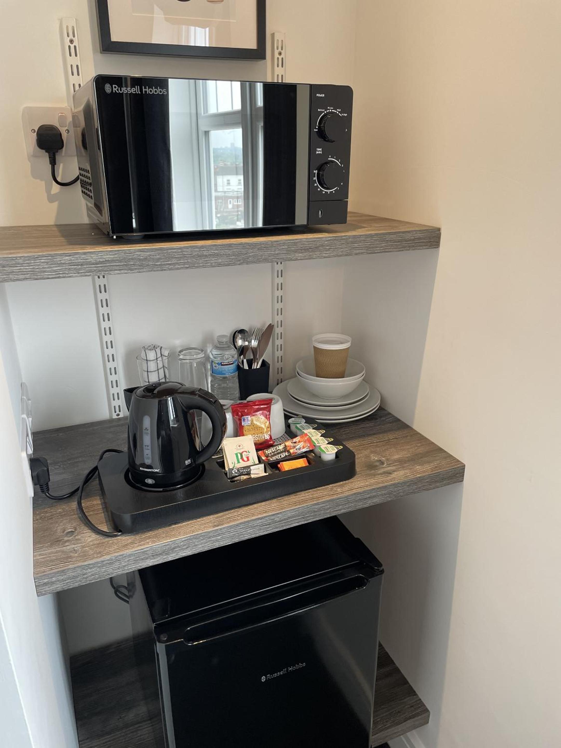 Good ‘in room’ facilities including fridge and microwave, and bowls, plates and cutlery.