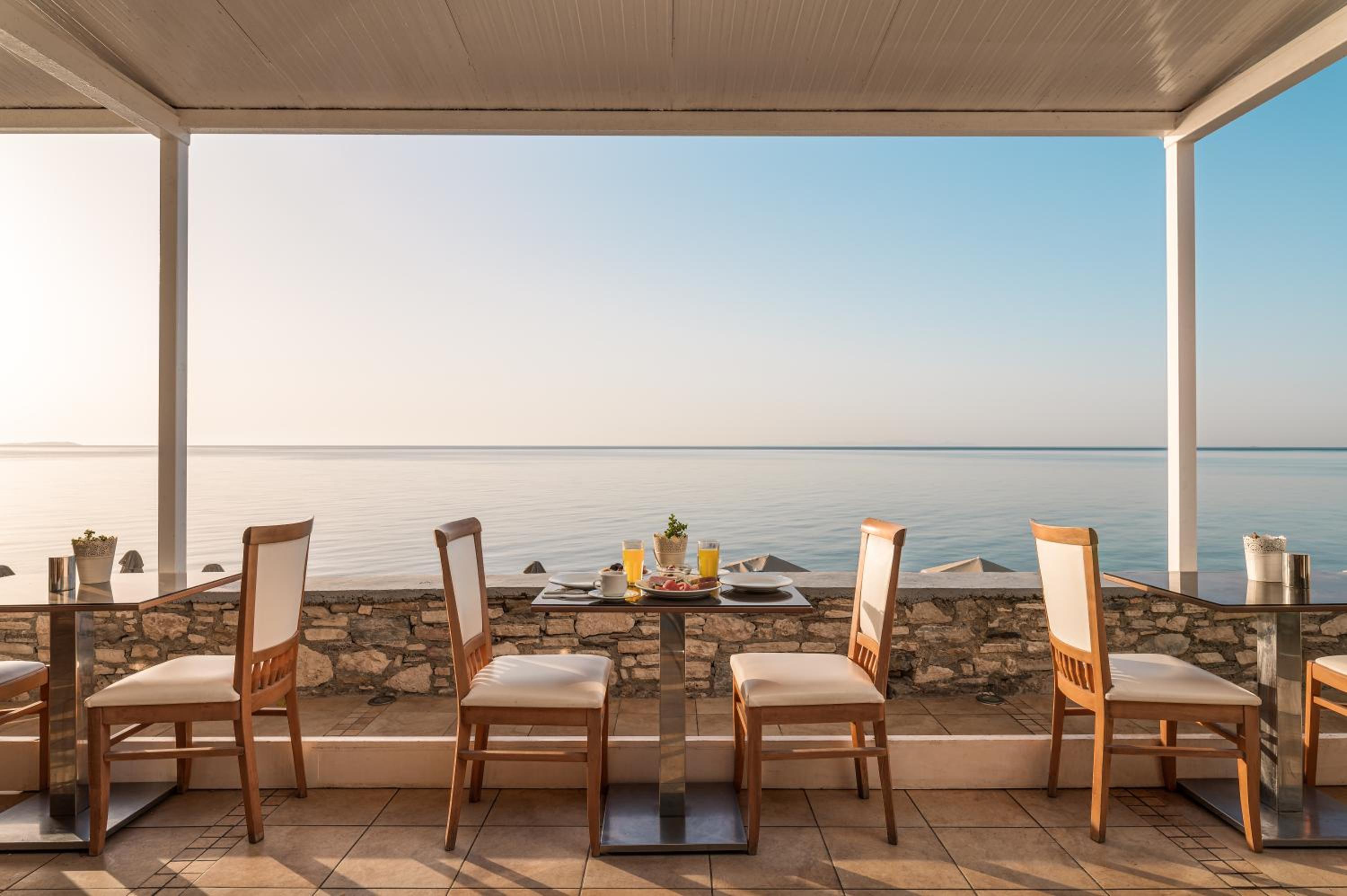 Sip on cocktails and savor light snacks at the Cafe Music Bar while taking in breathtaking views of the Aegean Sea. It's the perfect spot to unwind and enjoy the beauty of the surroundings.
