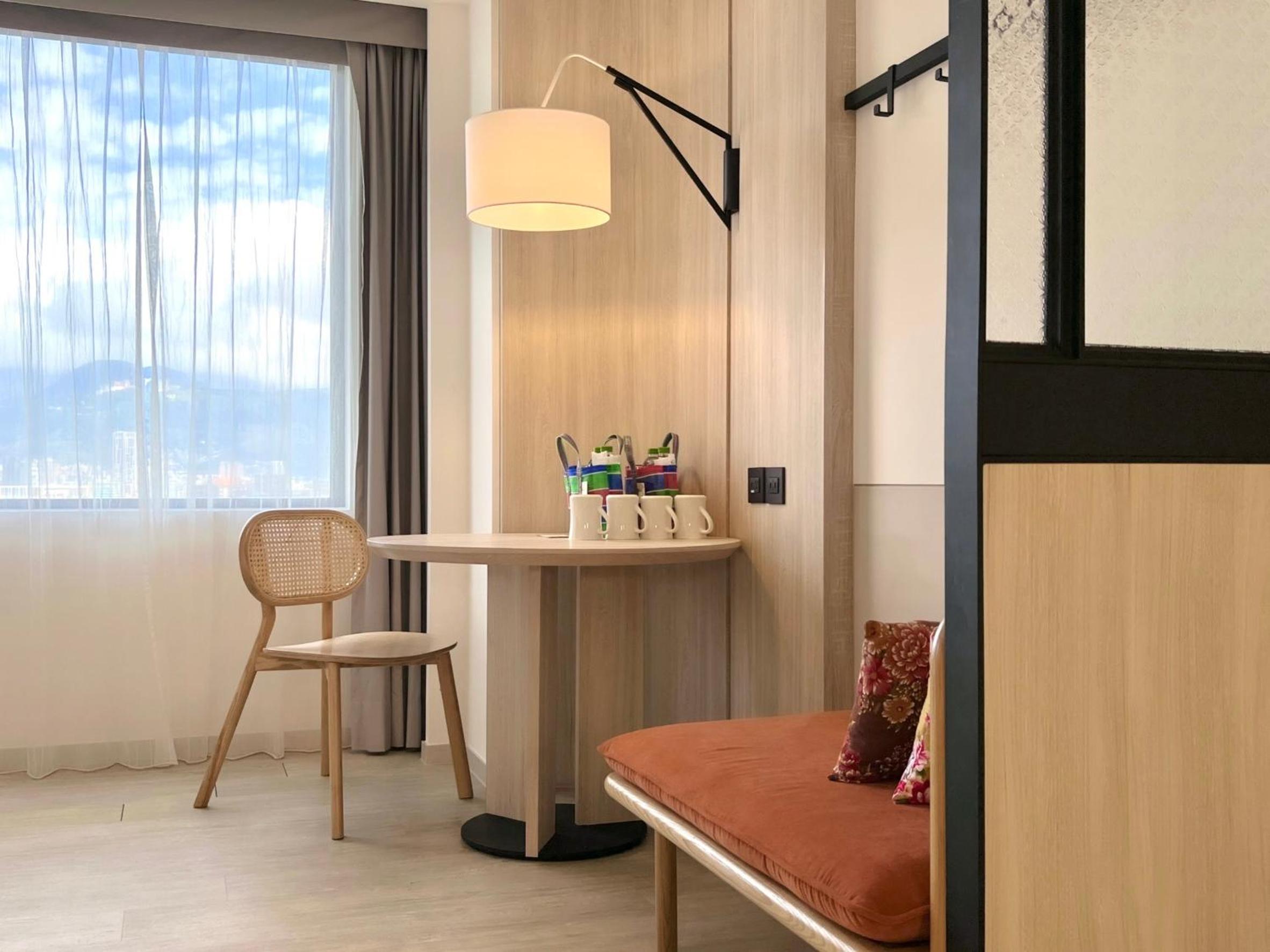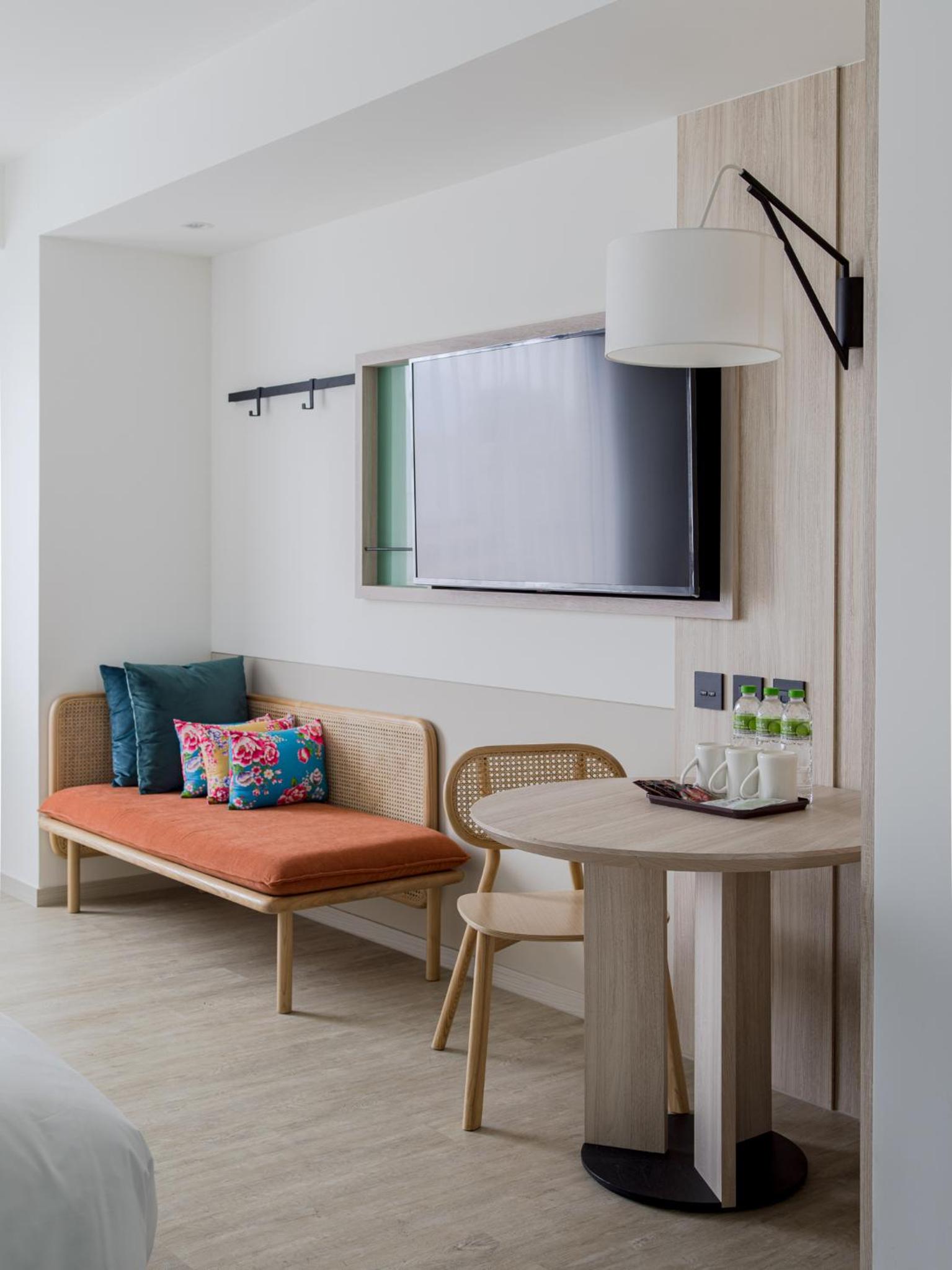 房間乾淨、裝潢有質感,迎賓的飲料茶包很好喝,櫃檯服務人員很親切也有耐心,附近有超商很方便。