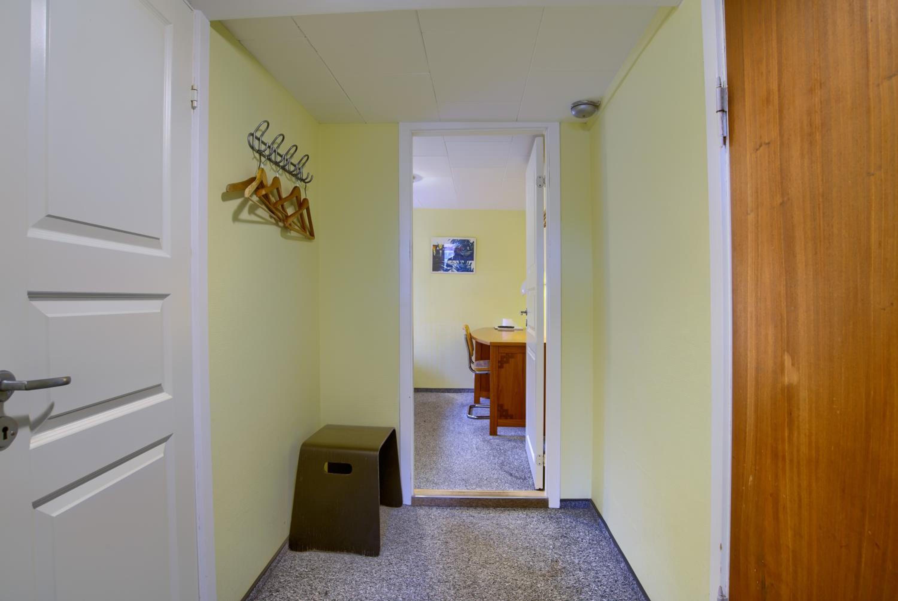 Att man kunde göra eget kaffe. Vattenvärmare fanns i korridoren och frystorkat kaffe. Gratis parkering.