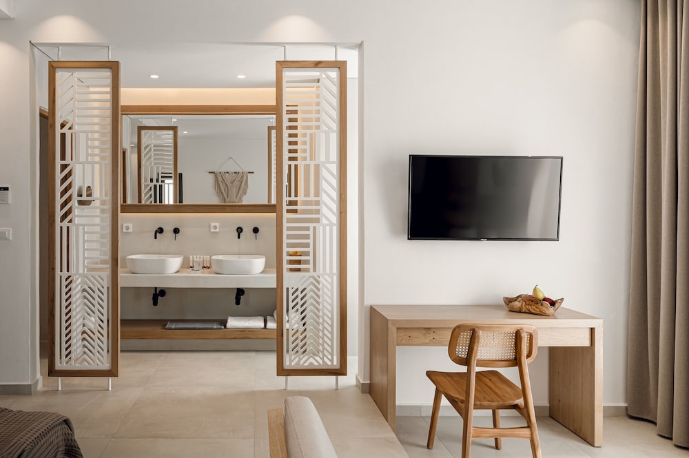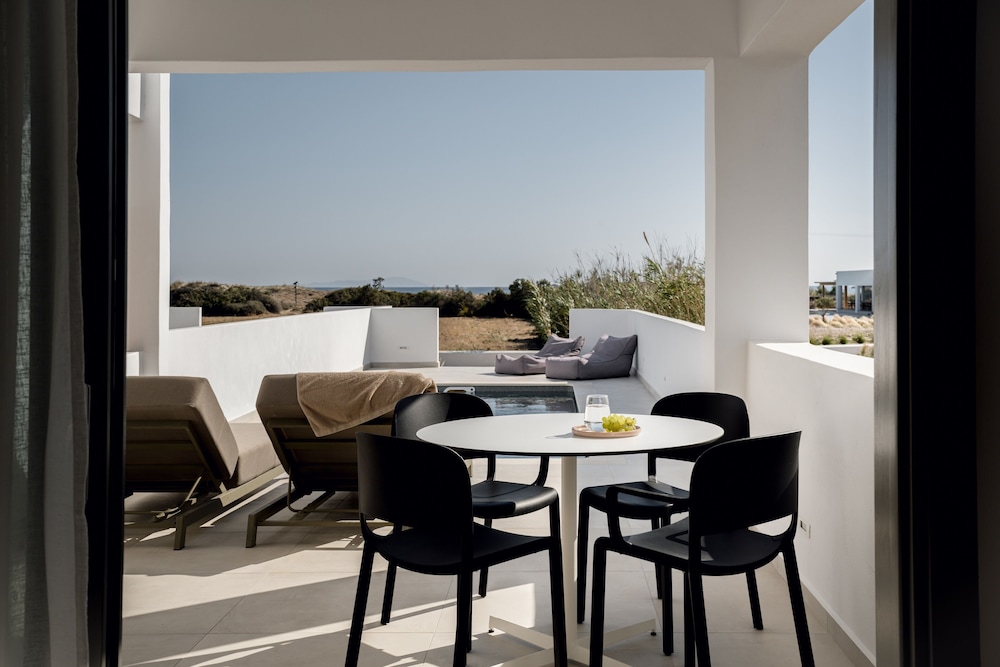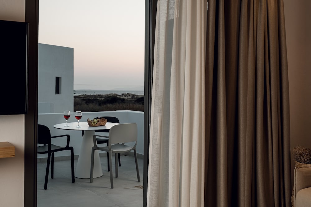 Great beachfront hotel with great breakfast, pool area and beach access. Many other dining options within walking distance. The property seemed very new. The staff were incredibly responsive and helpful. Helped with rental car to explore the island and easy to access rest of island with this as a home base. Be aware that there are several clothing optional beaches on Naxos.