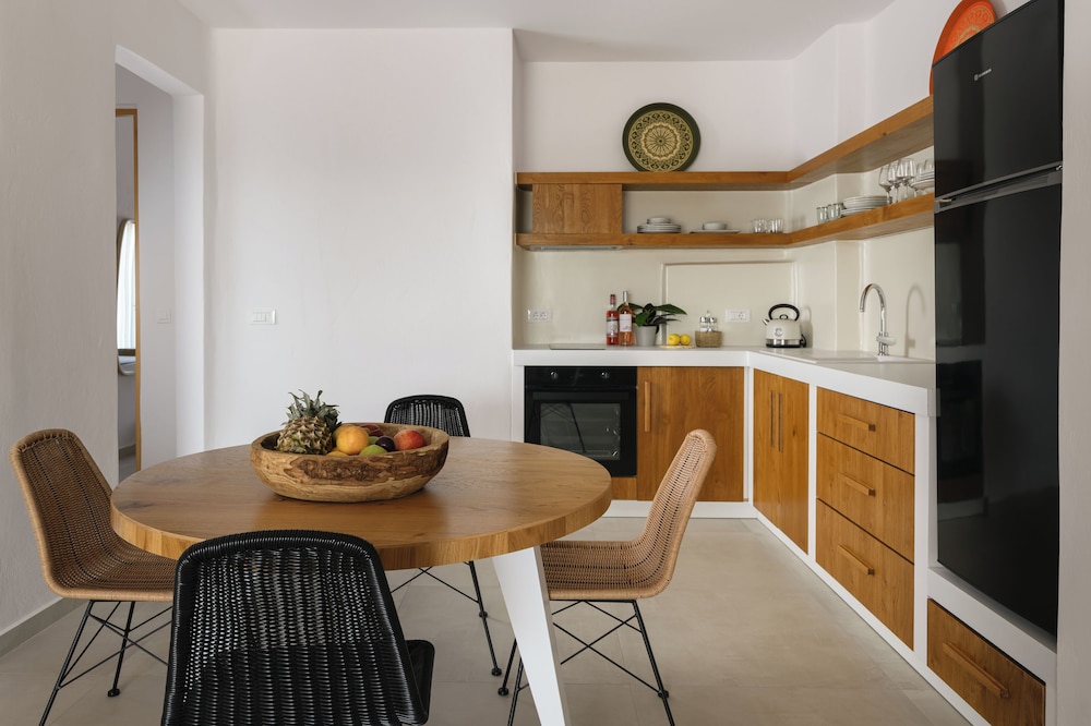 amazing place, however we spent a good amount of money on taxi’s to go to Limani for dinner and shopping. There are some great walkable places, it very dark at night on a dirt road. beach was amazing and convenient!