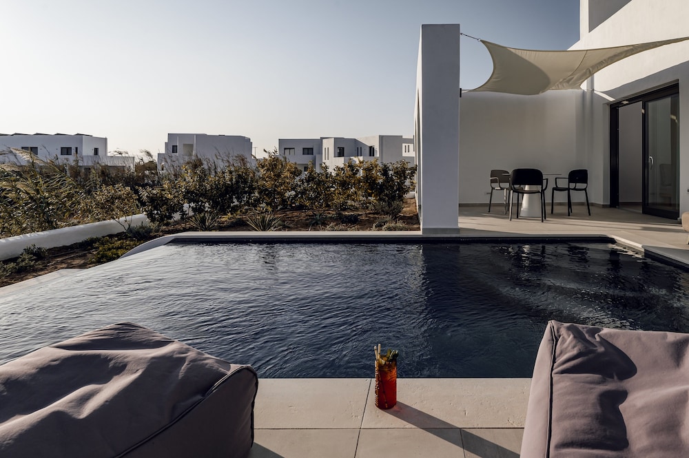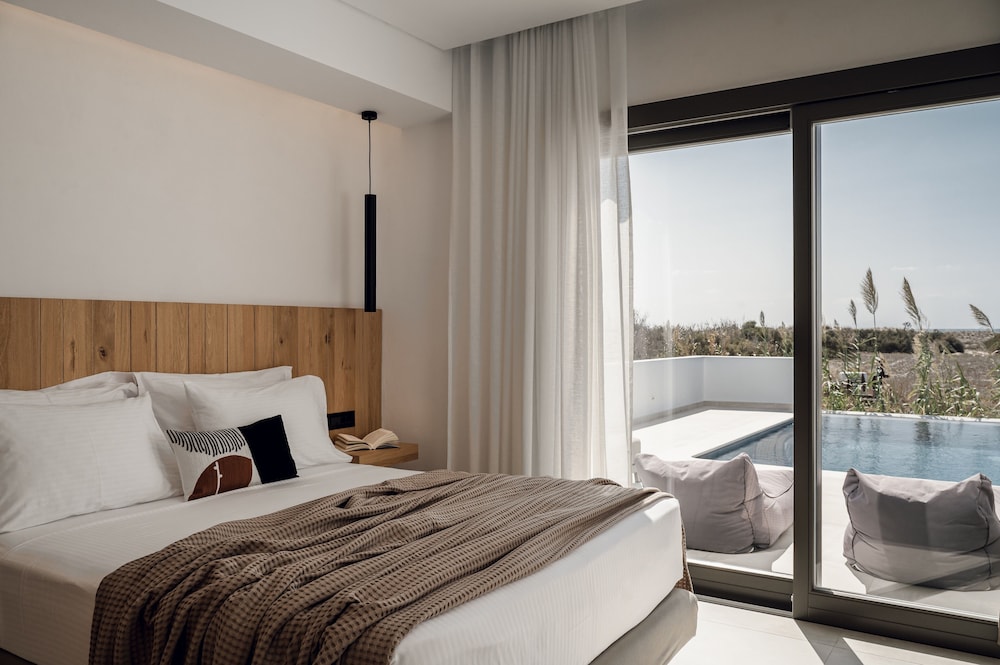 Be aware this property allows children’s birthday parties at the pool for locals. We arrived a day late due to ferry cancellation and only had one full day at the property. We cancelled an all day excursion so we could enjoy the facilities only to be confronted with an 8 year old local birthday party with 15 or so 6-8 year olds running around screaming and chasing each other . It would have been helpful if we were made aware of this upon arrival and we would have rearranged our schedule. But when you are spending $300/night and paid for a day/night we couldn’t use it was extremely frustrating and disappointing . There were signs around the pool that said no toys in the pool so as not to disturb swimmers but the kids were throwing balls around and none of the parents or staff stopped them . At one point a little boy pulled his pants down and mooned everyone . Also be aware beach lounge chairs are not included as the beach is public. The front 3 rows are reserved for hotel guests but unlike other areas of Greece where you can spend money on food and get the beds for free, this is not the case here. You pay for the lounge chairs separate from any food purchase .