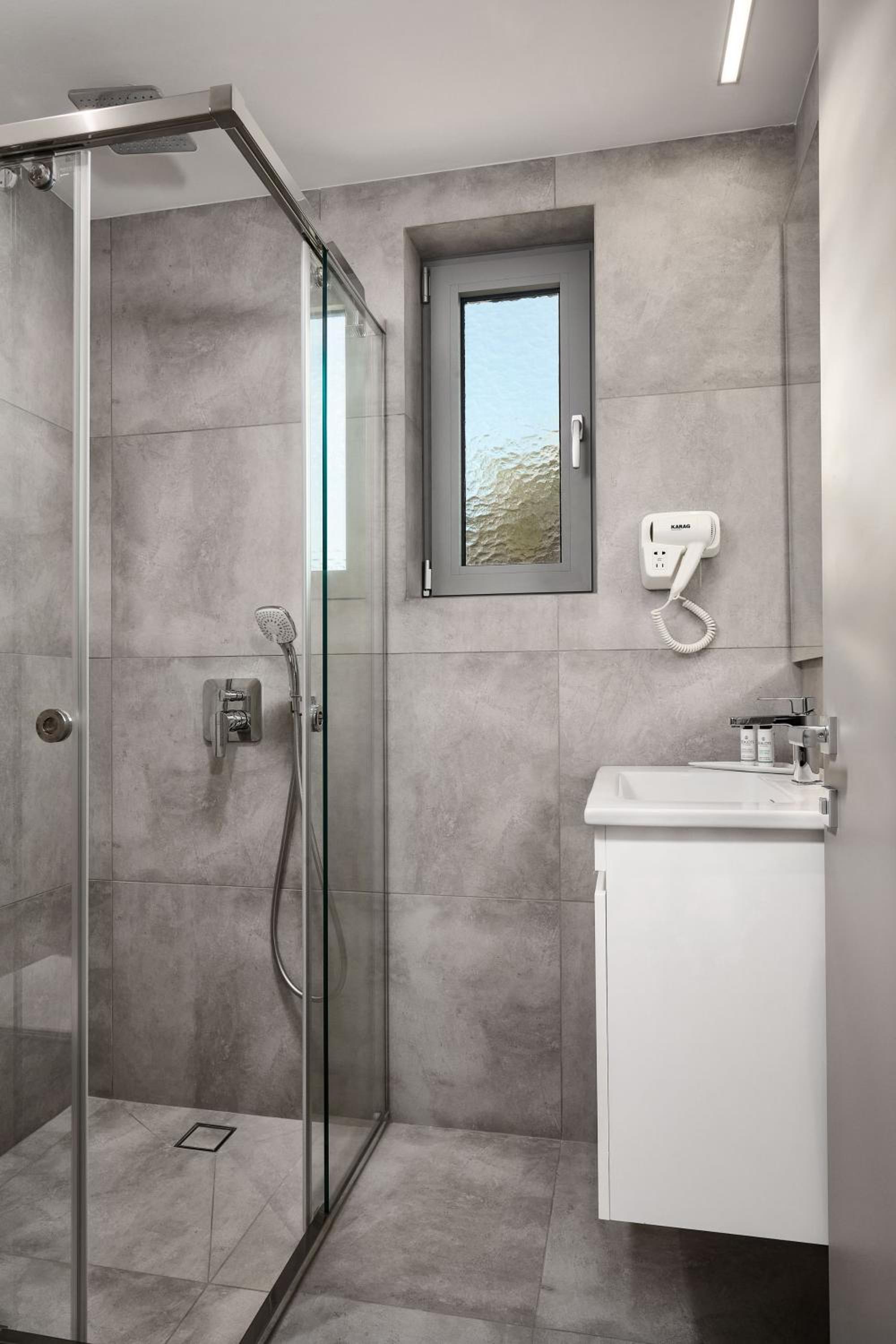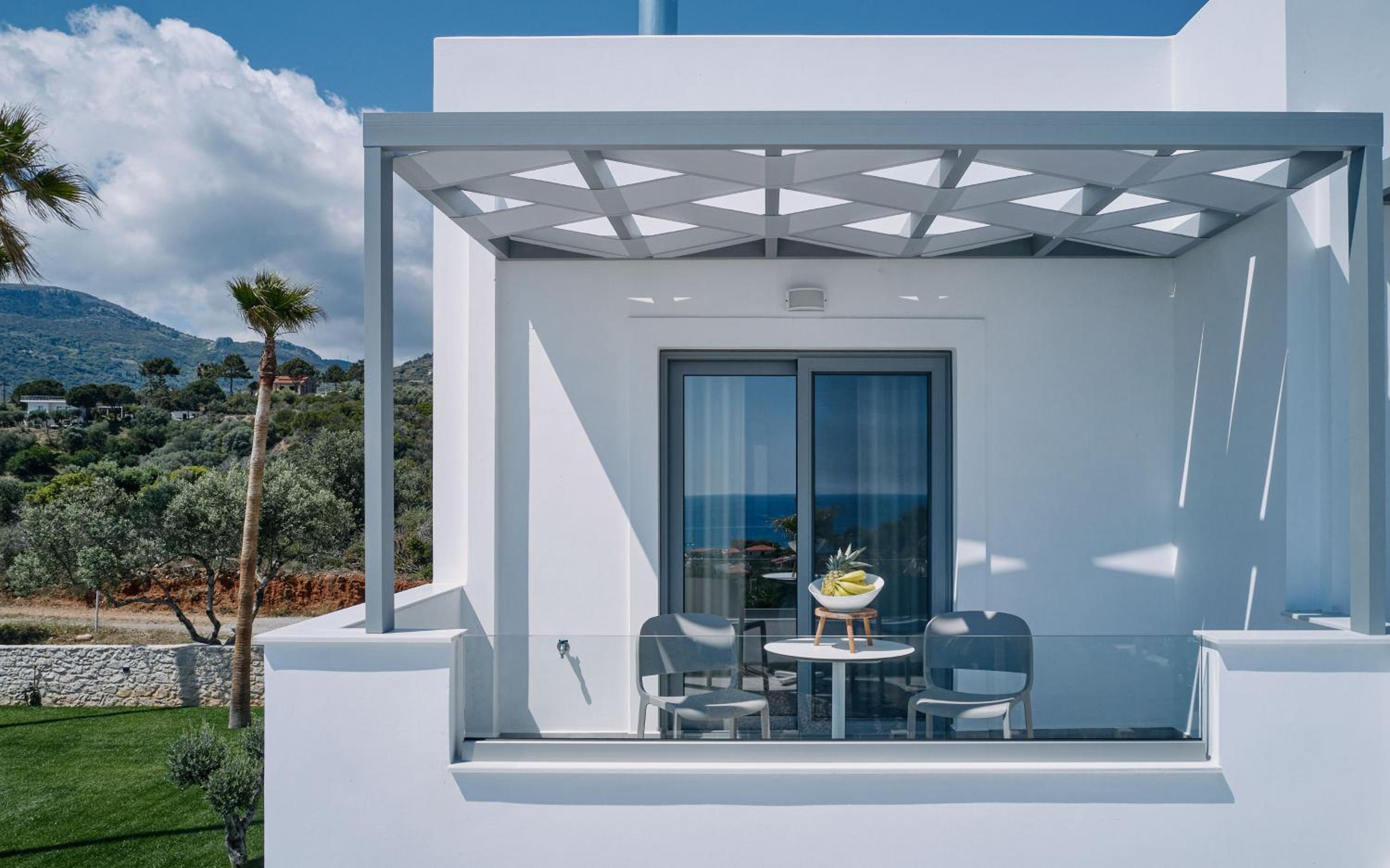Modern Amenities and Stunning Views: Each room at Quattro Suites is equipped with air conditioning, a flat-screen TV, and a balcony with either a mountain or sea view, ensuring a comfortable stay with picturesque scenery.