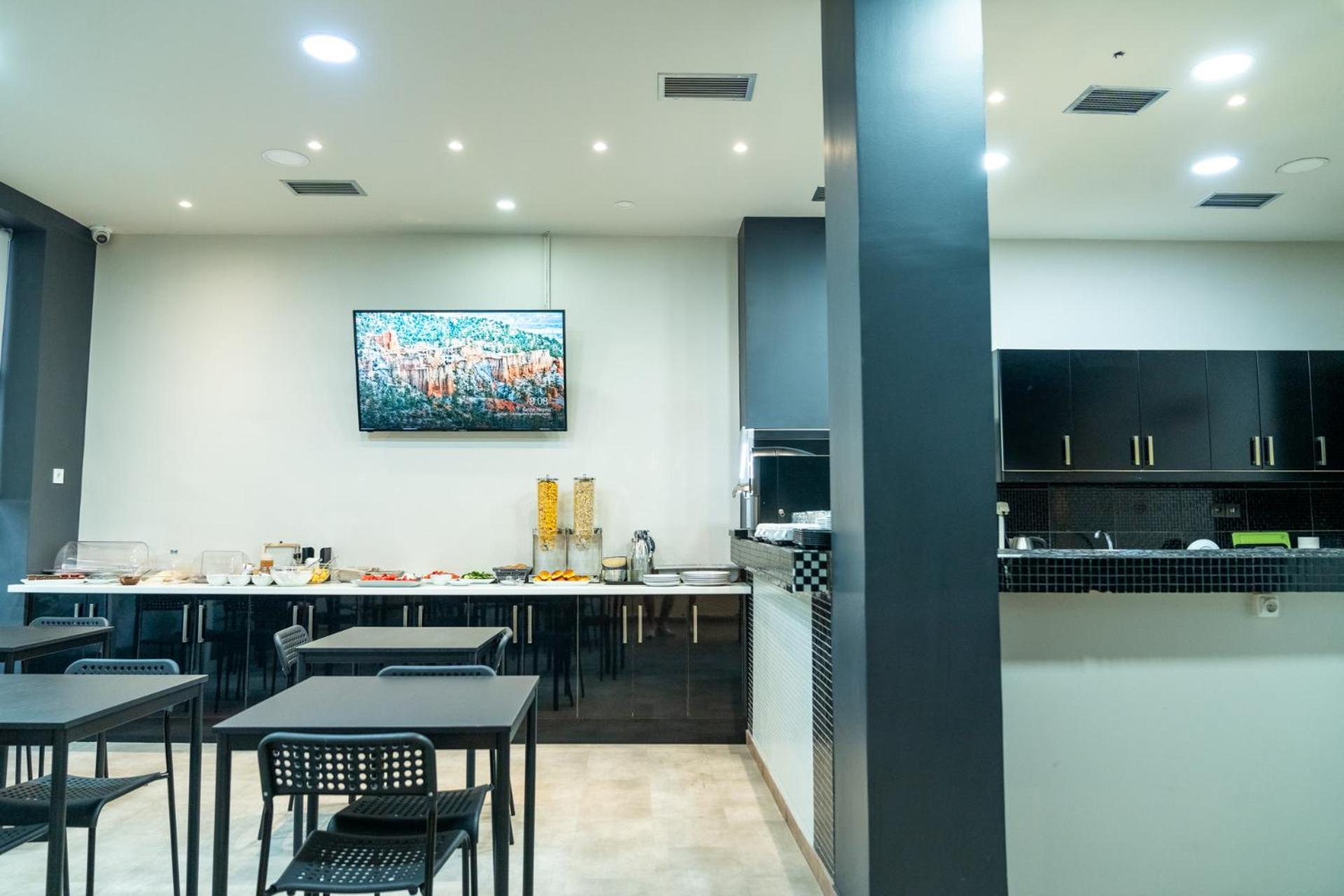 Priestory dosť malé (úzke chodby, malinký výťah, na schodisku sa ani dvaja ľudia proti sebe nevyhnú). Priestor na raňajky asi iba pre 10 ľudí (pohodlne bez tlačenice), jedlo sa tak rýchlo nedopĺňalo, takže treba rátať s dlhším časom, výber taktiež veľmi základný, ale postačujúci.