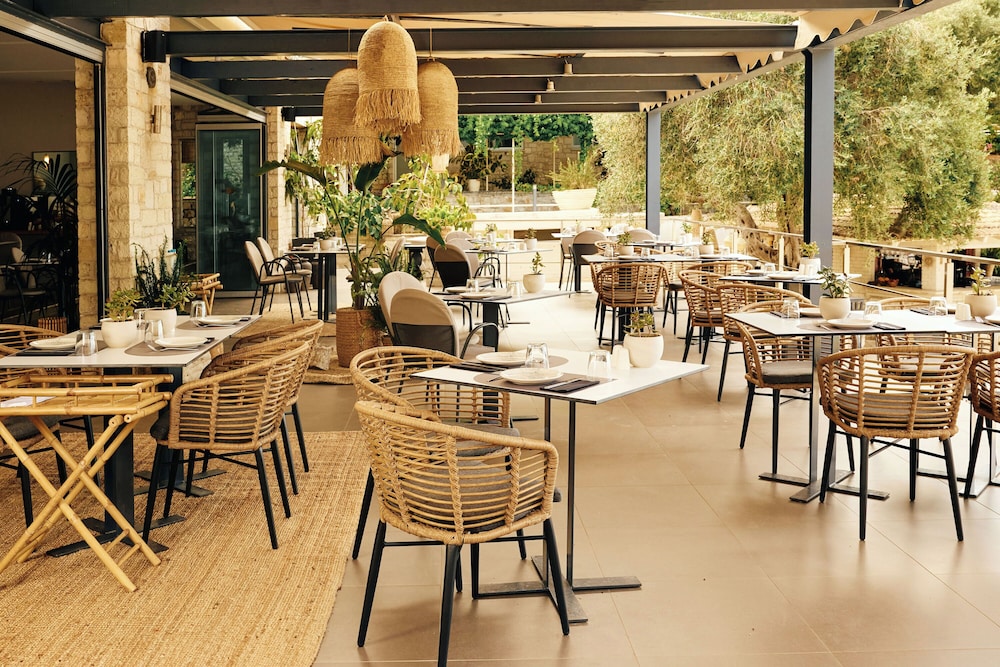 The hotel was nearly full yet at dinner there were only a handful of people. They are trying to posh up, for want of a better expression, Greek food. Don't! Keep it true like the packed restaurants in town. It's the authentic, simplicity of grilled fish, meats and classic Greek staples that customers want. The empty seats prove that. We ate there 3 nights, through circumstance. Each time they had items missing from the menu. Every night they had no bubbly of any kind and various wines missing. It became a standing joke as each time we ordered something the grumpy waiter would return and say they didn't have it. Crikey, he only had to speak to the chef and look in the fridge before service.