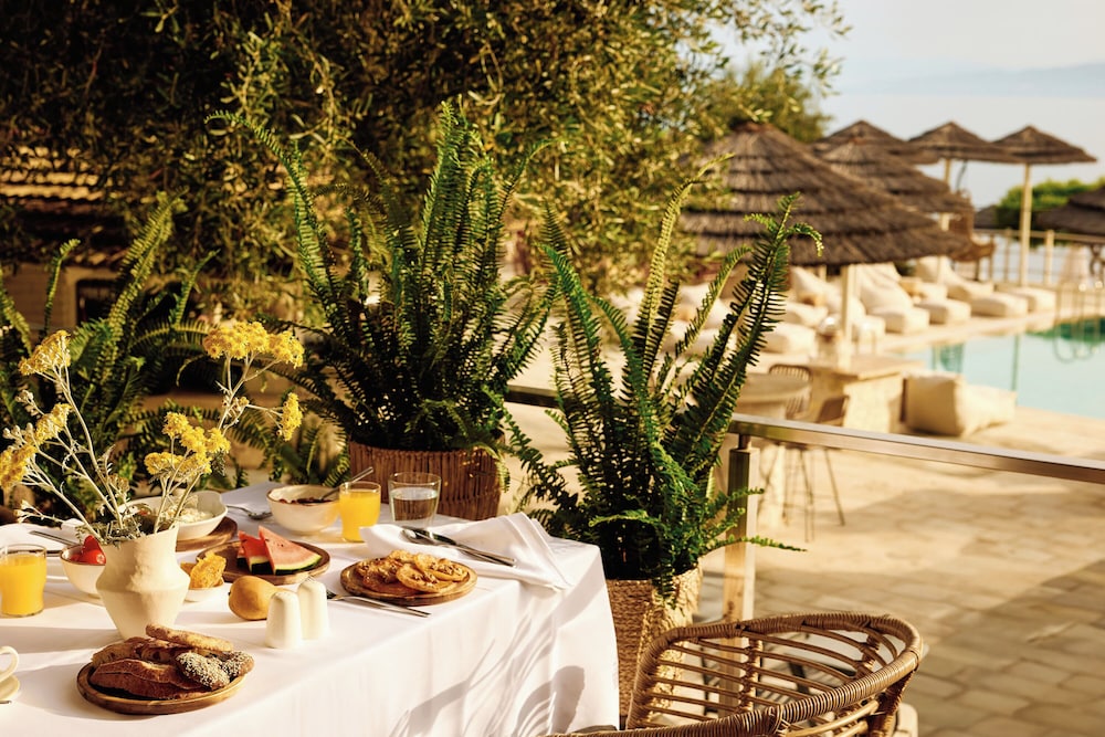 We had 10 days at this fantastic hotel. The restaurant and bar were both by the pool and beach and we enjoyed the fabulous Greek food and wine. Breakfast was great with a good choice. The service here was second to none. Access to these areas was via a number of steps but this didn’t deter us from enjoying the wonderful facilities and views. Our room was lovely, cleaned every day with fresh bottled water and towels. Thanks to the 2 guys who did this work. Reception staff were very helpful and went out of their way to making our holiday so enjoyable. The hotel is within easy walking distance to the town which is so beautiful. There are numerous restaurants, bars and shops and if you have watched ‘ Maestro In Blue ‘ on Netflix you will see some of the sites here and elsewhere on the Island. They were just starting to film series4 while we were there. A short ferry crossing from Corfu will get you there within an hour. Also a boat trip around the Island and to Antipaxos is a must…..so beautiful and lots to see. All in all, a truly wonderful holiday.