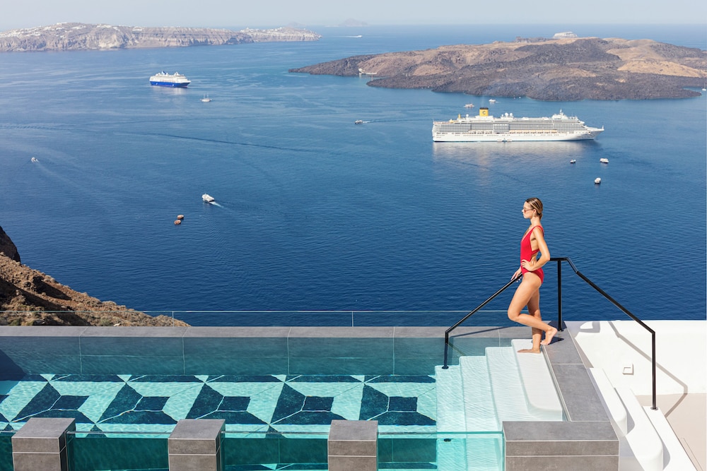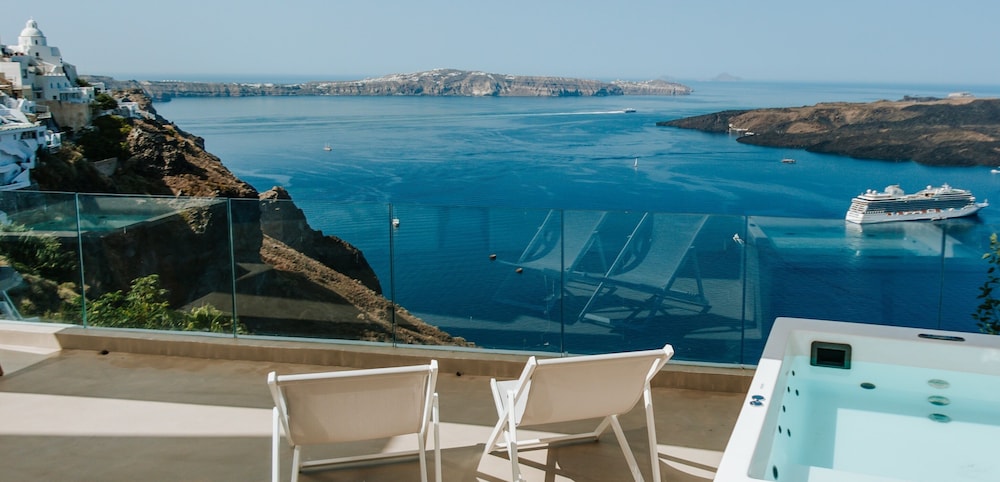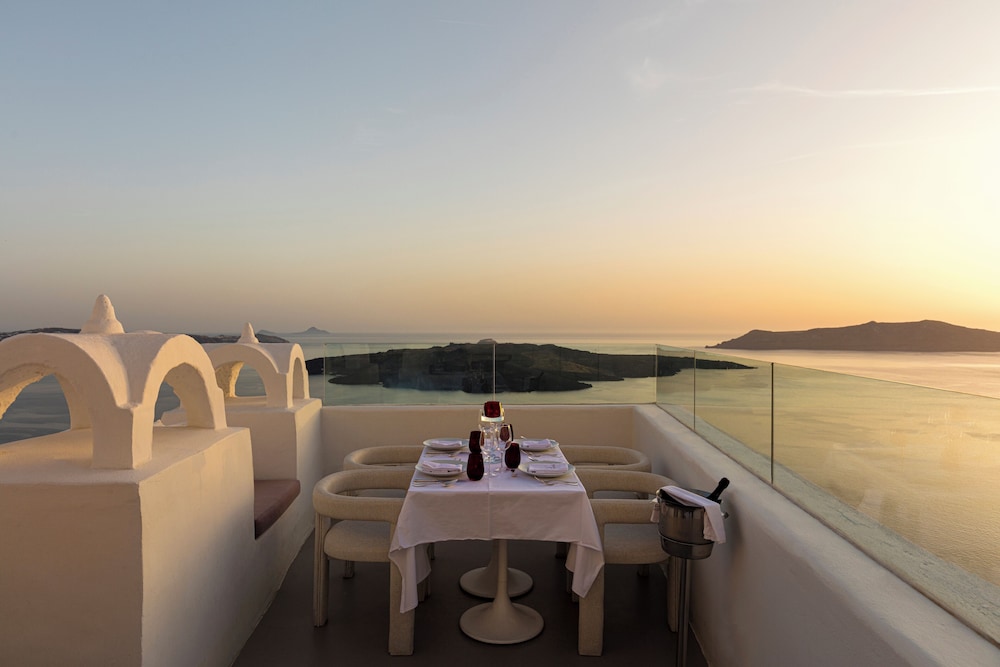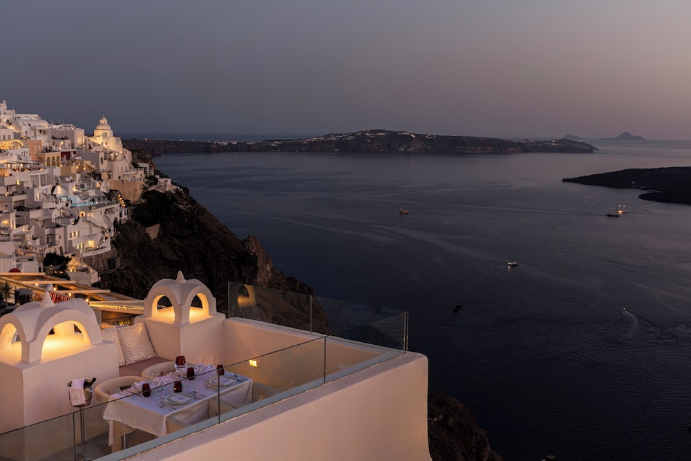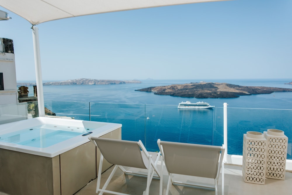 Hotel situado no coração de Fira, com vista de tirar o ar pro de Egeu, com atendimento excepcional, fomos extremamente acolhidos desde checkin, com receptividade com boas vindas com nossos drinks favoritos, estrutura e piscina fantástica, e acomodação também super aconchegante. Todos os serviços foram prestados com maestria e o hotel oferece um restaurante maravilhoso com drinks e musica que ornam e proporcionou nossa experiência ainda mais repleta e incrível.