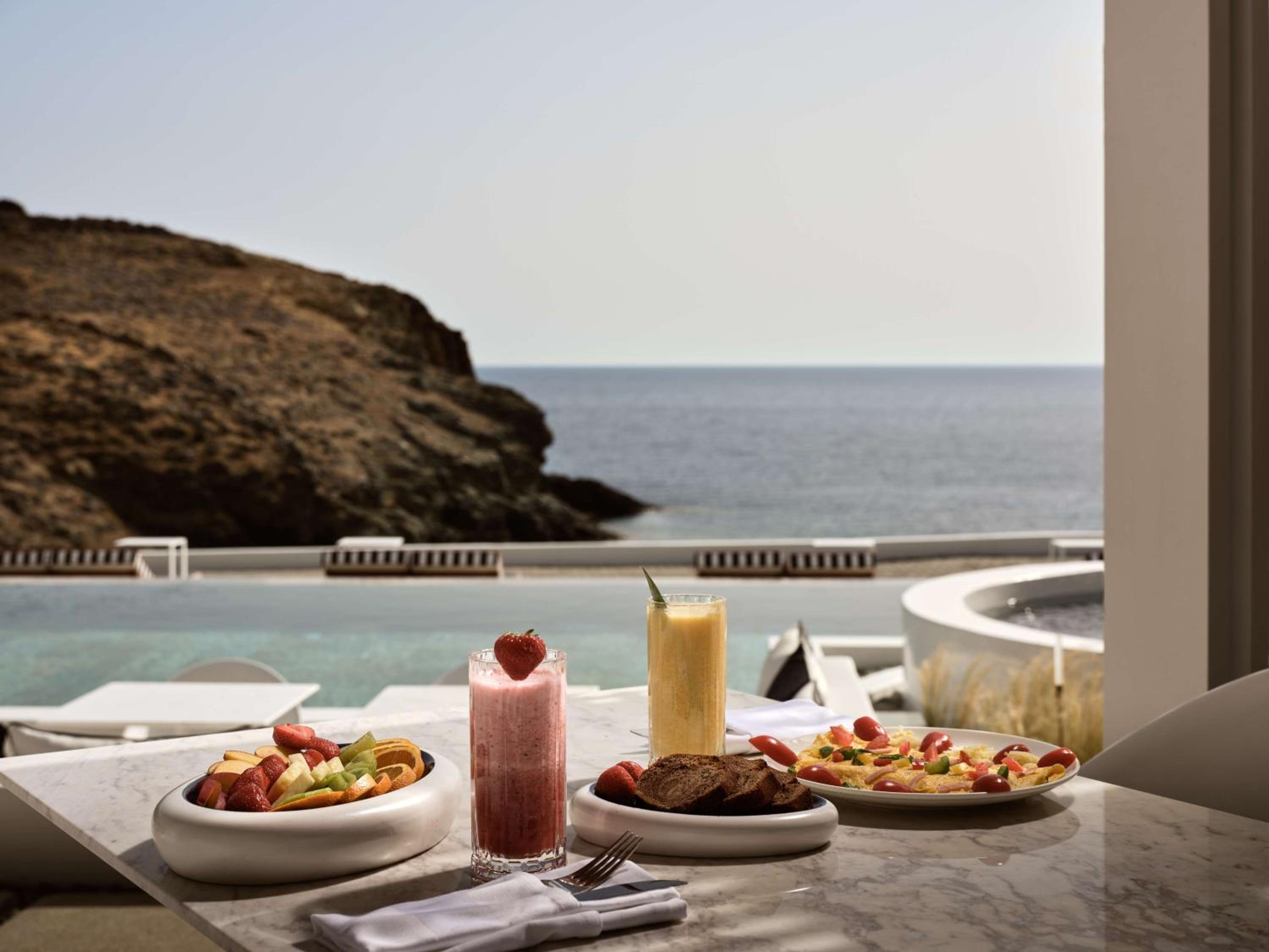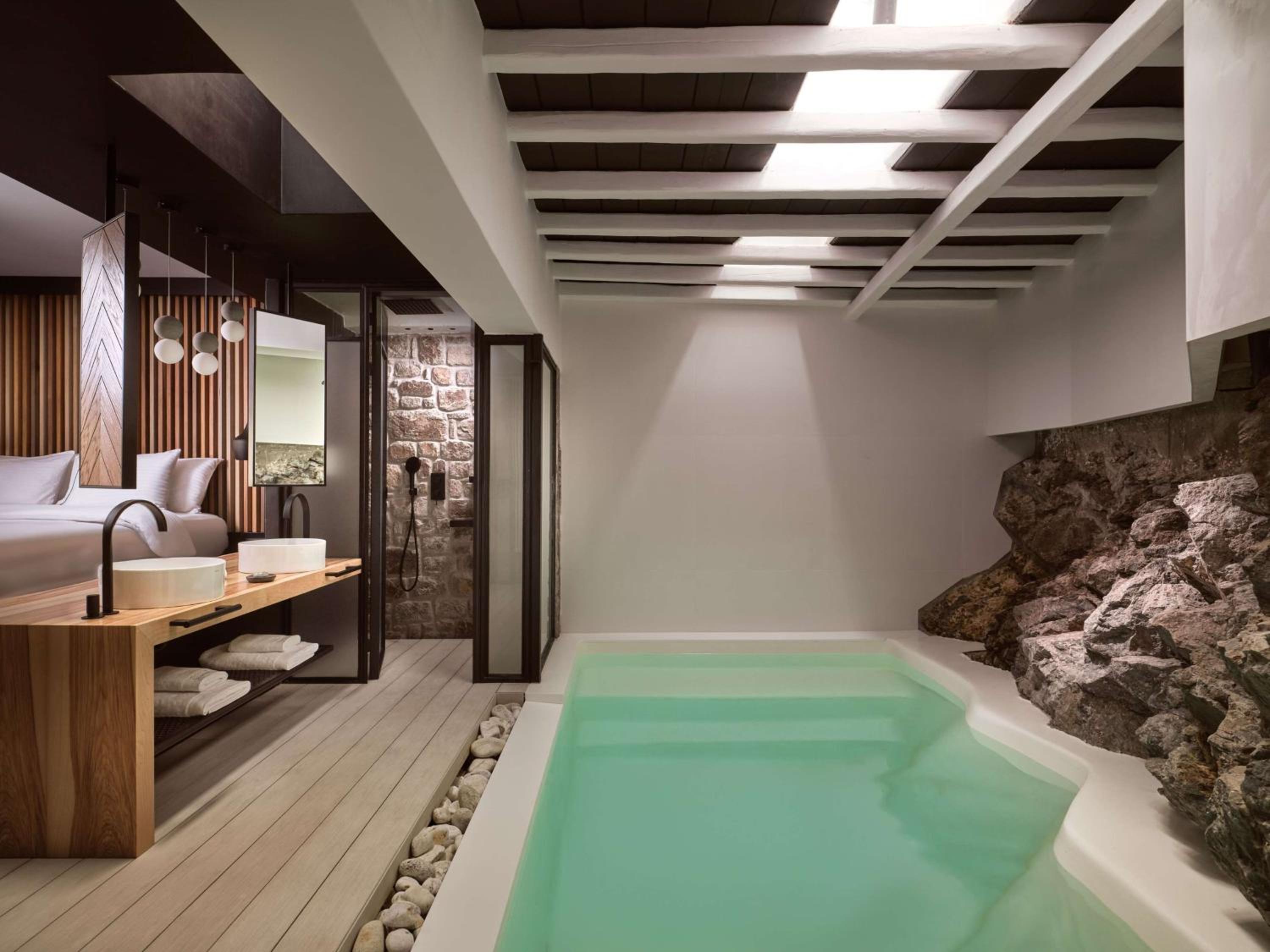 Experience unmatched luxury with an outdoor swimming pool, private beach area, indoor pool, sauna, and fitness centre at Semeli Coast Mykonos Curio Collection by Hilton.