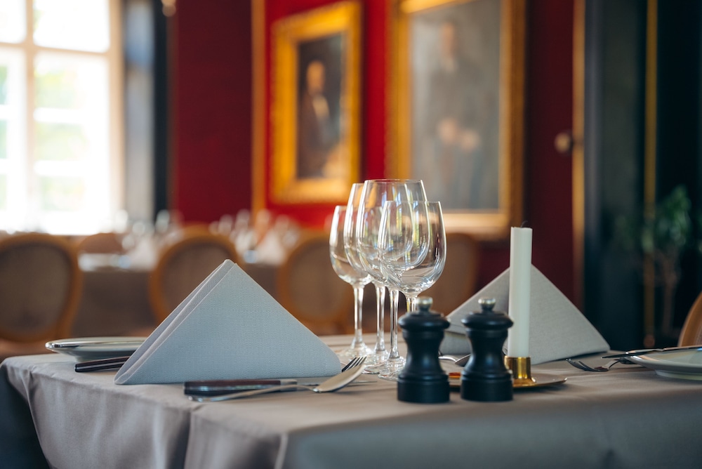 Vi havde opgraderet vores værelse til et større end standard. På værelset var der bogstavligt kun en seng med sengebord og intet andet! Der var ikke en gang en stol til at sidde på. Det er endvidere det første hotel jeg har været på uden et fjernsyn på værelset. Vi havde booket 2 overnatninger, men der blev ikke skiftet håndklæder til trods for det ikke var muligt at hænge sine brugte til tørre nogen steder. Værelset var meget lydt, da døren til gangen lydmæssigt lige så godt kunne ikke have været der. Vi blev derfor vækket hver gang hoveddøren blev åbnet og der blev talt på gangen, selv om folk ikke var højtrøstede. Morgenmaden var ok dog uden den store kulinariske oplevelse, især rundstykkerne virkede som bake-off, bestemt ikke bager rundstykker som burde kunne forventes på et sted som dette. Restauranten serverede gode retter, men de retfærdiggjorde ikke den høje pris. Personalets optræden var helt i top, det kunne ikke gøres bedre. Hovedbygningen var bestemt en stor oplevelse med hensyntagen til det historiske perspektiv.