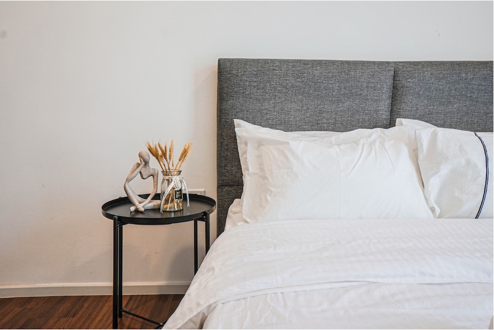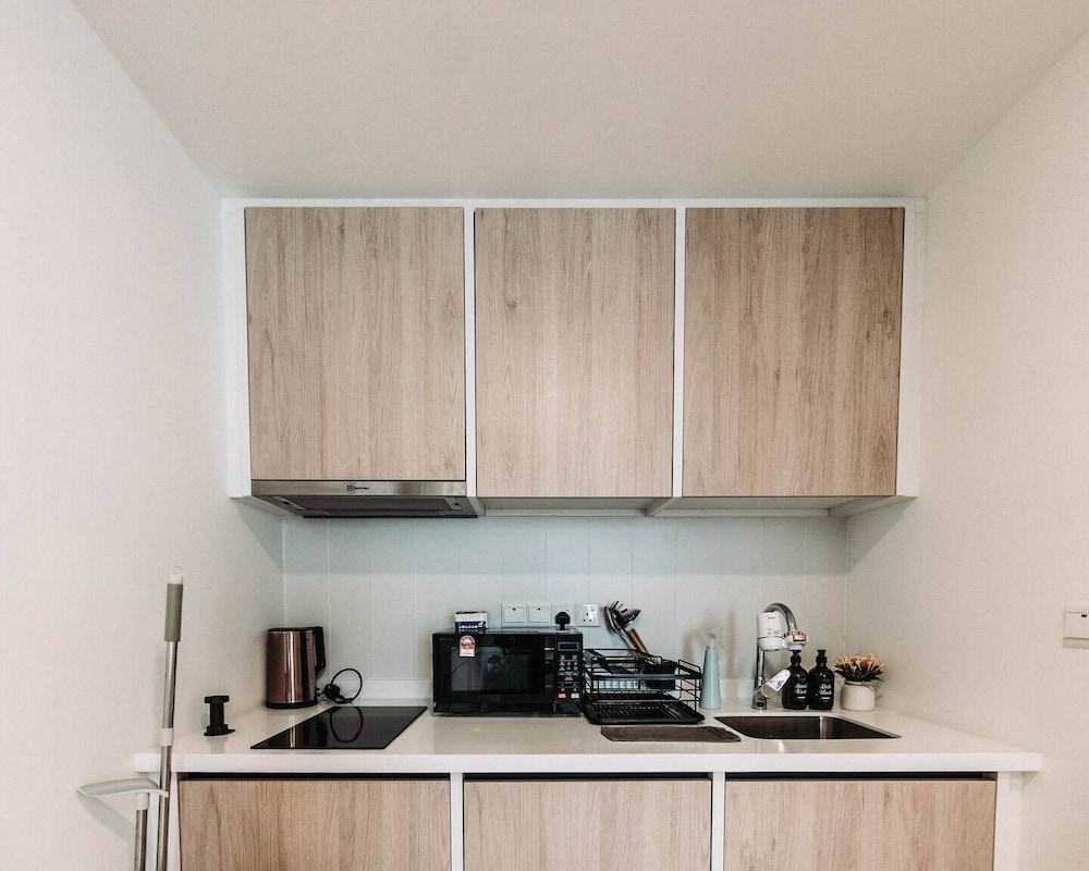 We stayed for two weeks and had a 3 bedroom apartment. The apartment itself was a lot smaller than the photo suggested but that was not really the biggest issue. We had to boil water to wash our dishes in the kitchen as there was no hot water to the kitchen sink. Bare minimum for kitchen items. Found a small burnt out saucepan under the kitchen sink. Also no hot water to the bathroom sinks. Very poor quality furniture. Our bed broke, twice. We had service to the apartment 1 time during the 2 week stay. If i had not queried when it was going to be serviced, I do not believe it would have been. Bathrooms dirty, mouldy grout around the shower and sinks. Had to use the 1 shower for all six people as the smaller bathroom's hot water lasted for only a few minutes. Had 1 towel each to use per week so had to wash our own towels. Also purchased out own toilet paper and in bags as only 1 roll of paper per toilet and 1 bin bag. Electronic mechanism to main door kept falling off. Pool rules ridiculous. Not allower to swim if you were not completely covered up. Had to change into dry clothes before going back to apartment. No towels provided at the pool side, making very difficult as we already had just 1 towel per person. Fines were threatened if people got into the lift with wet feet, which although it was fair enough, it was not adhered to by all. We have been coming to KL regularly for years and this has been by far the worst property we have stayed in. Never again!