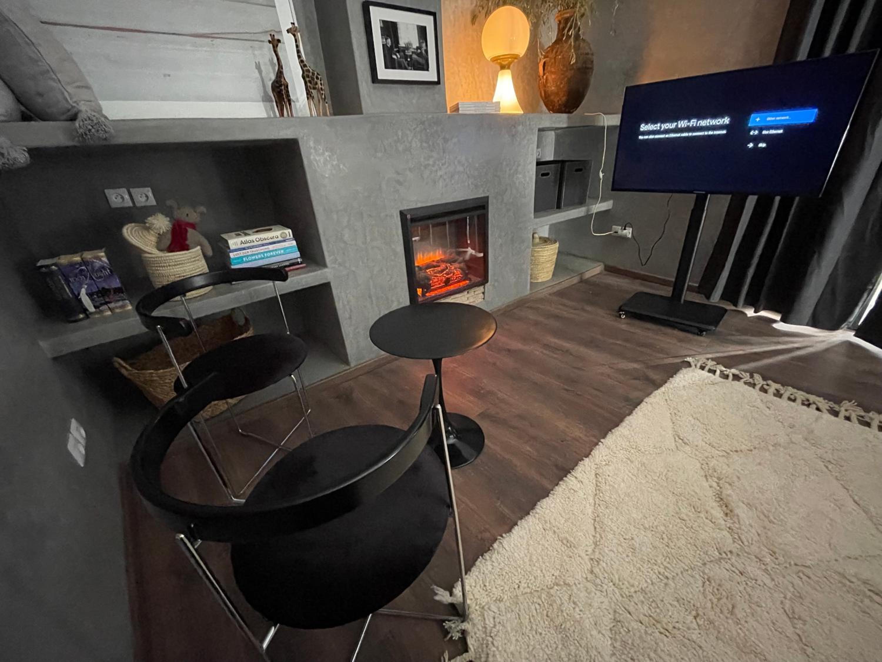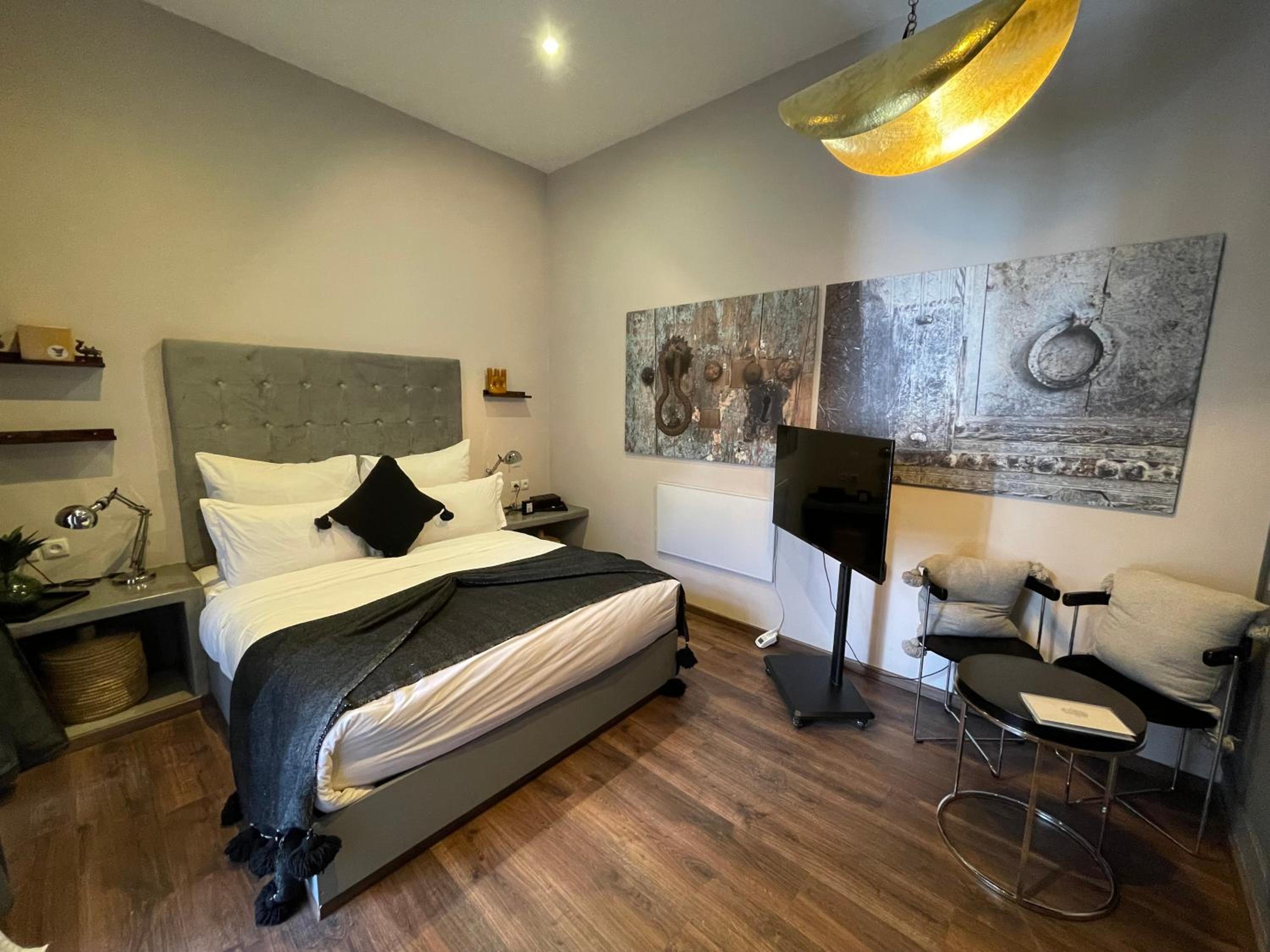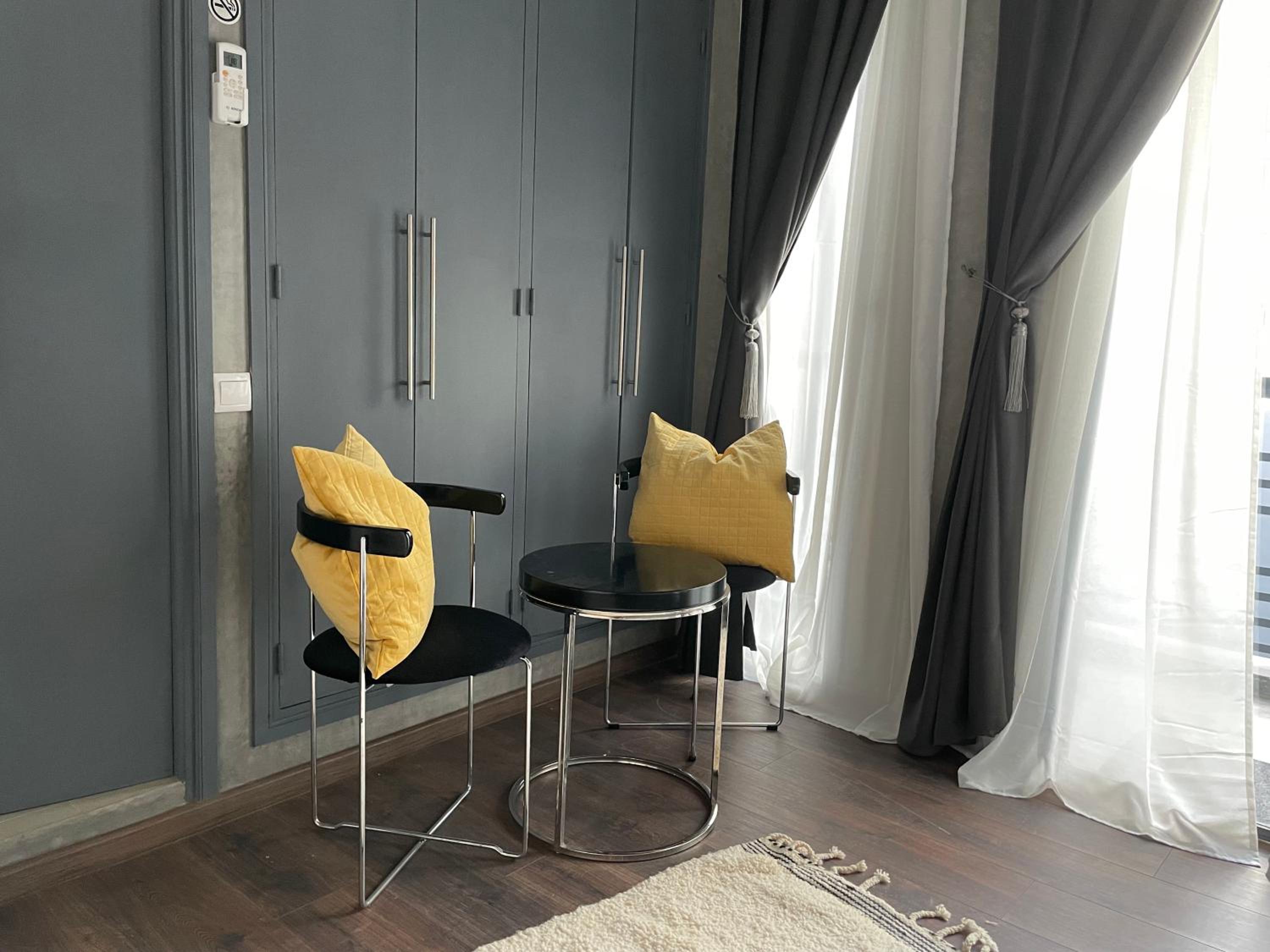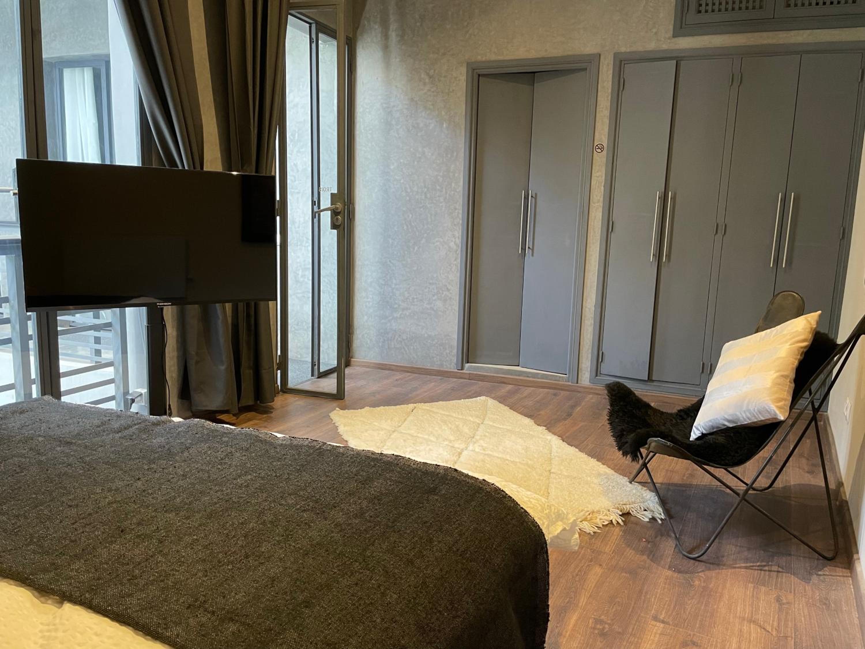 YVES Marrakech offers air-conditioned rooms with modern amenities including a flat-screen TV and a safety deposit box. The comfortable seating area provides a relaxing space for guests to unwind after a day of exploring the city.