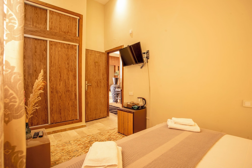 The riad has a beautful layout. There are two open sanctums for gathering and eating, and the rooms are really clean and have every amenity a traveler needs. A/C, mini fridge, comfortable bed, full bath and walk in shower. Would love to stay again soon