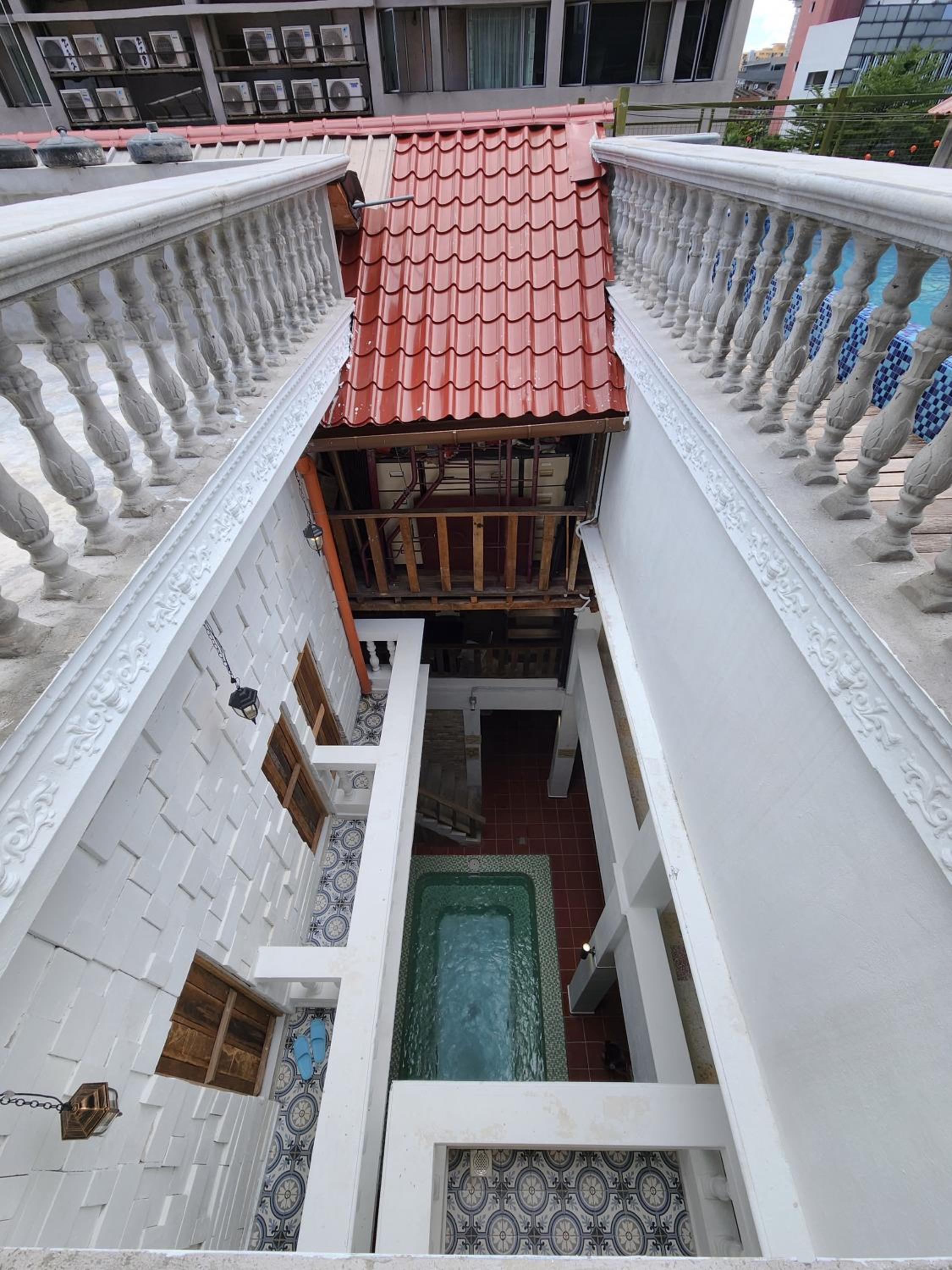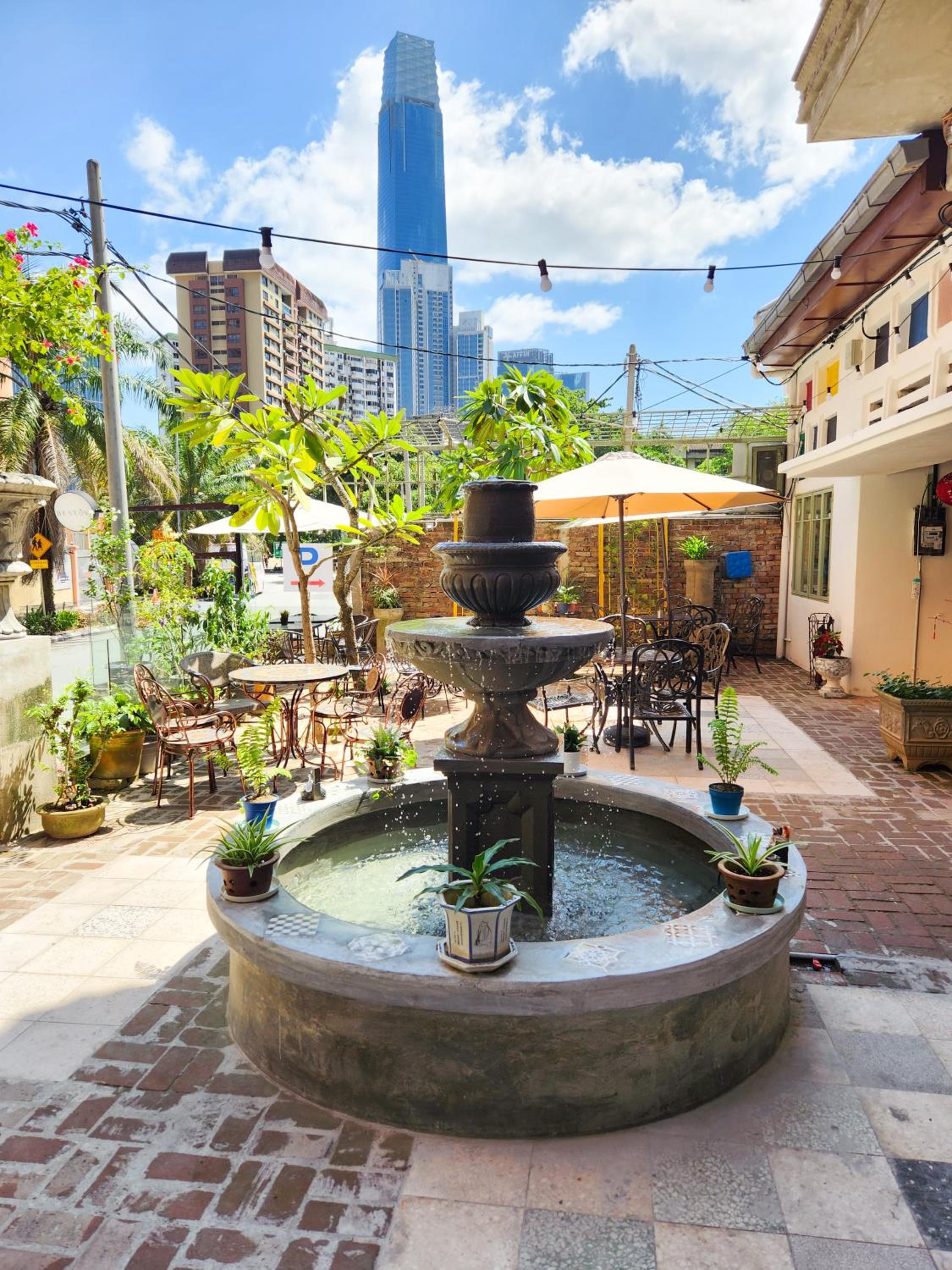 There's a lovely rooftop with a pool, and a pool downstairs too. The garden restaurant is excellent and has indoor tables as well, and it's open all day. Both the terrace and the garden restaurant have both covered and uncovered sitting areas. Cold drinks and noodles are also for sale in the reception. There is a free hot and cold water dispenser, fridge and microwave, if BYO is your thing. Excellent location near the monorail and 7-eleven. Very friendly staff. Excellent WiFi, and it DOES work everywhere, but there are different access points, so you just have to log into the right one. The DSA's are very agreeable here. I liked this place so much that I extended my stay.