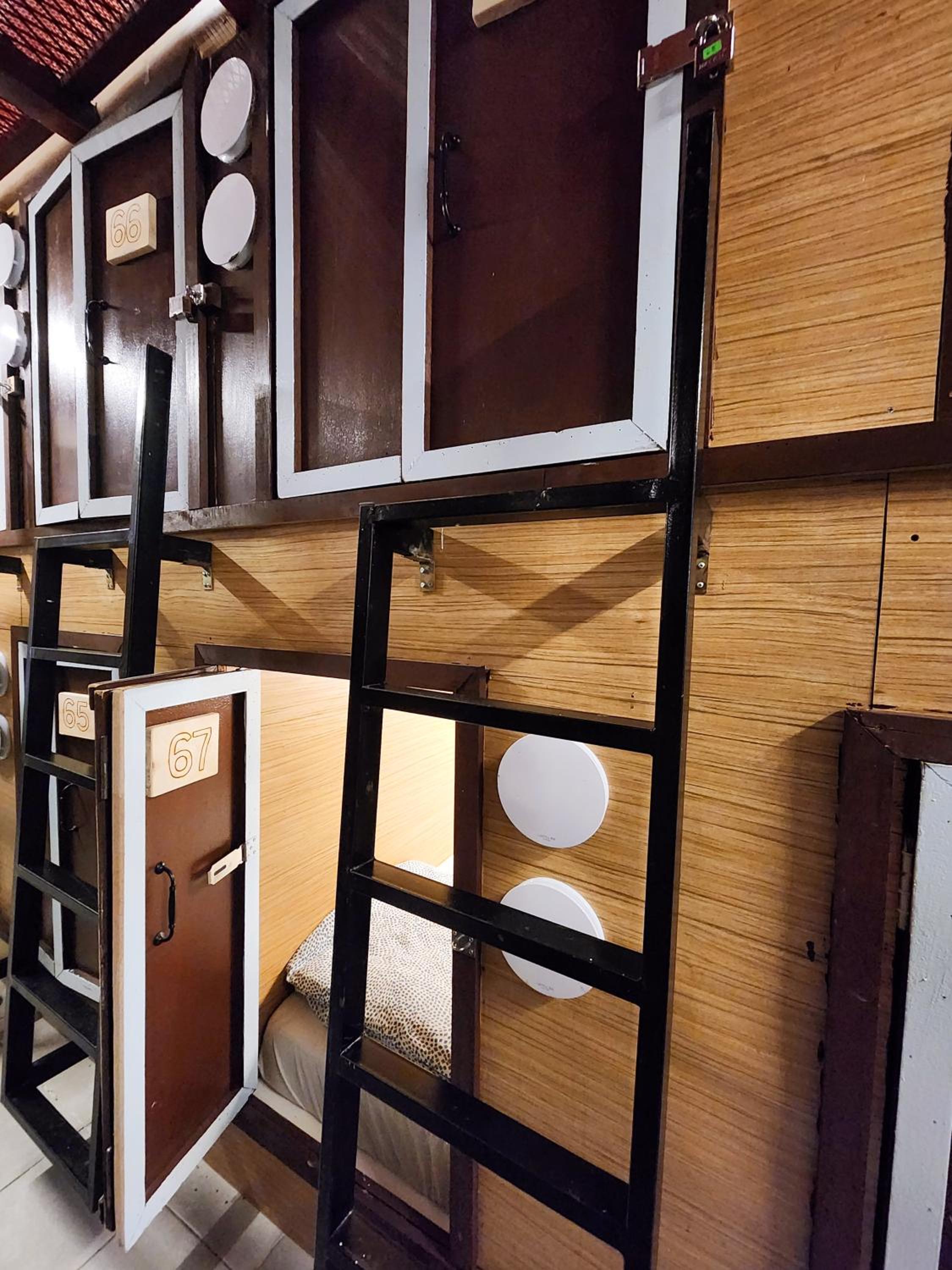 This place is so cool! It's definitely a very unique place to stay. One of a kind. It's so pretty everywhere. That fountain in the garden was the cherry on top of the cake. It lit up at night. I had a single room with an attached bathroom and a second floor bed. It was so much better than a dormitory bed or capsule. It's worth noting that there is no wash basin in the room, it's in the corridor, which is not really a problem. The key to success here is to book a room type that suits you, as there are so many different rooms. Don't book rooms with steps up to the bed if you don't like steps!