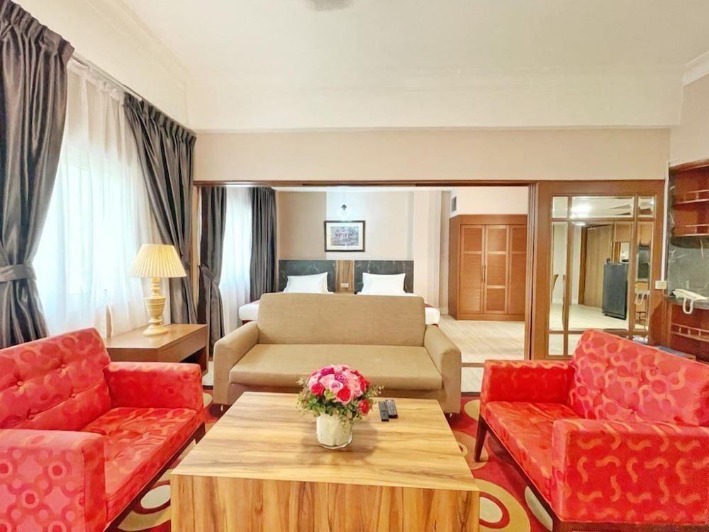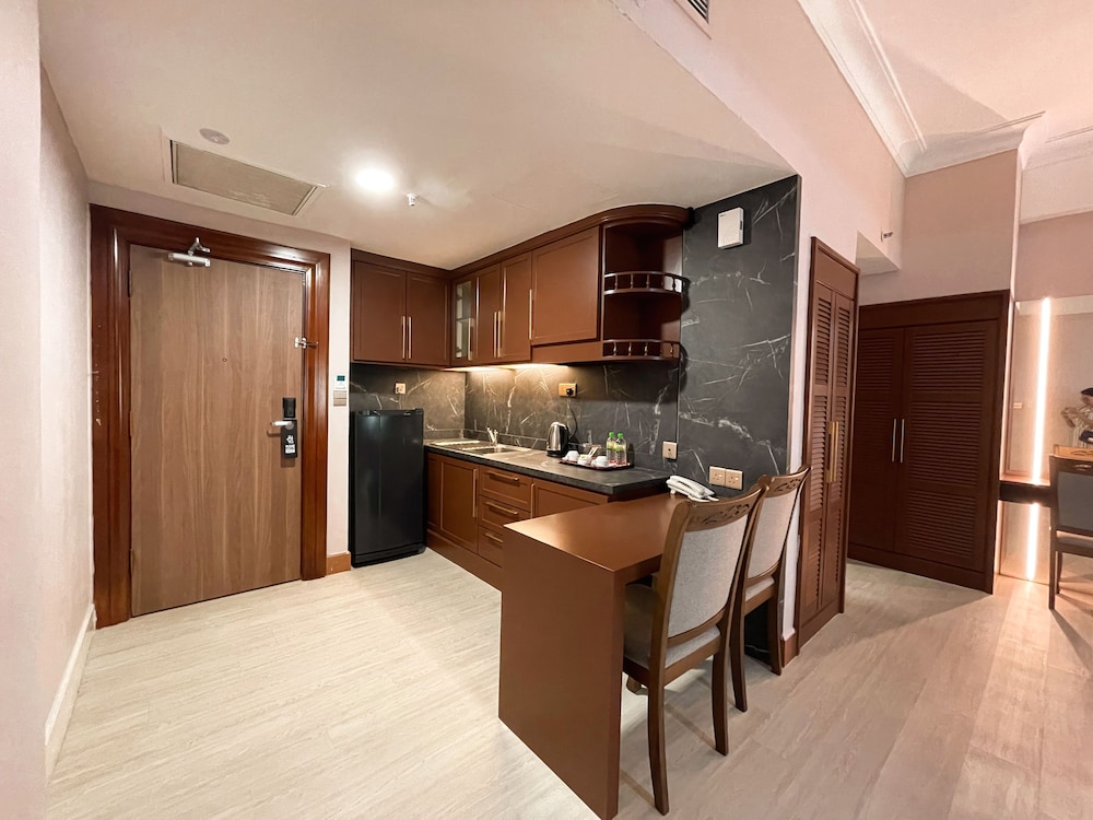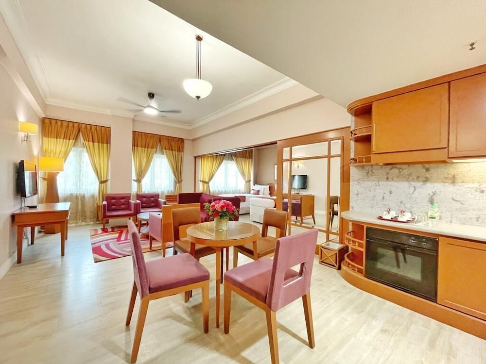 I booked the Executive Studio, 1 King Bed, City View. However I believe I got their Studio King Suite instead. The reception staff insisted that that’s the room I booked. I was already exhausted and couldn’t bother to pursue for just a 1 night stay. The room’s ok, spacious, comfortable bed and good bathroom, microwave brought to your room for free when requested. The furnitures looks old and outdated like 70s, the rug is dirty, the bathroom sink tap is wobbly. I did like the pool with waterslides (looks quite under maintained). The whole hotel ambience gives outdated and makes you feel if it and the facilities are actually safe?