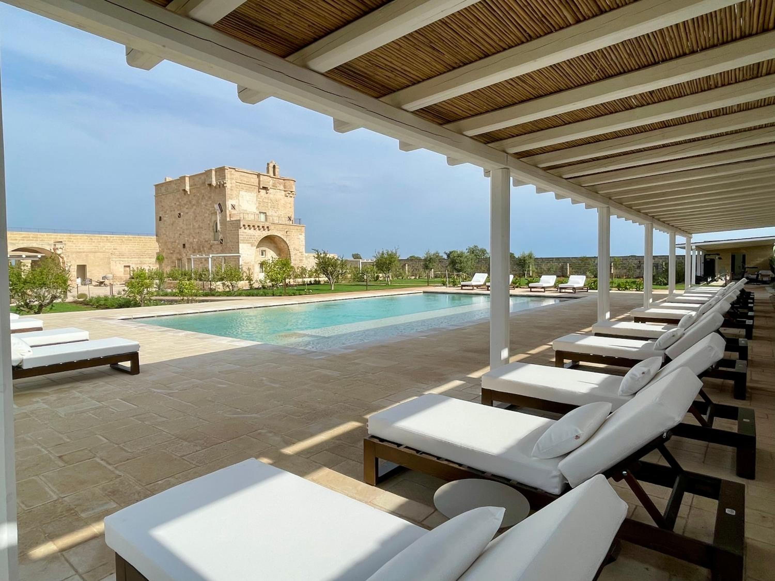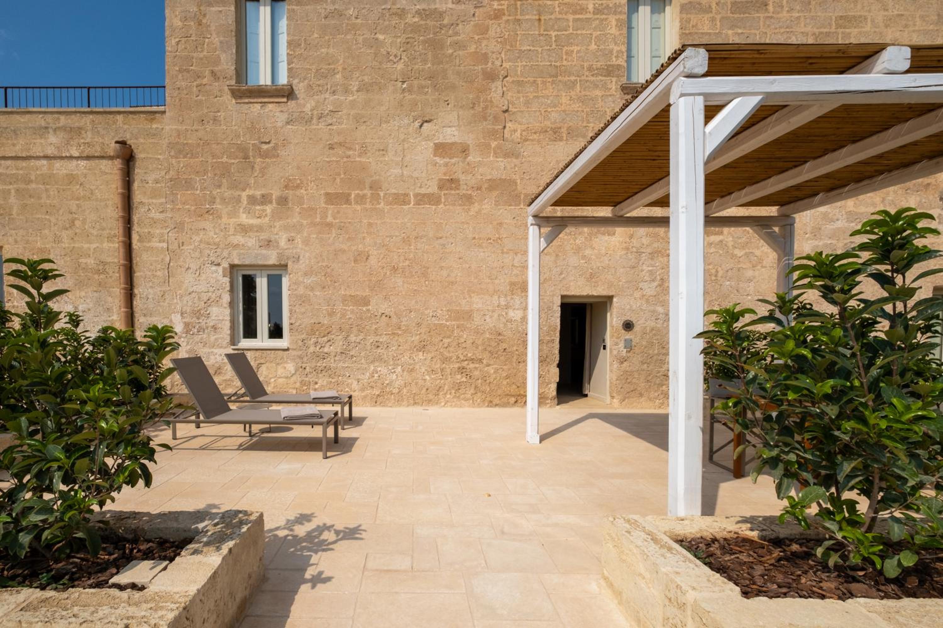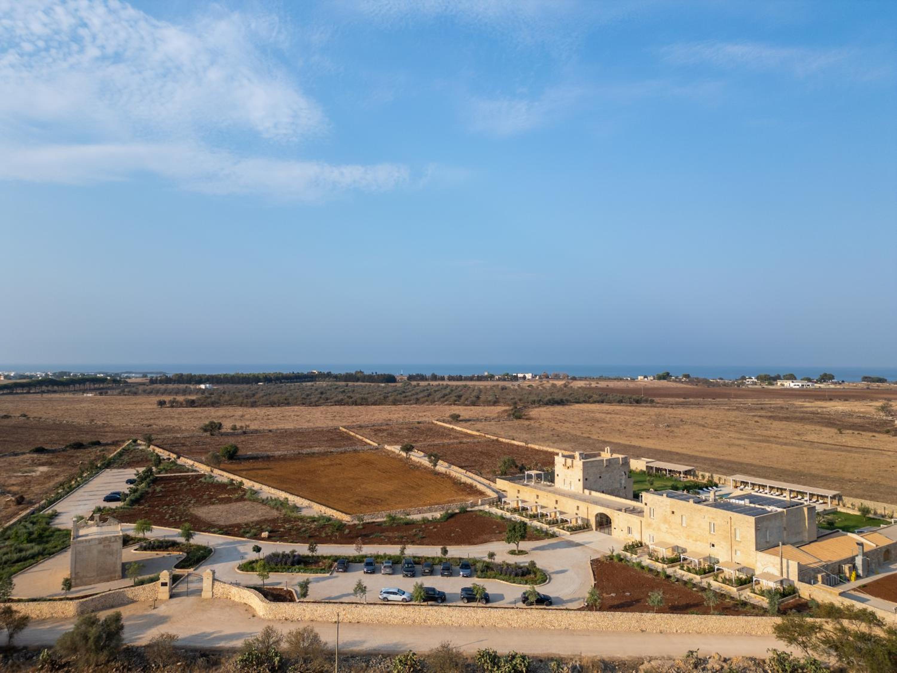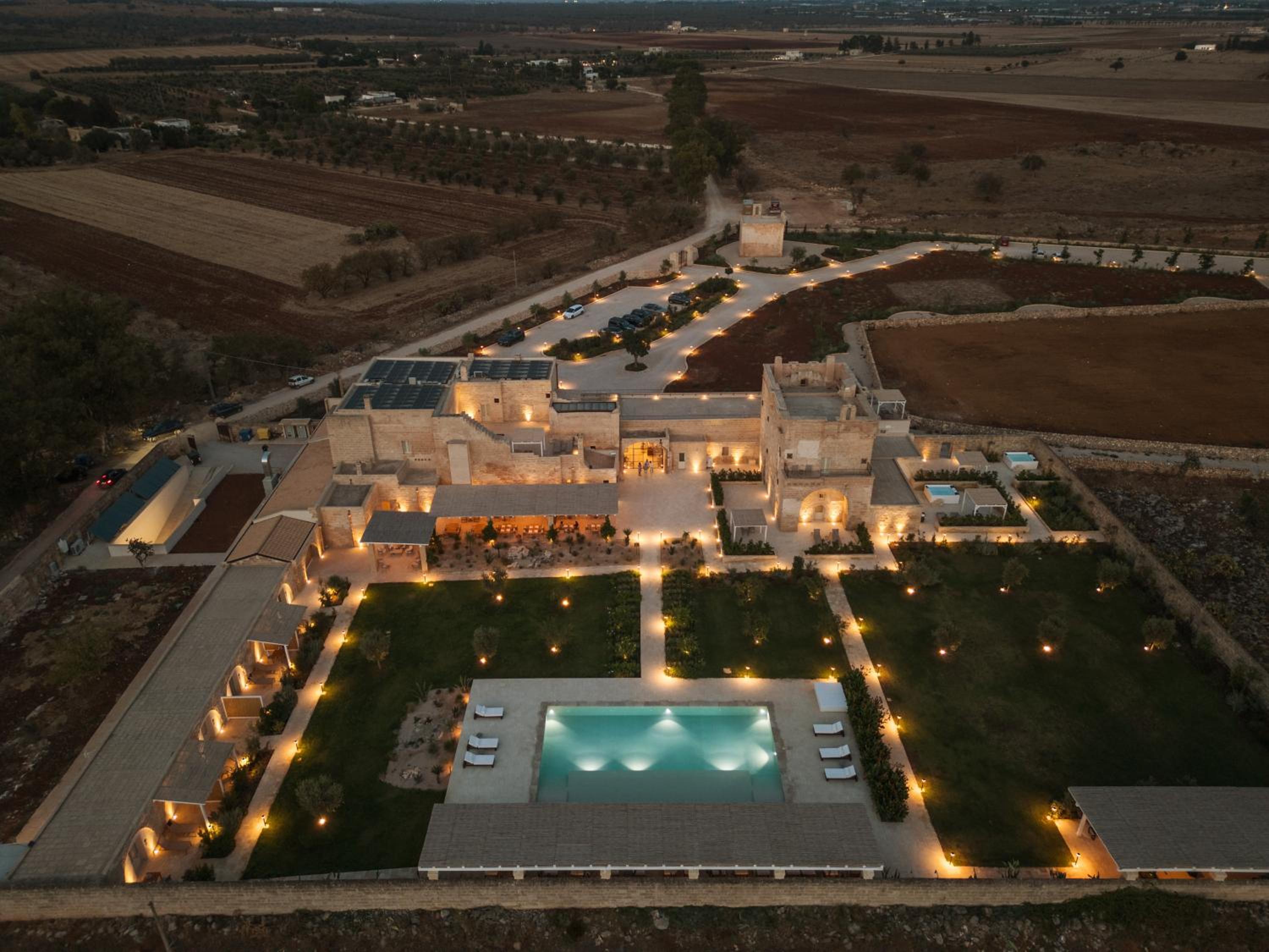 Masseria di lusso magistralmente restaurata che trasmette una naturale sensazione di relax e serenità vicina alle più belle spiagge del Salento. Belle e grandi le camere e colazione molto completa e soddisfacente. Buono anche il ristorante e bella piscina.