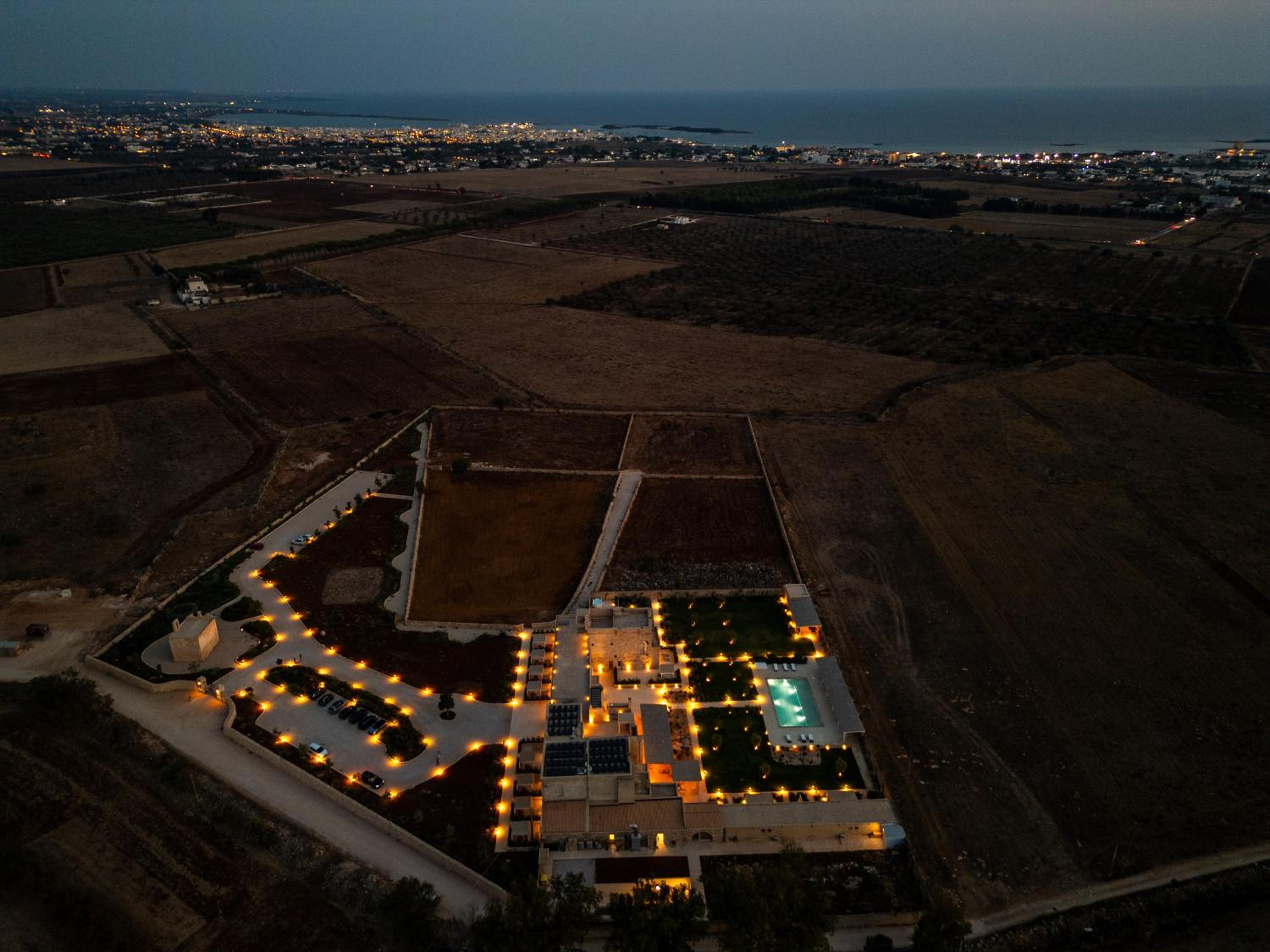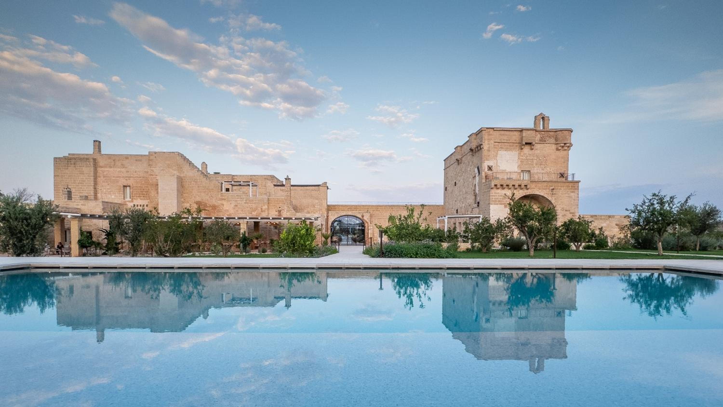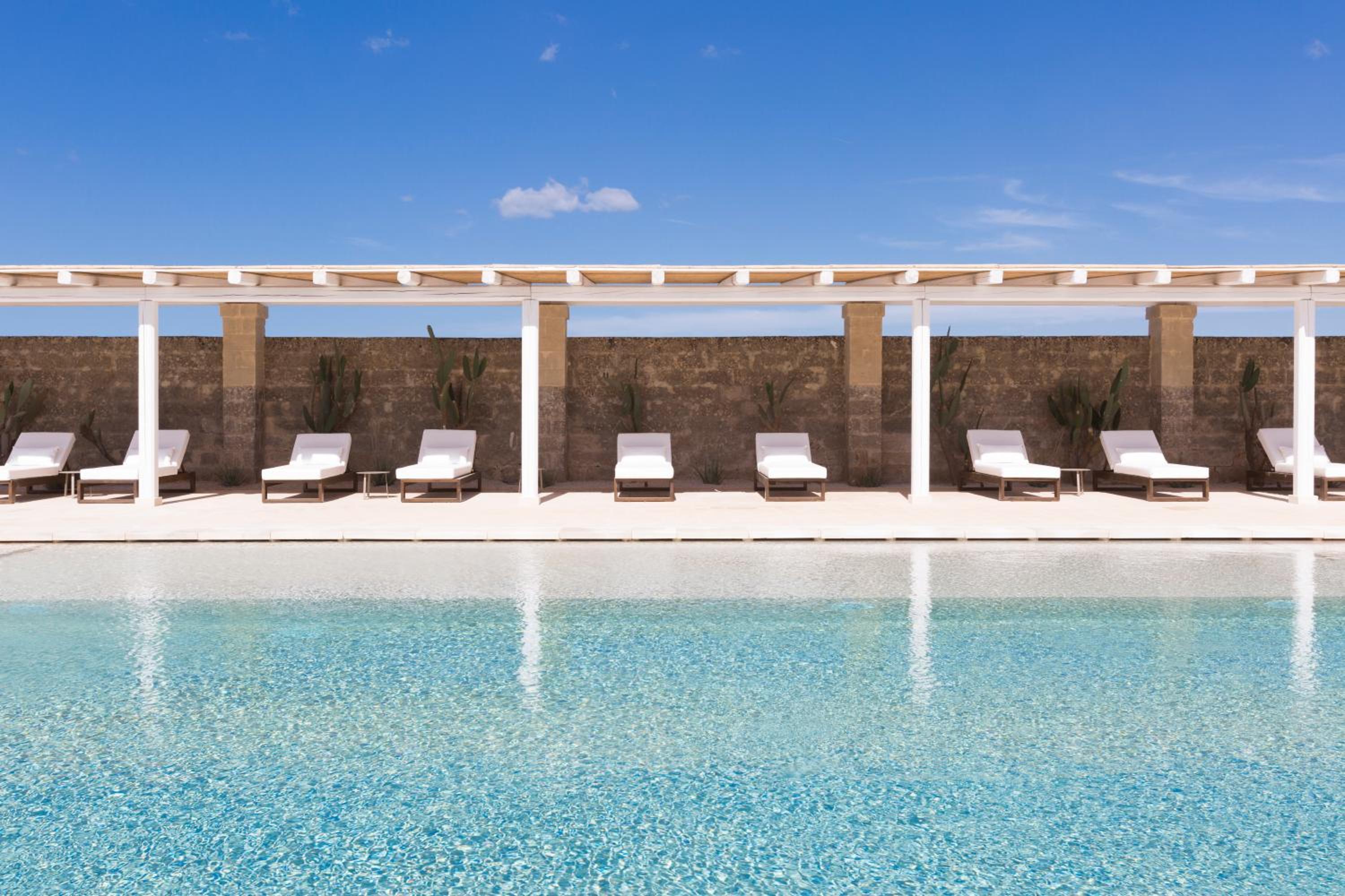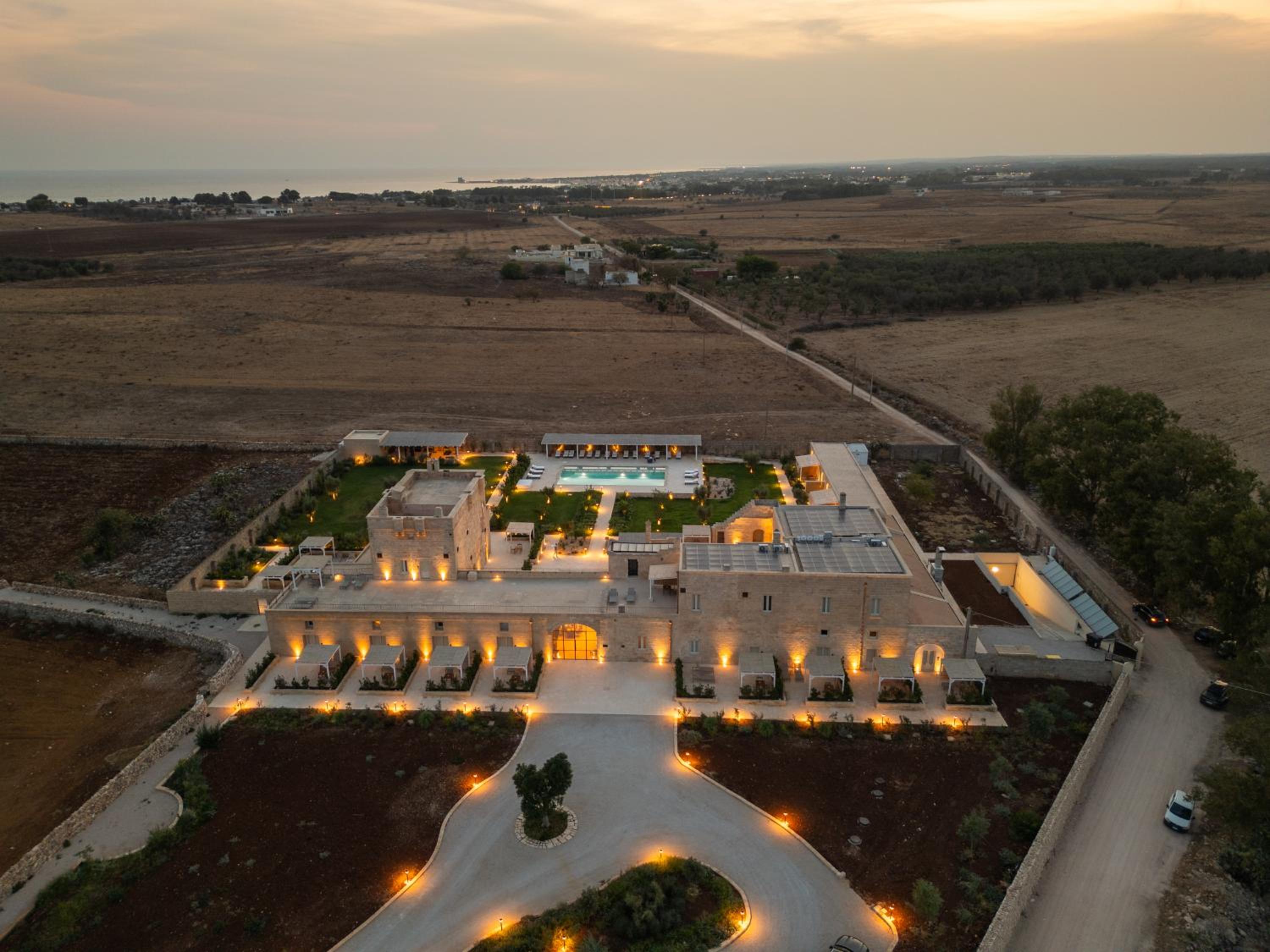 Masseria di lusso magistralmente restaurata che trasmette una naturale sensazione di relax e serenità vicina alle più belle spiagge del Salento. Belle e grandi le camere e colazione molto completa e soddisfacente. Buono anche il ristorante e bella piscina.