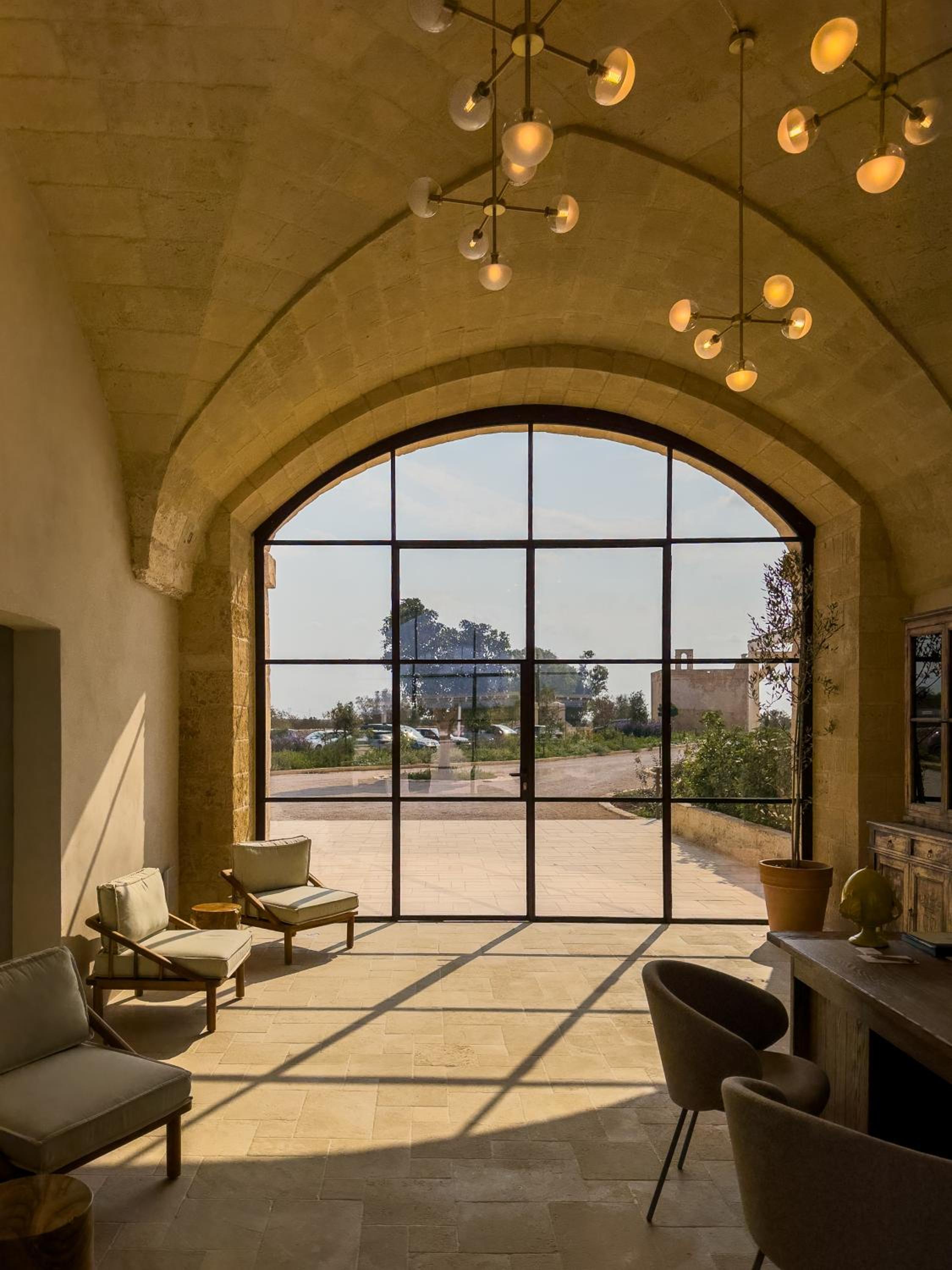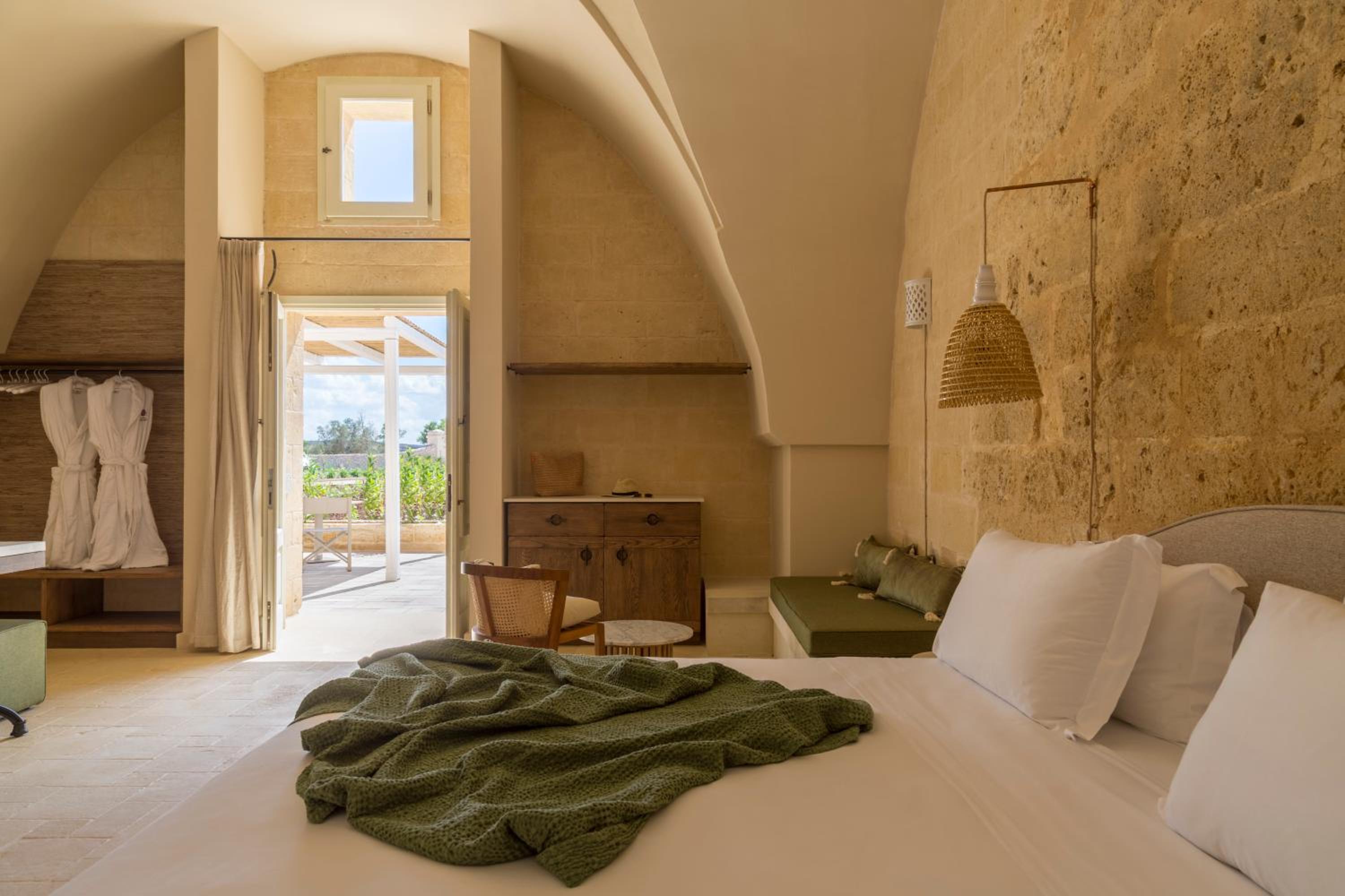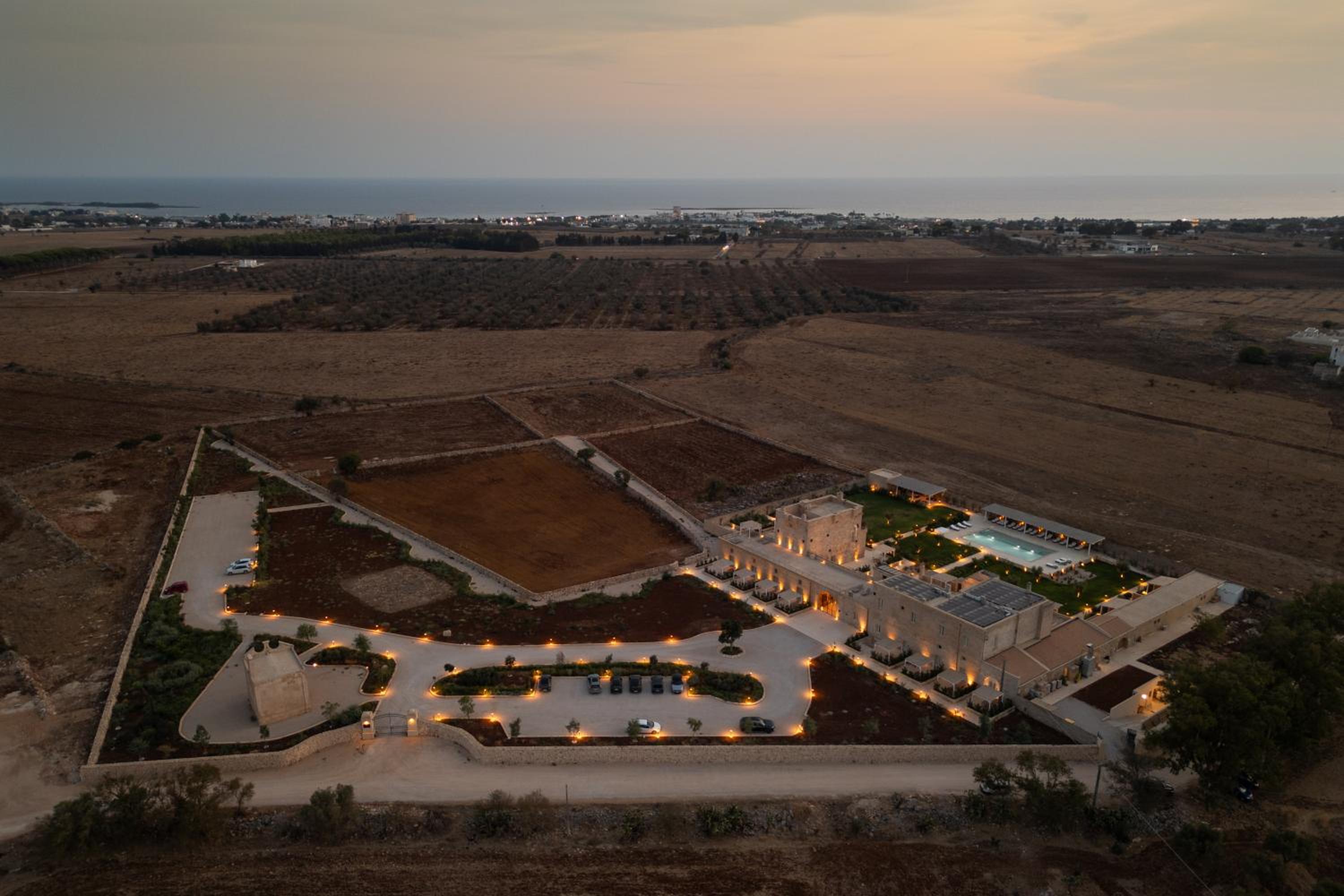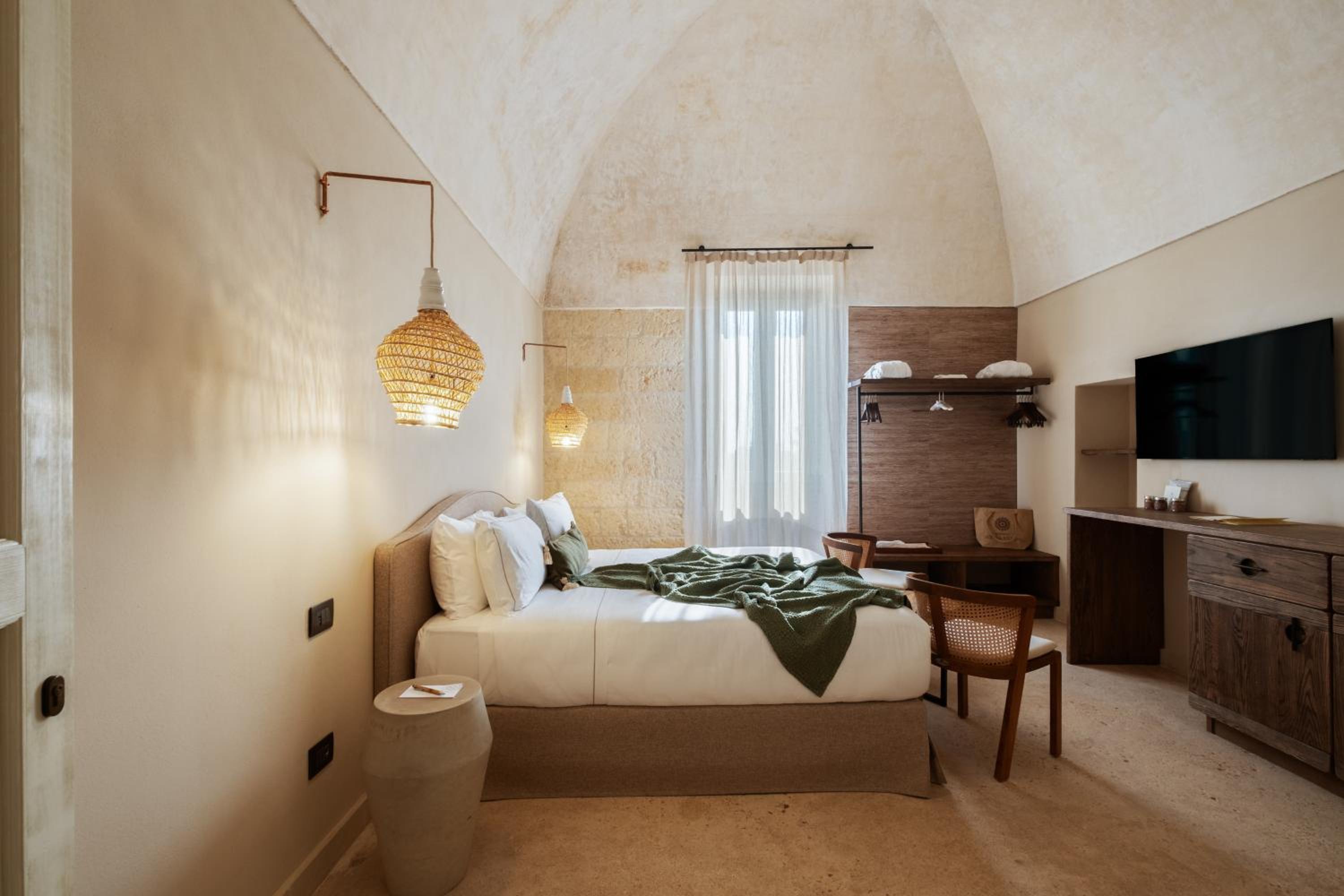 Masseria di lusso magistralmente restaurata che trasmette una naturale sensazione di relax e serenità vicina alle più belle spiagge del Salento. Belle e grandi le camere e colazione molto completa e soddisfacente. Buono anche il ristorante e bella piscina.