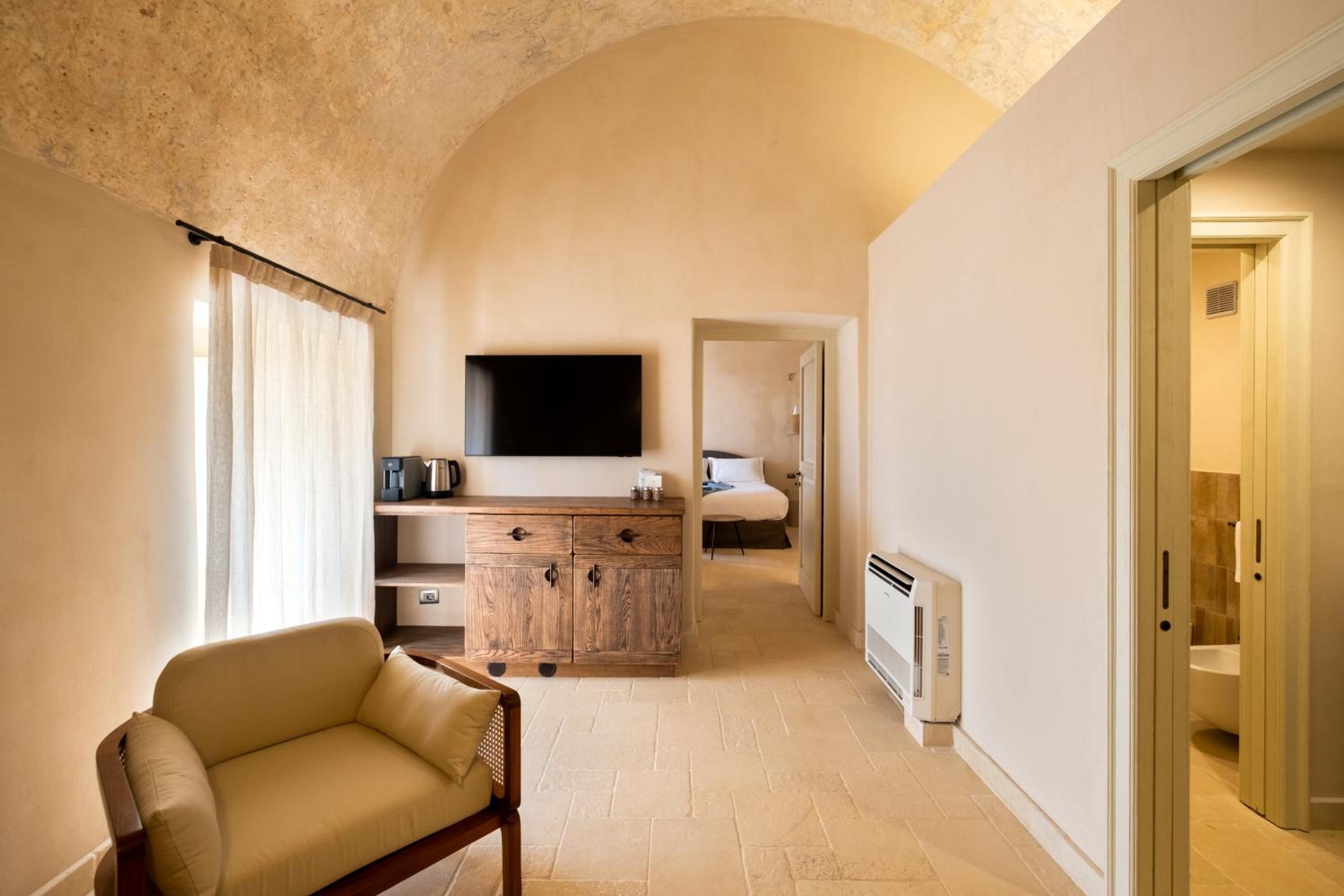 Super schöne Masseria, idyllisch etwas ausserhalb von Nardo / Veglie gelegen, aber mit dem Auto super erreichbar. Sehr freundliche Mitarbeiter, das Wohl des Gastes steht an erster Stelle. Fantastisches Frühstück, tolles Essen am Abend im eigenen Restaurant. Vielleicht gar noch etwas ein Geheimtipp, da erst seit ca. 1 Jahr in Betrieb, daher auch die gesamte Anlage in perfektem Zustand. Sehr schöne Architektur, Zimmer sind top und stilvoll, einziger (kleiner) Kritikpunkt ist die nicht sehr schöne (weisse) Klimanlage, die unten an einer der Wände mitten im Zimmer steht. Warum hat der Architekt bei diesem Detail plötzlich seine ansonsten hervorragende Arbeit eingestellt?😉