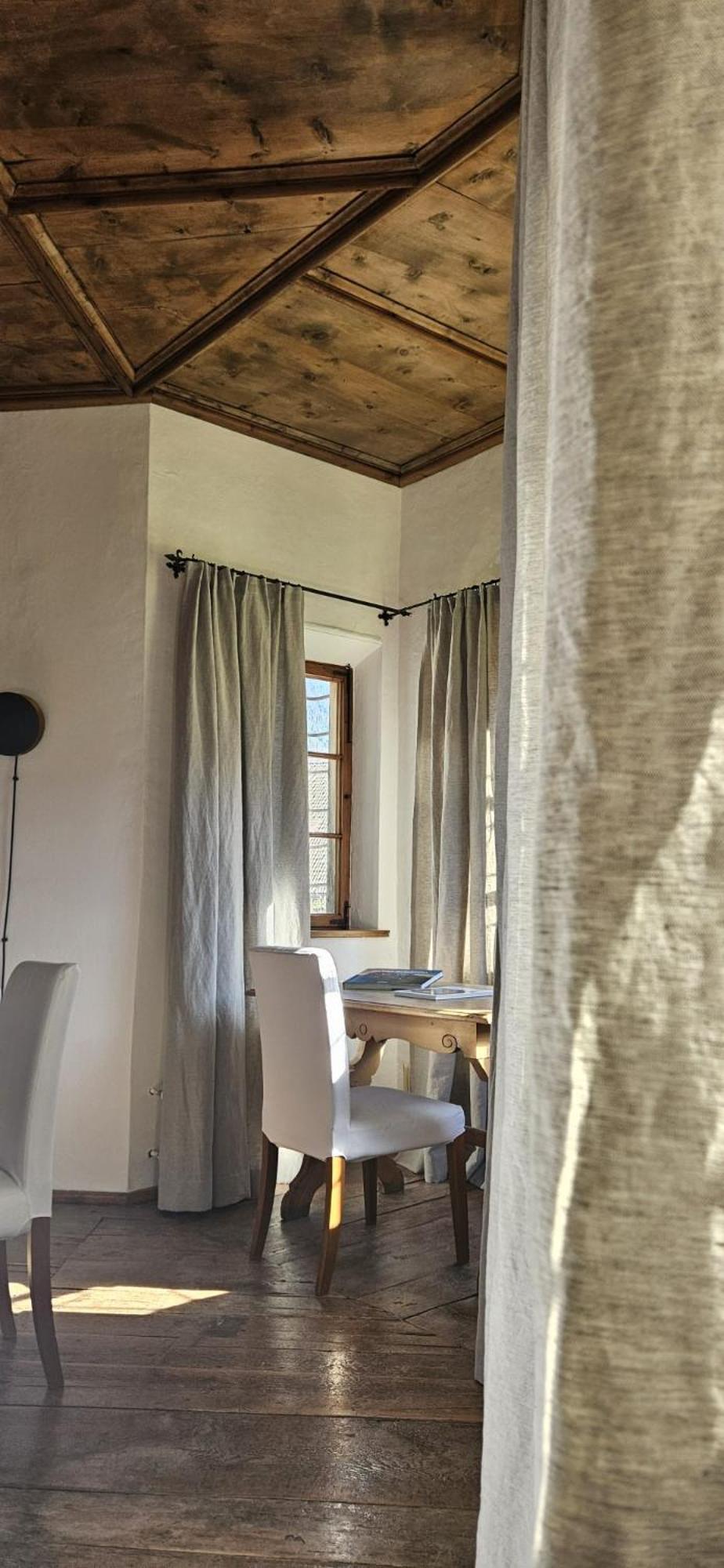 Built in the 1500’s this place has been modernized for comfort. Beautiful remote area. Wonderful staff running the place. Great views! Quaint little bar on the first floor that offers cocktails and meats and cheeses. Very comfortable large king room. There is a library where one can relax and read or play games.Breakfast was very European with eggs cooked to order. Keep in mind there are stairs and no lift to keep the history alive.This place will forever be imbedded in my heart.