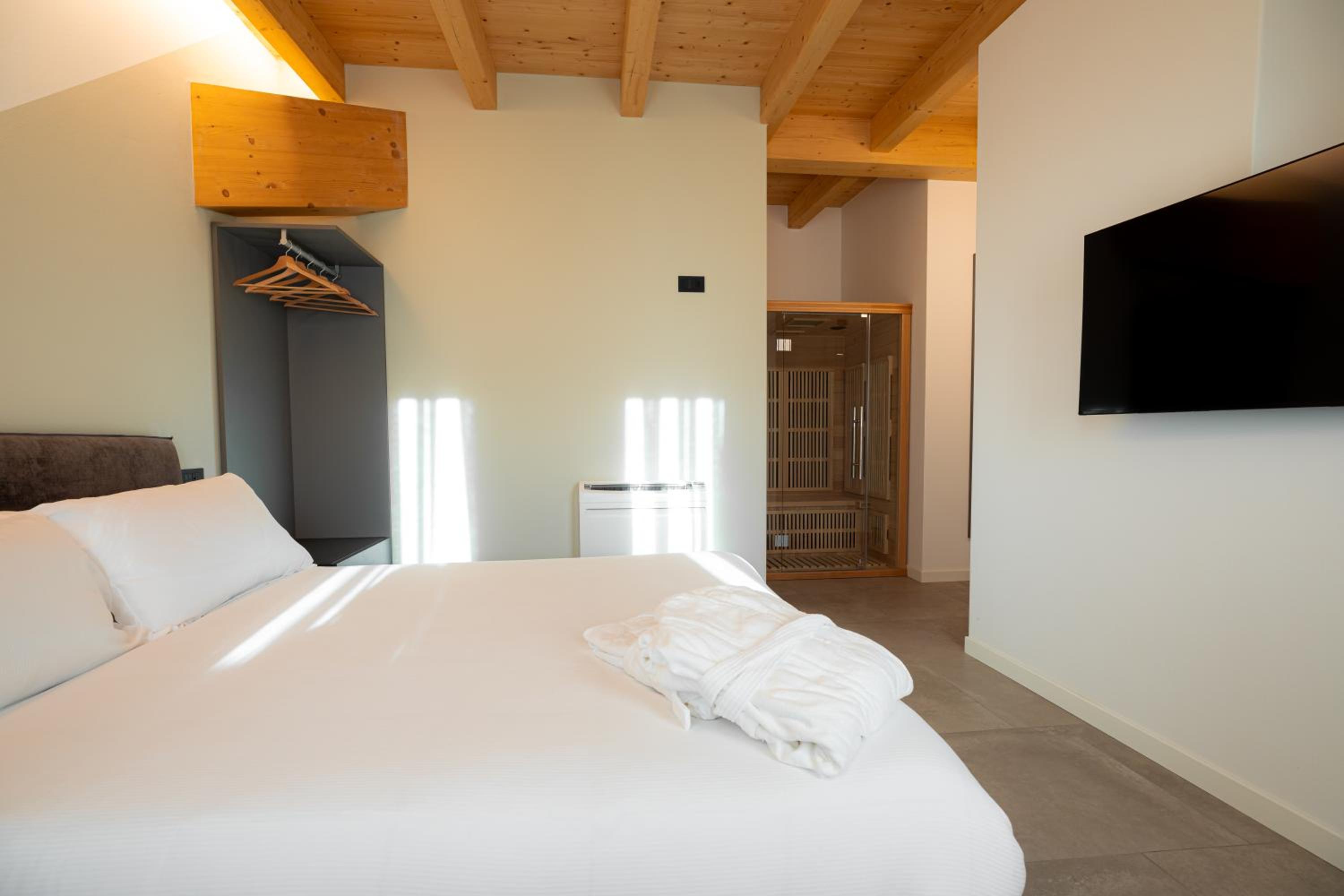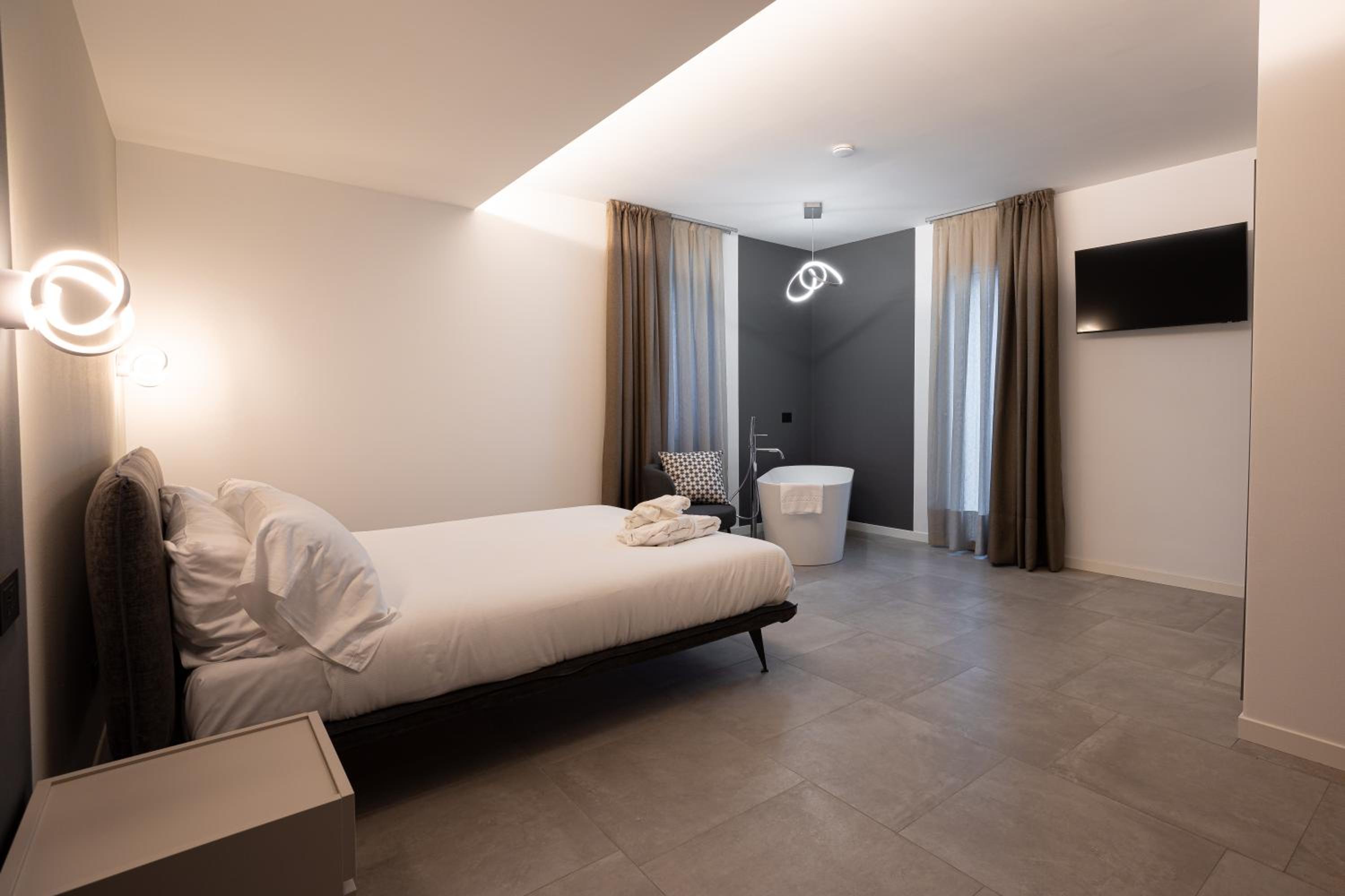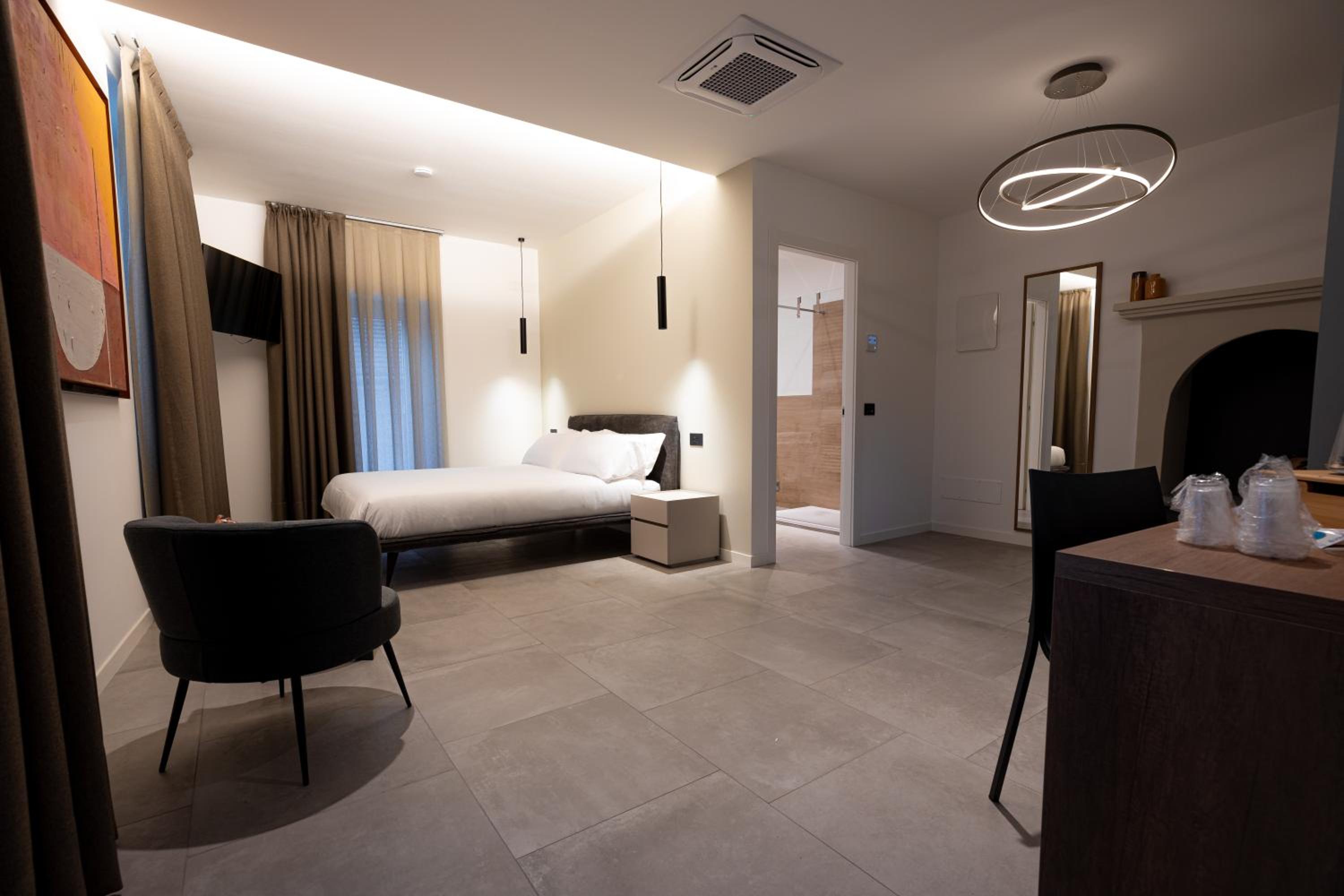 Camera molto ampia. Elegante. Molto curata. Funzionale. Attenta ai dettagli. Confortevole. Pulitissima. In una posizione suggestiva al centro del borgo.